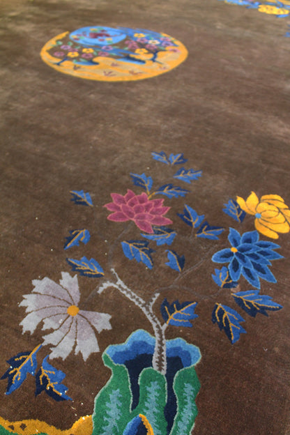 One of the fastest and easiest ways to breathe new life into your home’s décor is to add a stunning floor covering, like our Chinese Antique Art Deco Handwoven Traditional Rug (J61727). This traditional Chinese & East Asian piece is brown on chocolate with gold accents. This antique handwoven rug from around 1930 features a Art Deco design motif, crafted in durable wool pile on a cotton foundation. Plus, its size — 9' 0" X 11' 9" — will provide ample coverage. This means years of comfort, style, and enjoyment for you and your loved ones. Take the next step and get your Antique Art Deco Handwoven Traditional Rug right now.