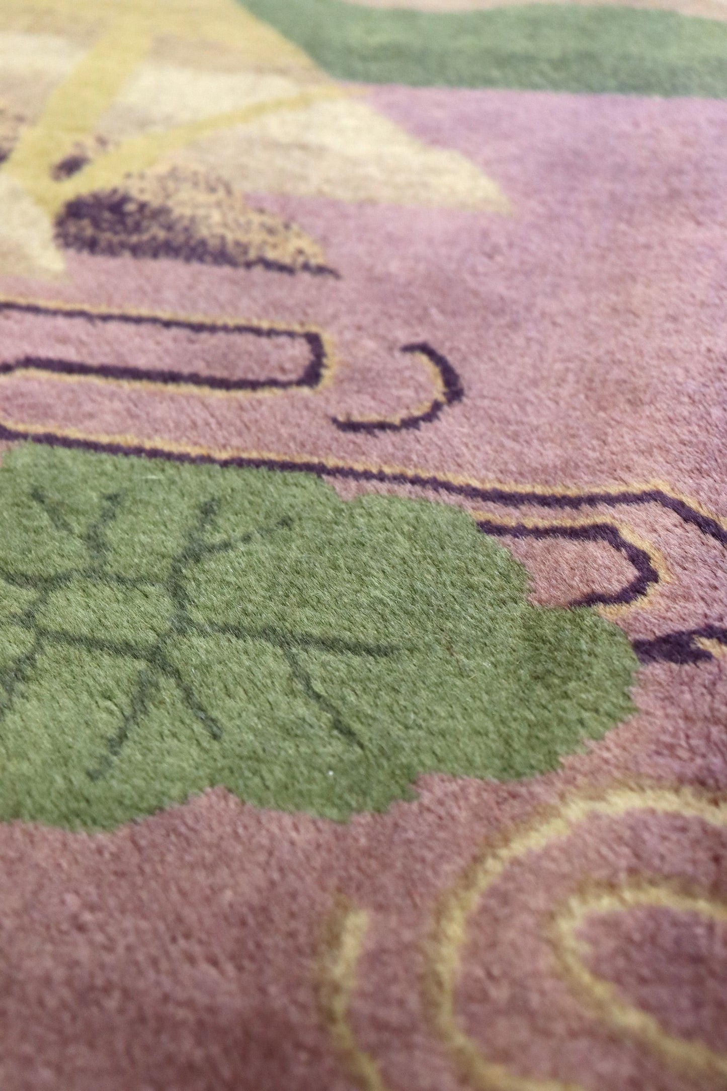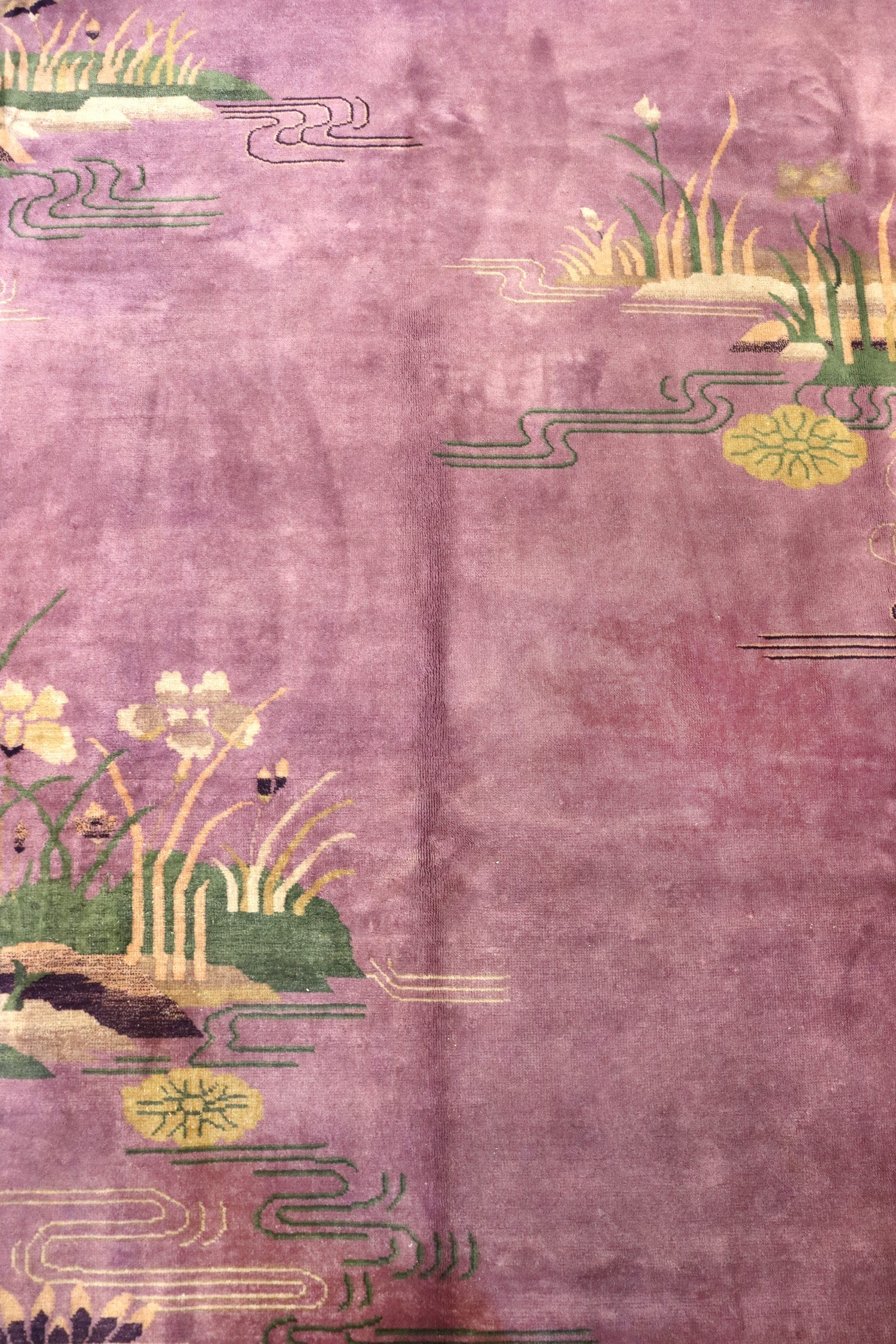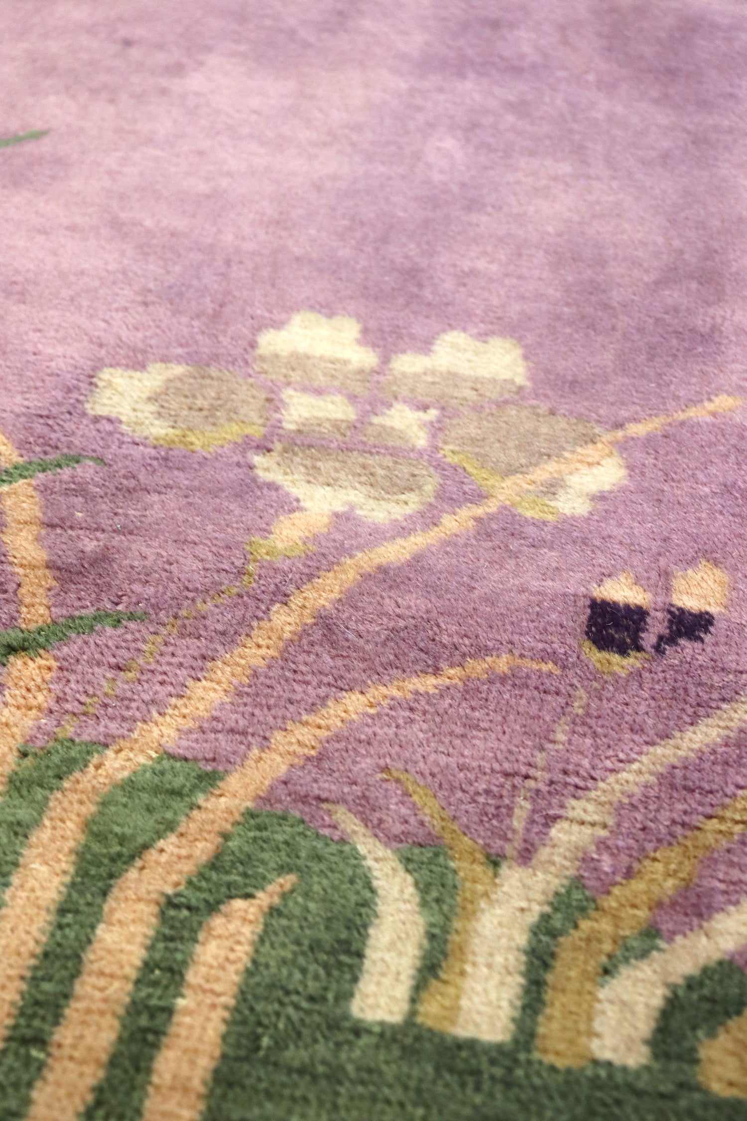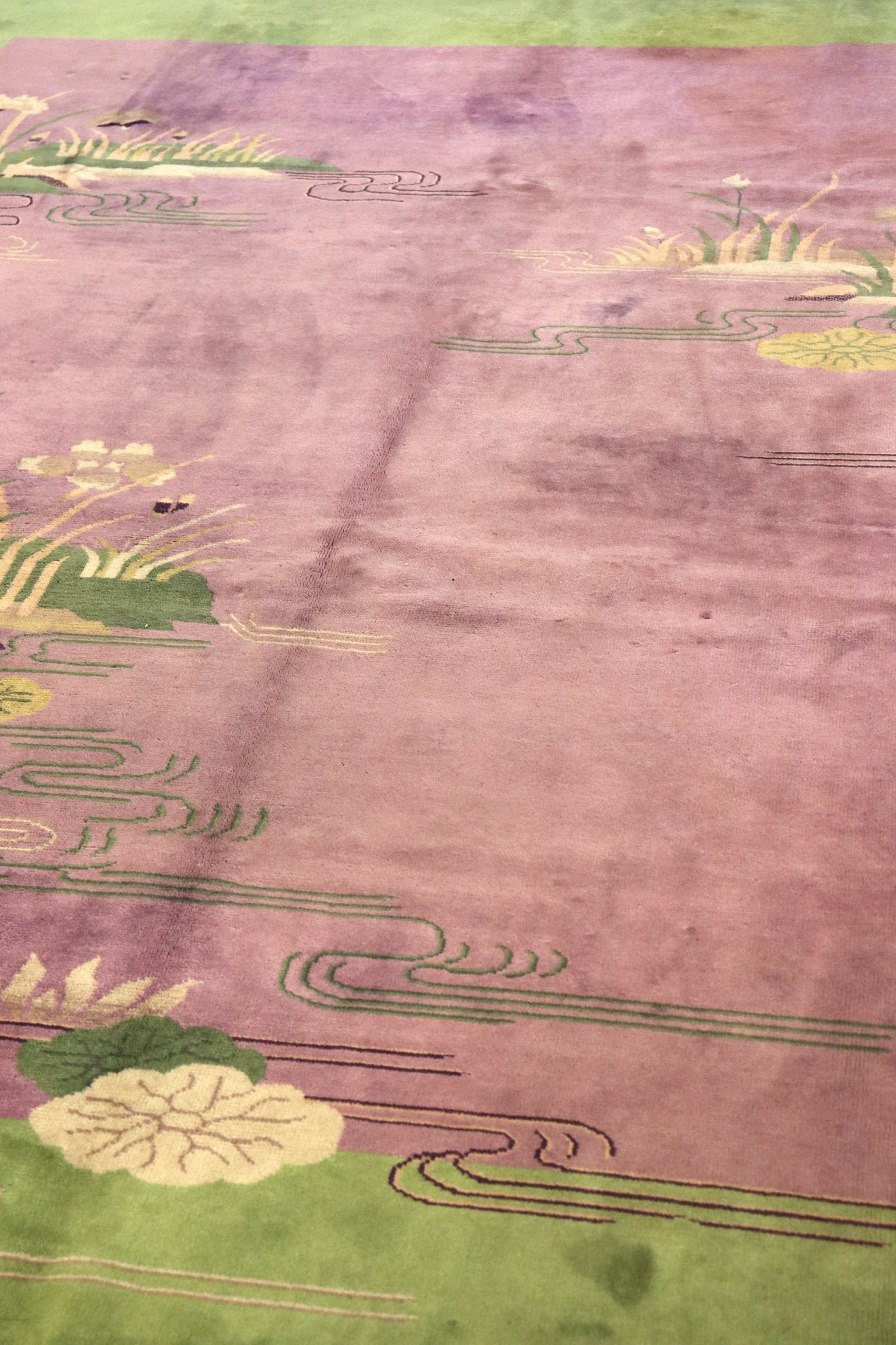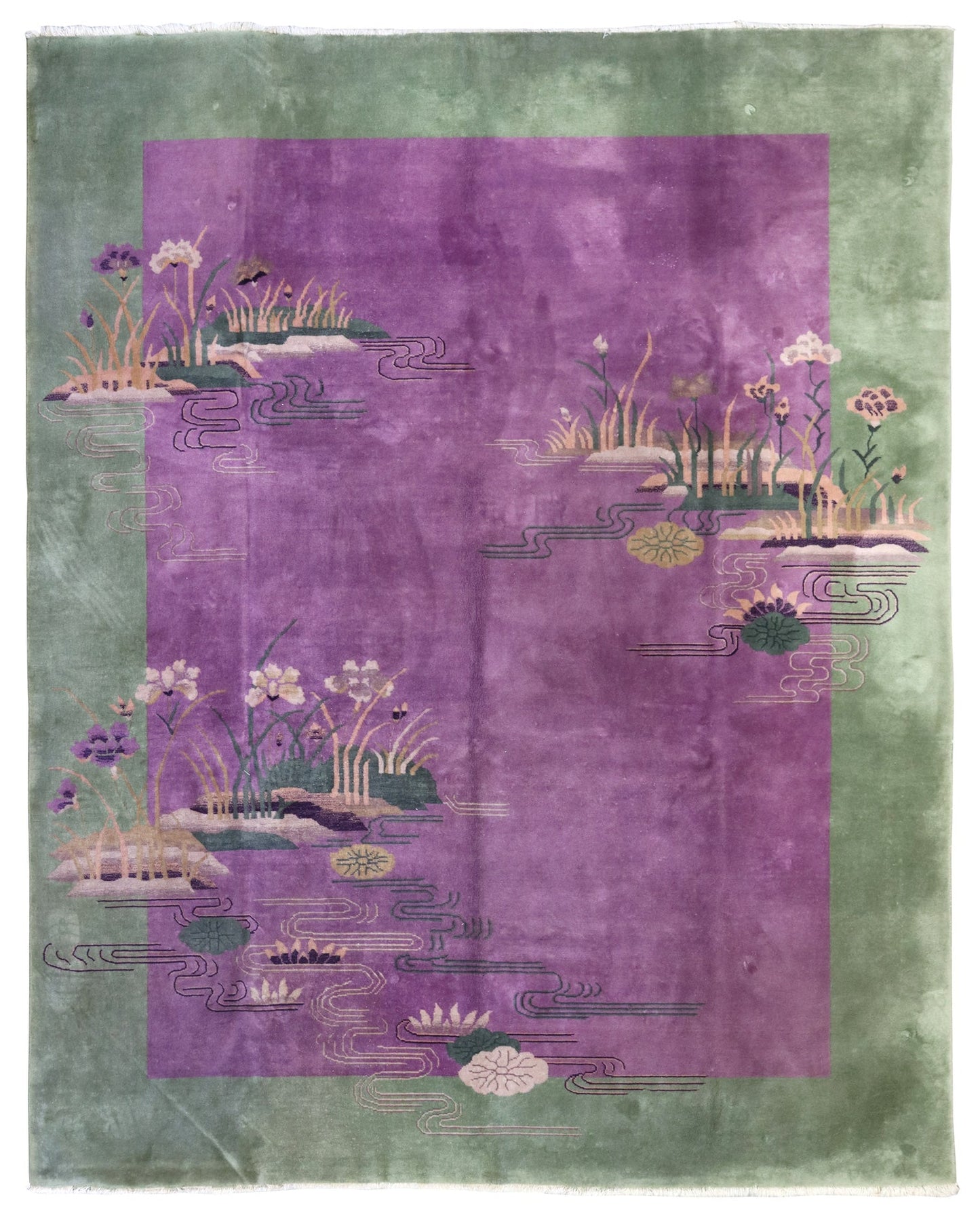 Show off your exquisite taste with our beautiful Antique Art Deco Handwoven Traditional Rug (J65218). It’s a prime example of a traditional Chinese & East Asian done right and will add a unique, polished look to your space. Crafted mainly in purple and complemented with lavender and celery, the Art Deco design really pops. The wool pile surface is resilient yet comfortable and the cotton foundation provides a sturdy base. This 8' 10" X 11' 2" handwoven rug is of antique construction (circa 1920) and Chinese origin. All in all, you’re going to love this piece and it’s going to be the perfect addition to your home. Make it happen today — with your own Antique Art Deco Handwoven Traditional Rug.