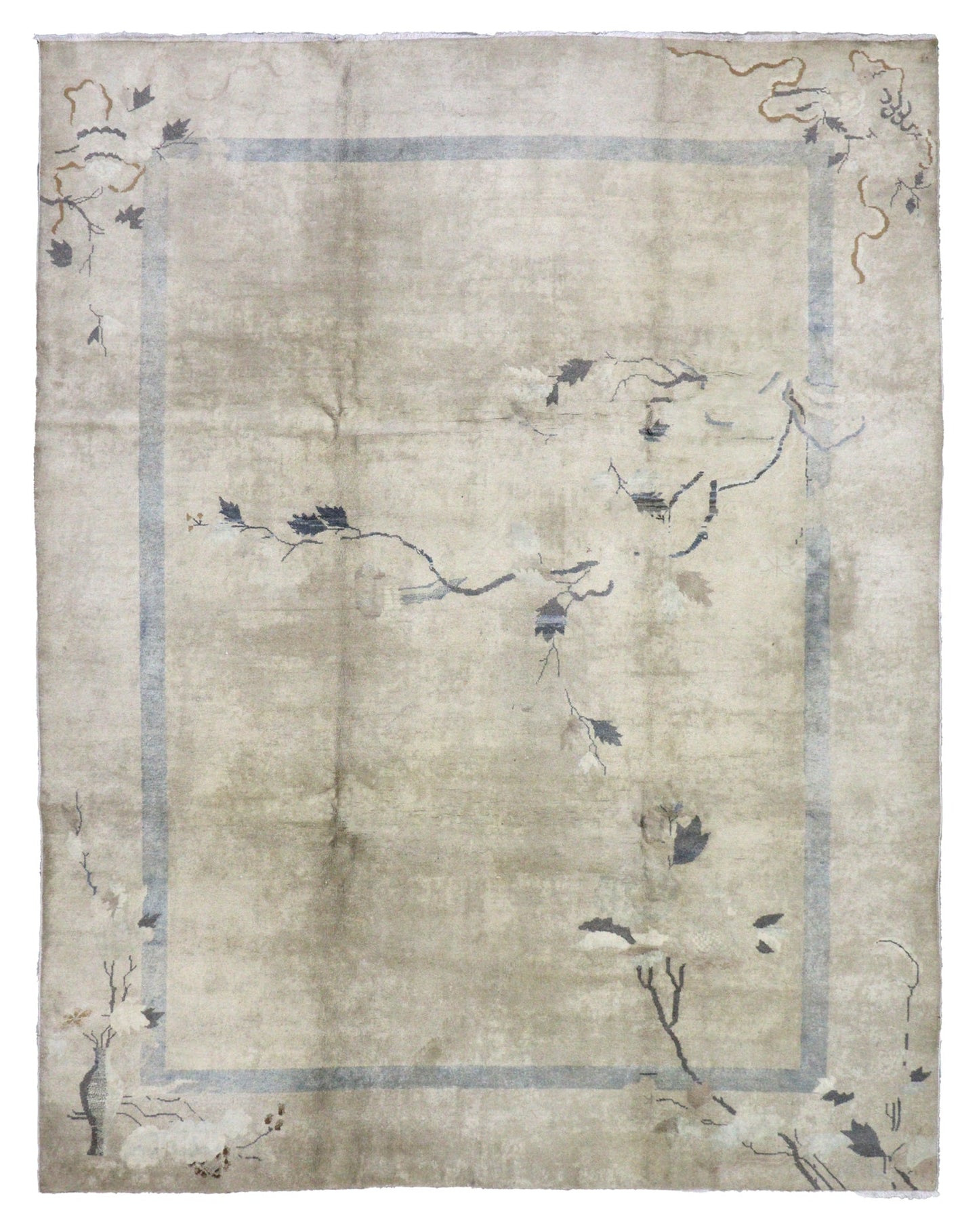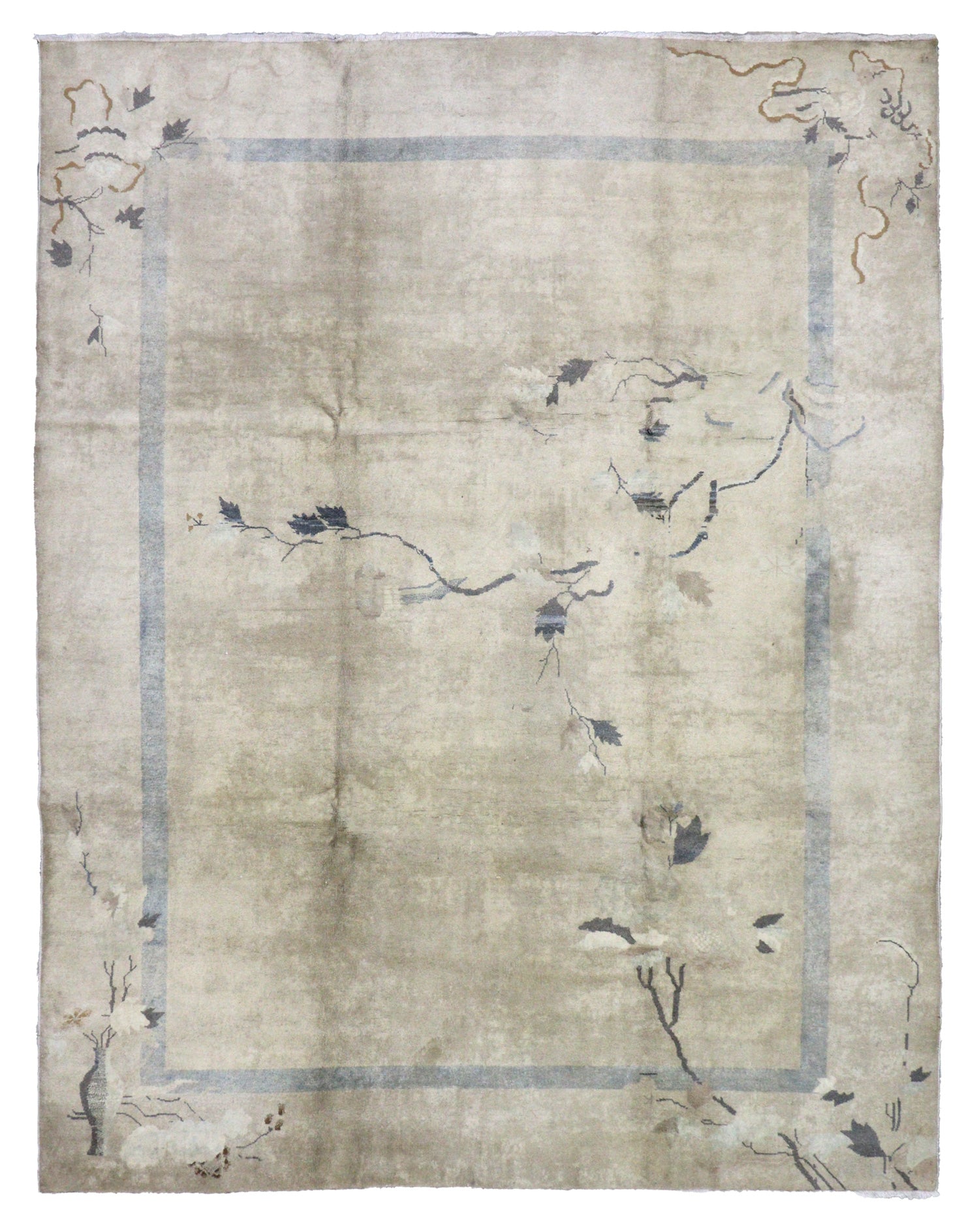 Make your house truly feel like home with our Vintage Art Deco Handwoven Traditional Rug (J68965). It's vintage (circa 1925) and traditional. It’s beige on taupe with bluestone accent colors. It’s a Chinese & East Asian style rug with a Art Deco motif. All things you gravitate towards when it comes to aesthetics and design in your space. Being a 9' 0" X 11' 5" rug of wool pile on a cotton foundation, you can rest assured that this piece will do more than just make the visual impact and create the vibe you want. It comes from the fine Chinese tradition of handwoven rugmaking, meaning this rug will serve you well and look terrific for years. Add that extra special personal touch today with your own Vintage Art Deco Handwoven Traditional Rug.