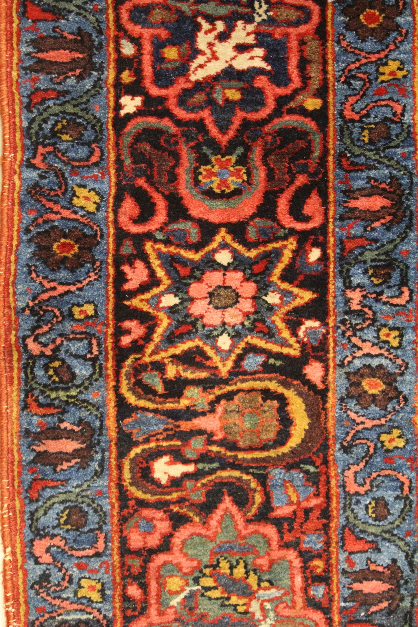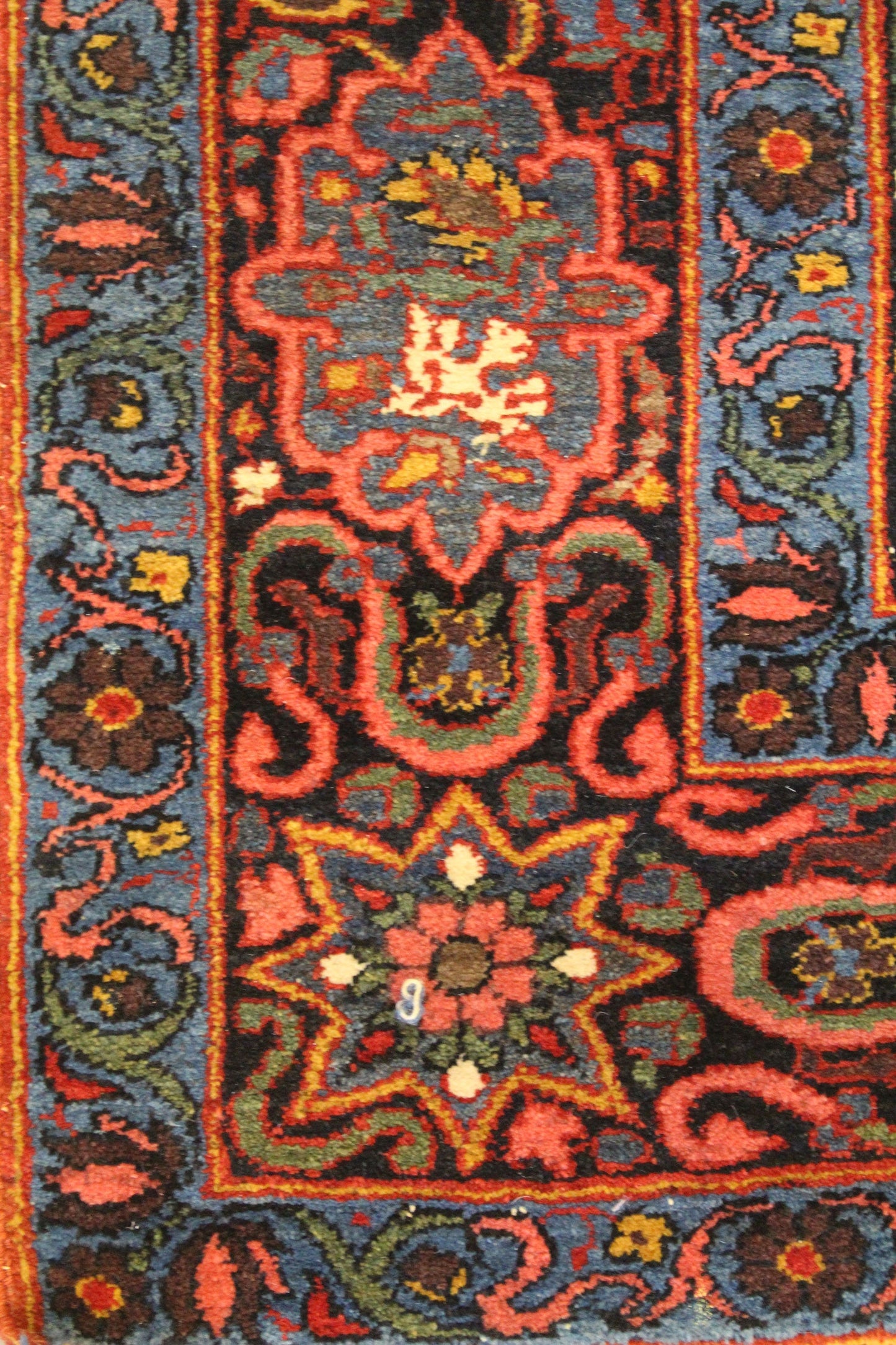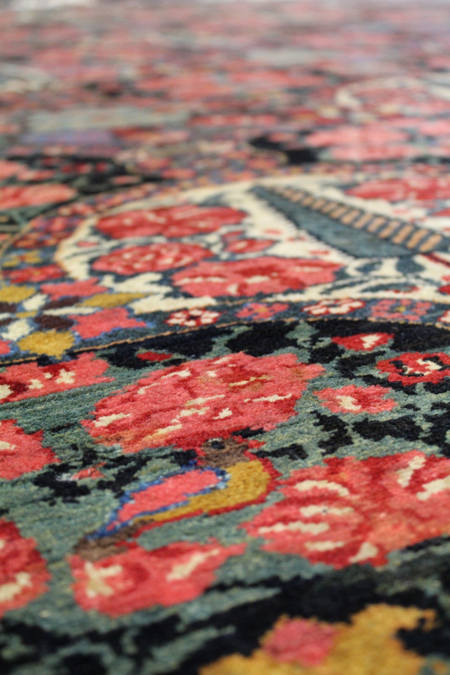 Originating from the Bakhtiari region in the Zagros Mountains of Iran, this traditional Persian rug is a notable example of early 20th-century craftsmanship, dating circa 1920. The rug is crafted from wool on a cotton foundation and offers a striking display of design and color.