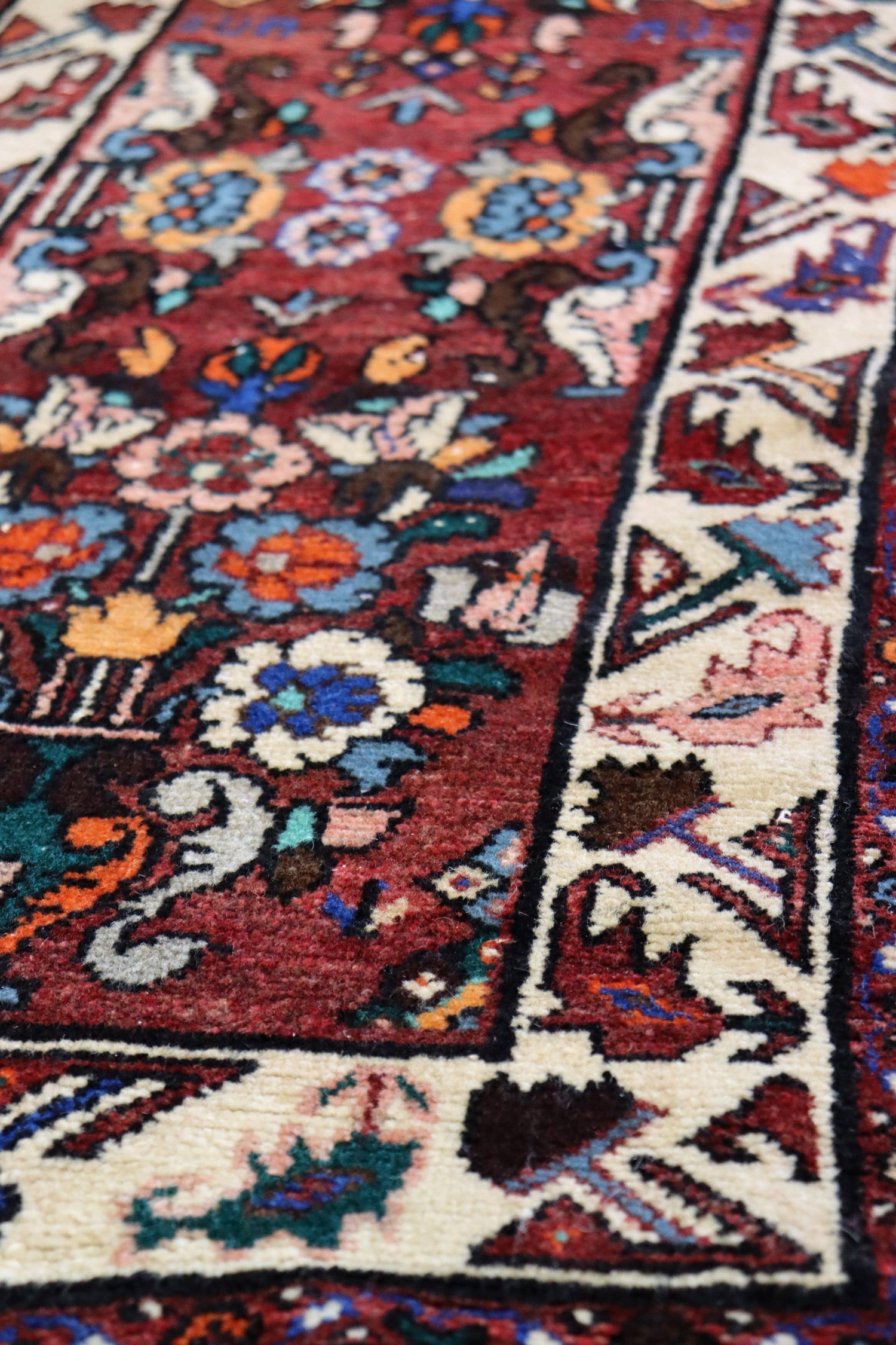 Show off your exquisite taste with our beautiful Vintage Bakhtiari Handwoven Tribal Rug (J65263). It’s a prime example of a tribal Nomadic Persian & Turkish done right and will add a unique, polished look to your space. Crafted mainly in red and complemented with brick and beige, the Bakhtiari design really pops. The wool pile surface is resilient yet comfortable and the cotton foundation provides a sturdy base. This 2' 1" X 5' 2" handwoven rug is of vintage construction (circa 1960) and Persian origin. All in all, you’re going to love this piece and it’s going to be the perfect addition to your home. Make it happen today — with your own Vintage Bakhtiari Handwoven Tribal Rug.