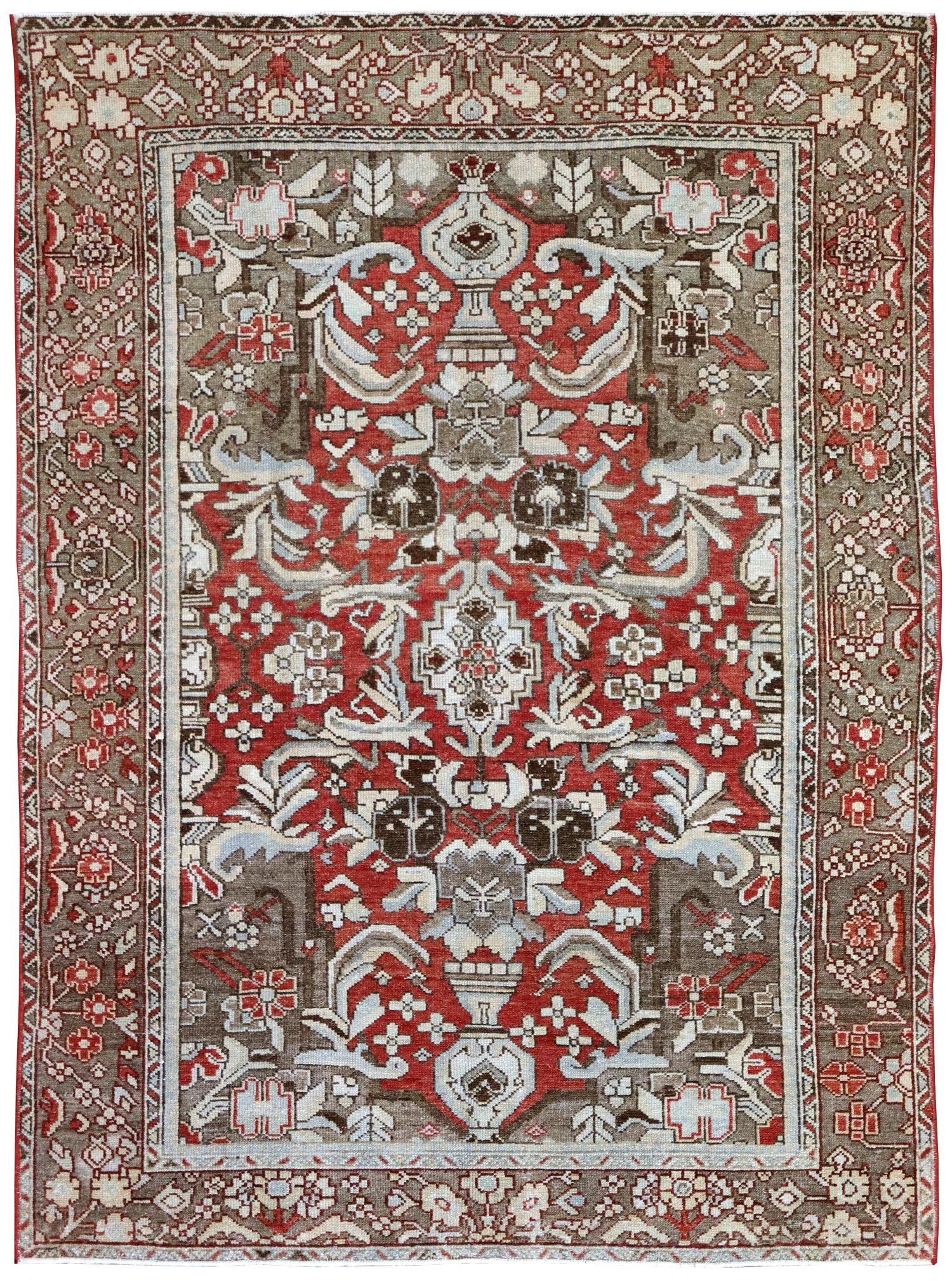 Show off your exquisite taste with our beautiful Vintage Bakhtiari Handwoven Tribal Rug (J65294). It’s a prime example of a tribal Nomadic Persian & Turkish done right and will add a unique, polished look to your space. Crafted mainly in red and complemented with tomato and taupe, the Bakhtiari design really pops. The wool pile surface is resilient yet comfortable and the cotton foundation provides a sturdy base. This 4' 7" X 6' 3" handwoven rug is of vintage construction (circa 1925) and Persian origin. All in all, you’re going to love this piece and it’s going to be the perfect addition to your home. Make it happen today — with your own Vintage Bakhtiari Handwoven Tribal Rug.