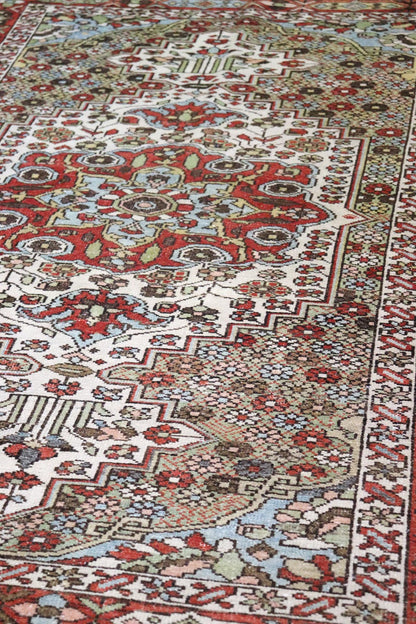 Make your house truly feel like home with our Vintage Bakhtiari Handwoven Tribal Rug (J67962). It's vintage (circa 1930) and tribal. It’s green with red accent colors. It’s a Nomadic Persian & Turkish style rug with a Bakhtiari motif. All things you gravitate towards when it comes to aesthetics and design in your space. Being a 4' 2" X 6' 5" rug of wool rug on a cotton foundation, you can rest assured that this piece will do more than just make the visual impact and create the vibe you want. It comes from the fine Persian tradition of handwoven rugmaking, meaning this rug will serve you well and look terrific for years. Add that extra special personal touch today with your own Vintage Bakhtiari Handwoven Tribal Rug.