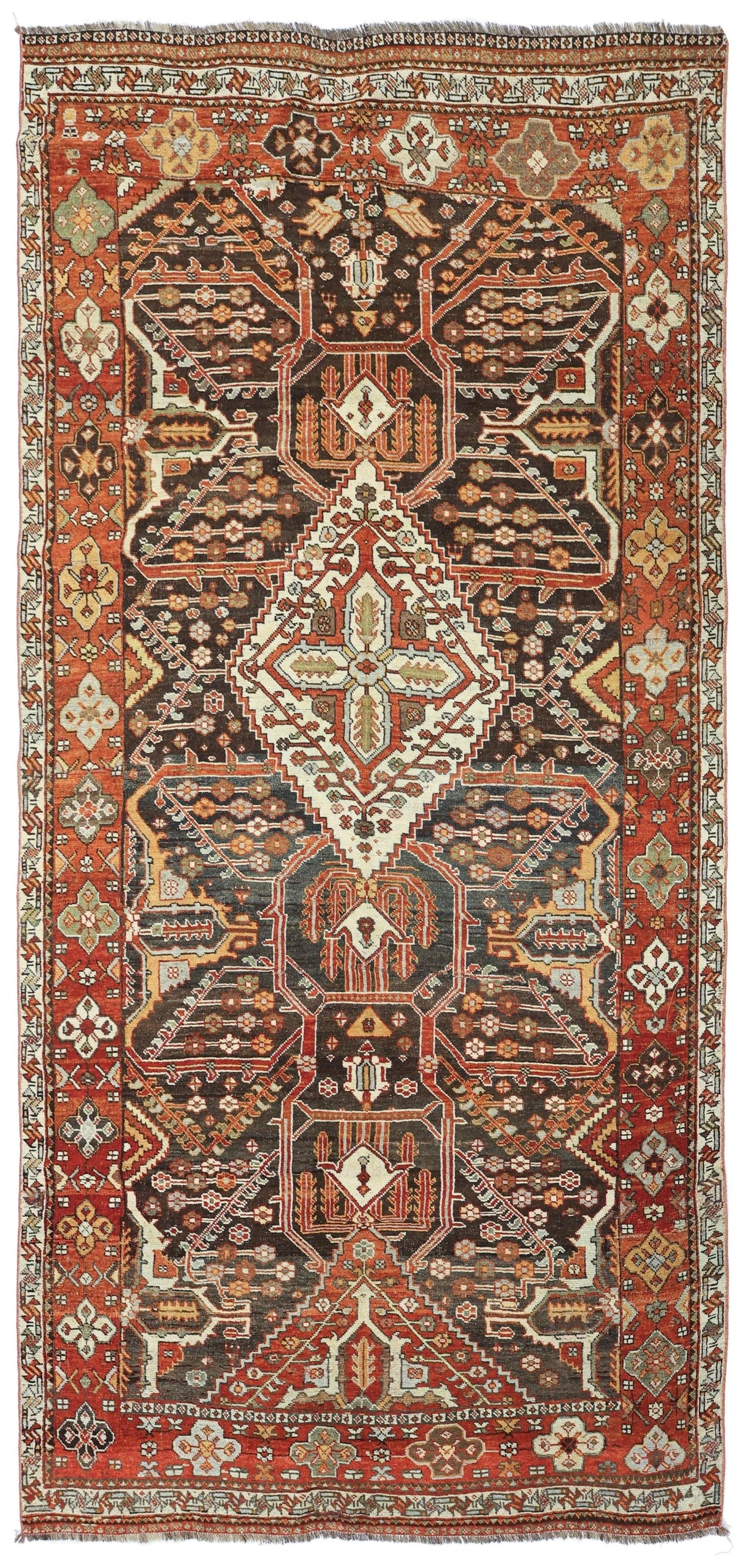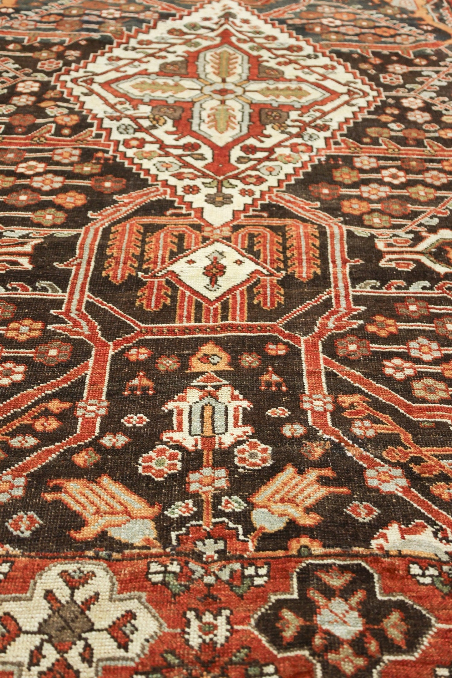 Antique 1910 Nomadic Persian & Turkish Tribal Persian Bakhtiari 4' 11" X 10' 2" Brown Rug