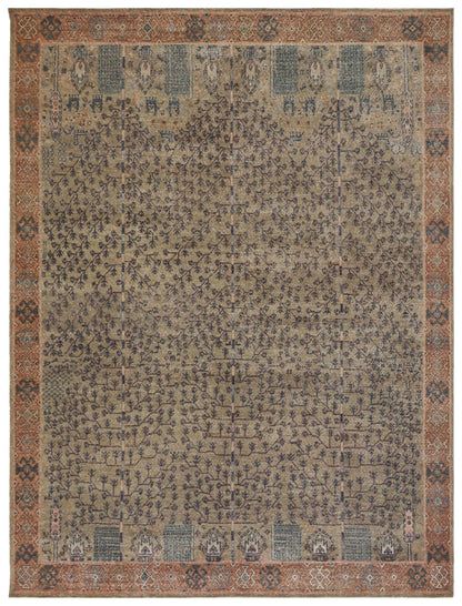 New Overdyed & Distressed Transitional Indian Bakshaish 9' 3" X 12' 2" Brown Rug