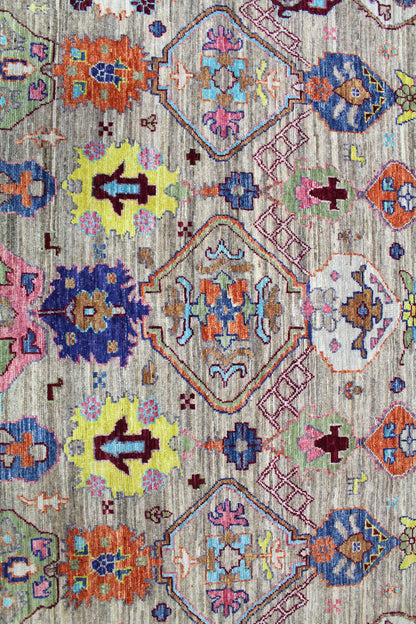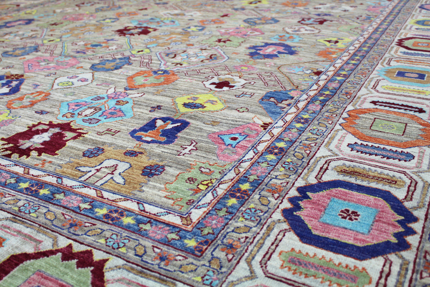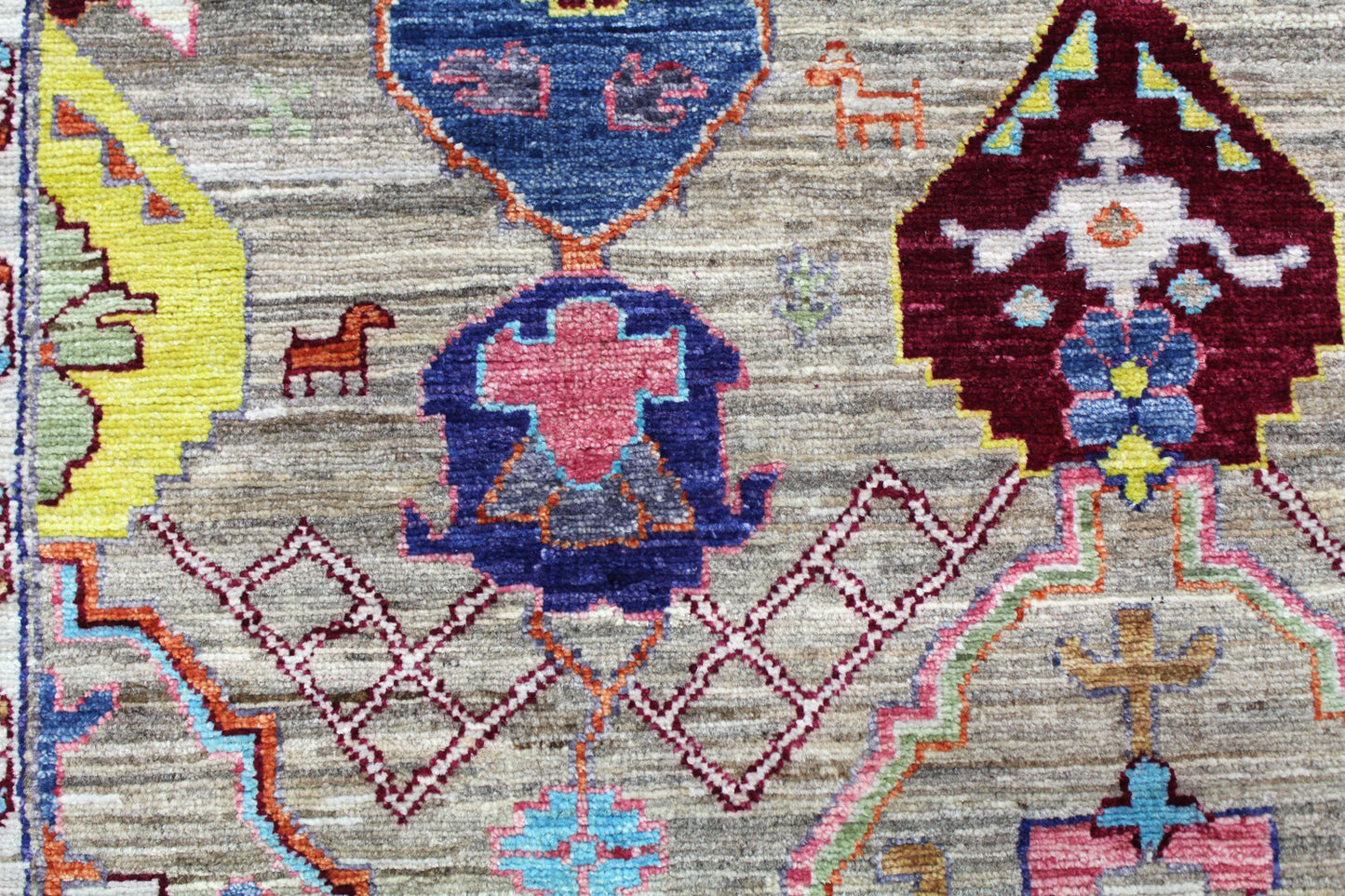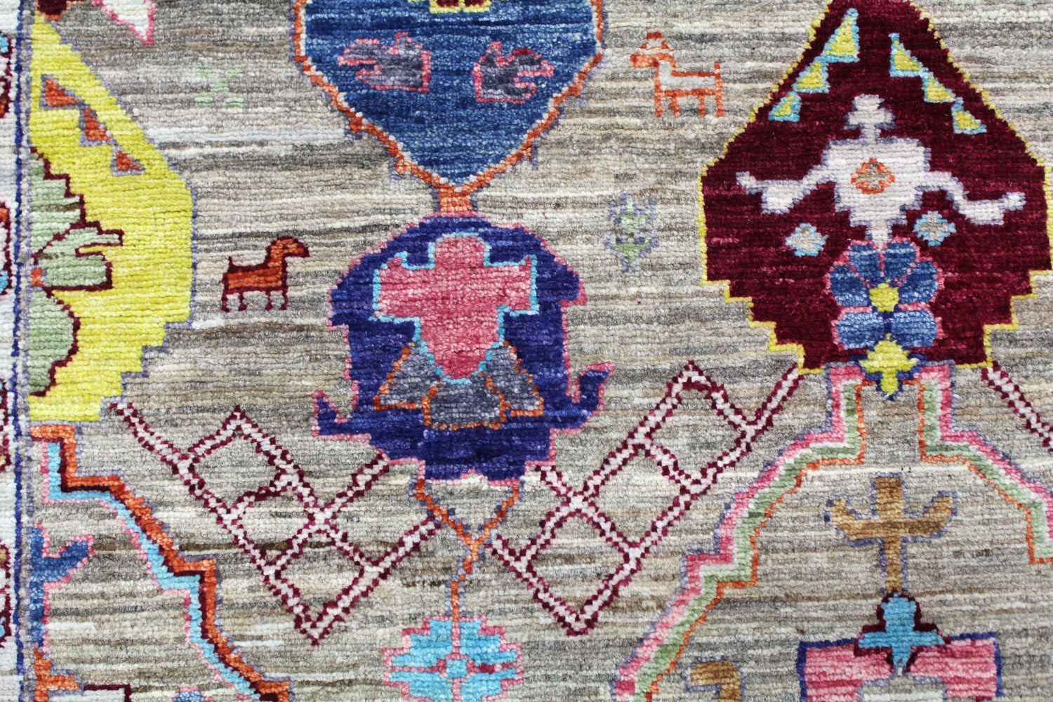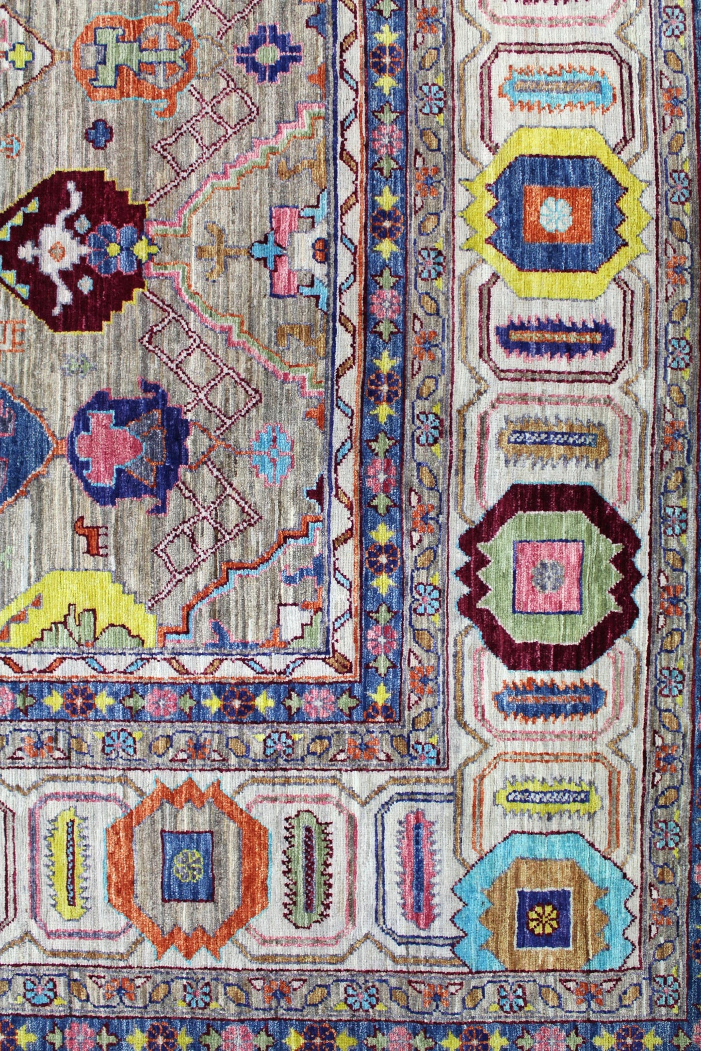Authenticity and longevity are hallmarks of this rug, as it boasts of centuries-old natural dye stuffs. The vibrant and earthy colors that adorn the design are derived from all-natural dye sources, further accentuating the rug's cultural heritage and timeless appeal.