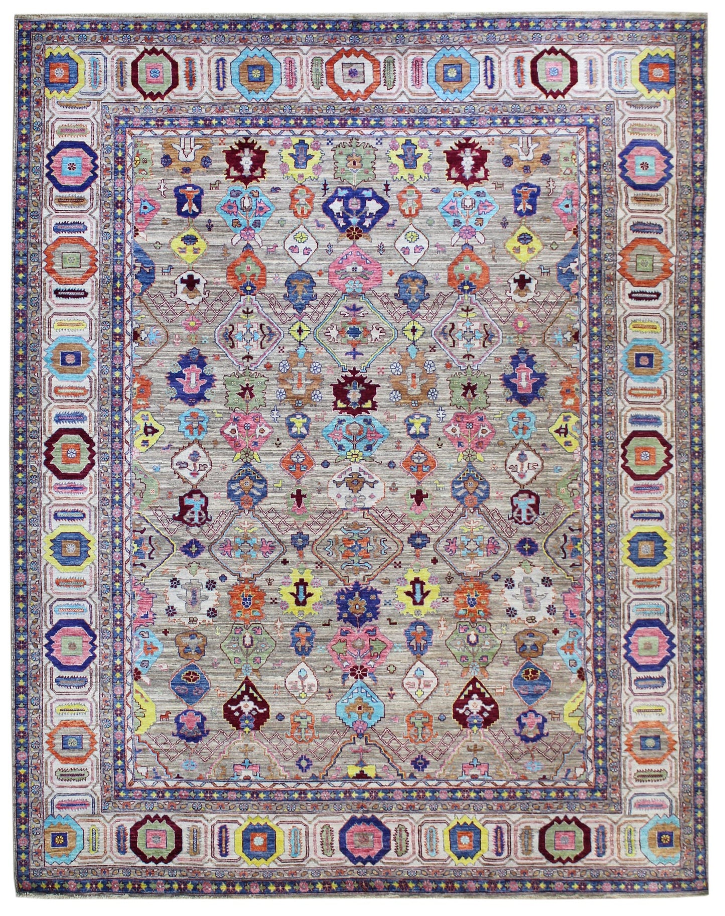 Measuring at a generous size of 8'11" x 11'8", this rug is a true statement piece that will effortlessly transform any space. The dense knot count of 80 knots per square inch is a testament to the meticulous craftsmanship and intricate detailing. In fact, our calculations indicate that this rug is comprised of 1,183,913 individually hand-tied knots in total, further exemplifying the dedication and artistry invested in its creation.