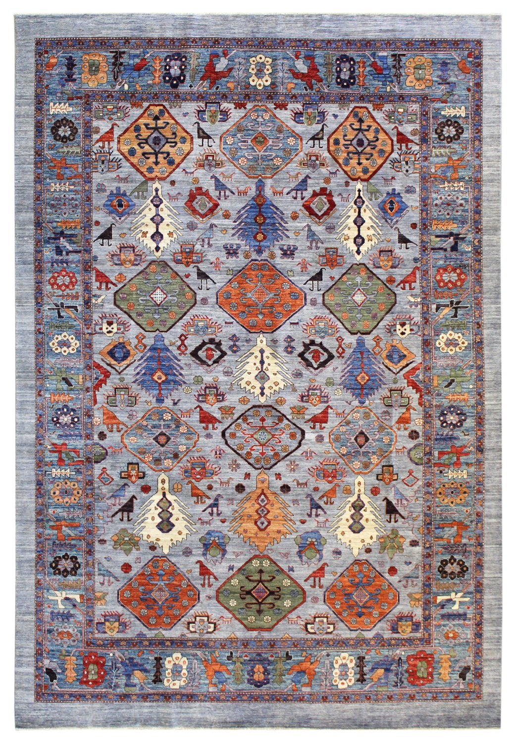 Introducing our exquisite rug, sourced from Afghanistan, known for its rich heritage in carpet weaving. This particular rug showcases the traditional design of Bakshaish, adding a tribal touch to its elegance. The background is a captivating shade of grey, beautifully complemented by a stunning blue border.
