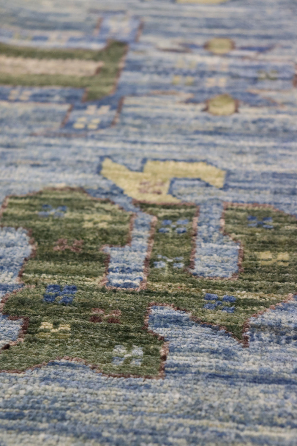 Employing an asymmetrical "Persian" knot technique, this rug features a cotton warp and weft with a lustrous wool pile. Its double wefted construction and heavily packed depressed warp weaving ensure exceptional durability, making it a lasting investment in both style and substance.
