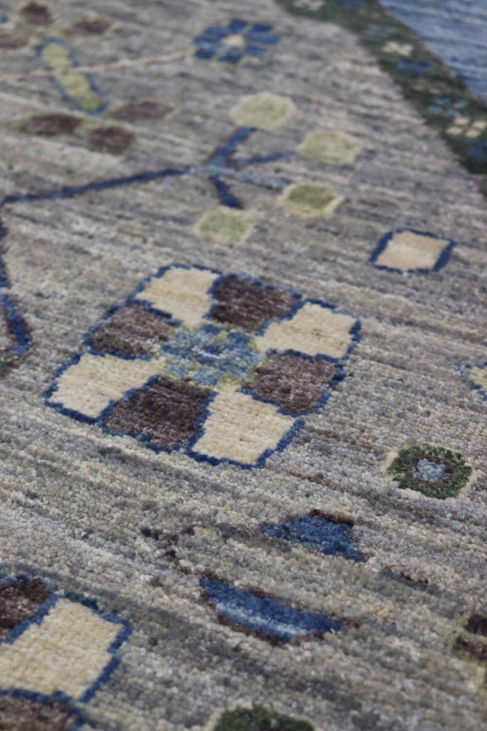 The process begins with raw Ghazni wool, which is carefully transported to the western side of Afghanistan, near Herat. Here, the wool is meticulously hand carted and spun into carpet yarn ready for frying. Woven on traditional floor looms in the weavers' own homes, this rug is a testament to the cottage industry type production prevalent in this region.