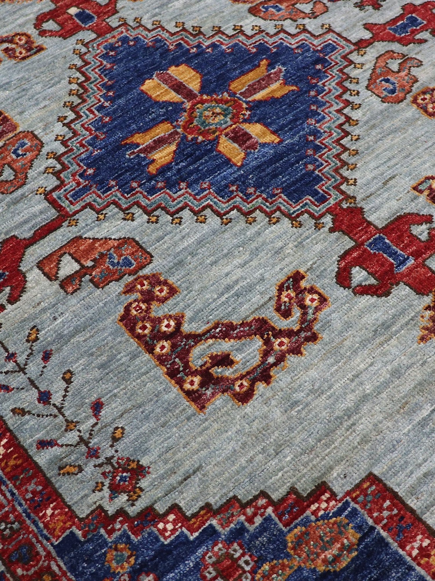 With an impressive knots per square inch (KPSI) count of 80, our meticulous calculation reveals that this rug boasts a staggering total of 280,568 individually hand-tied knots. This attention to detail, combined with the craftsmanship of Afghan Turkmen weavers, ensures the highest quality and authenticity.