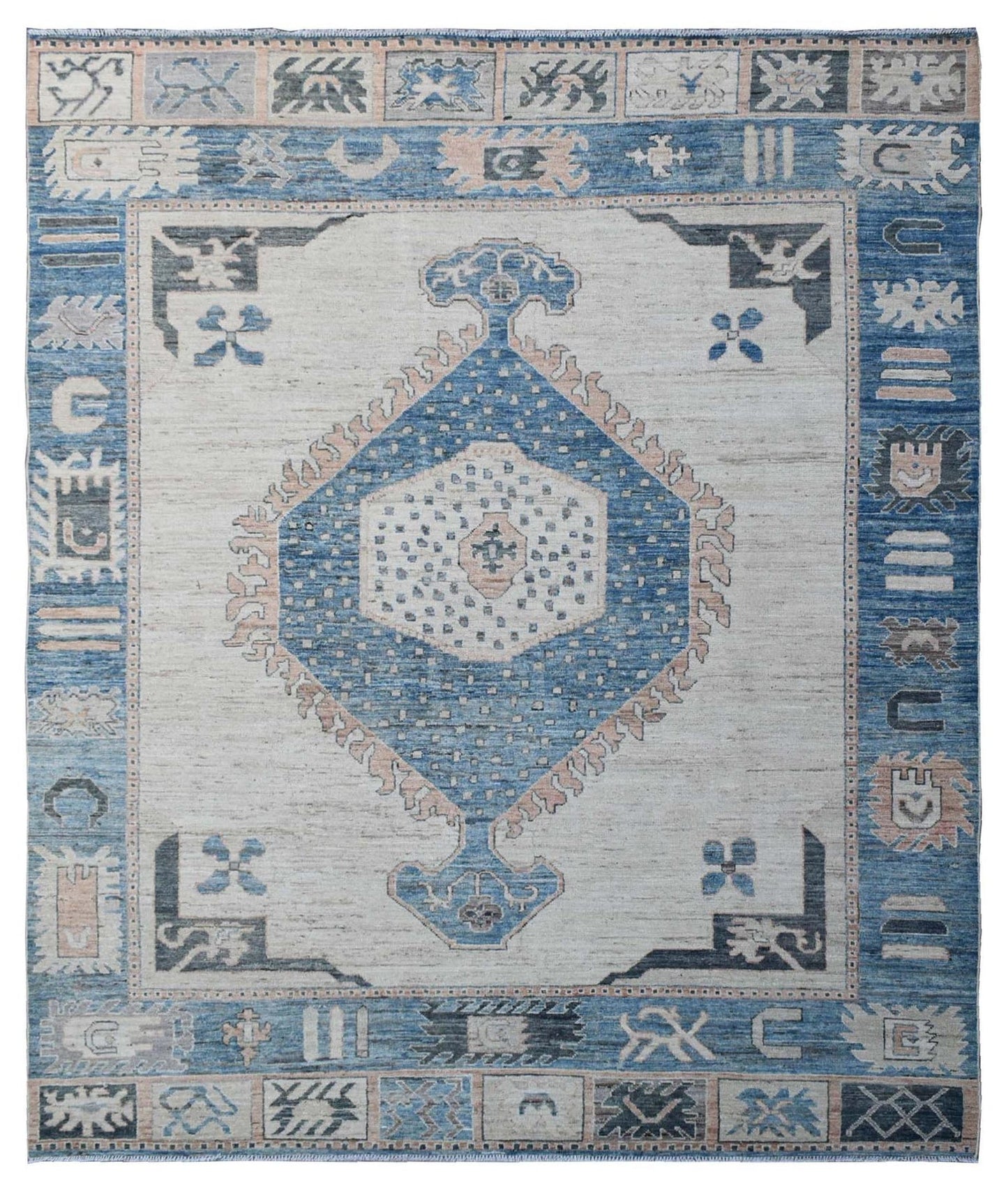 New Nomadic Persian & Turkish Tribal Afghani Bakshaish 9' 6" X 11' 9" Blue Rug