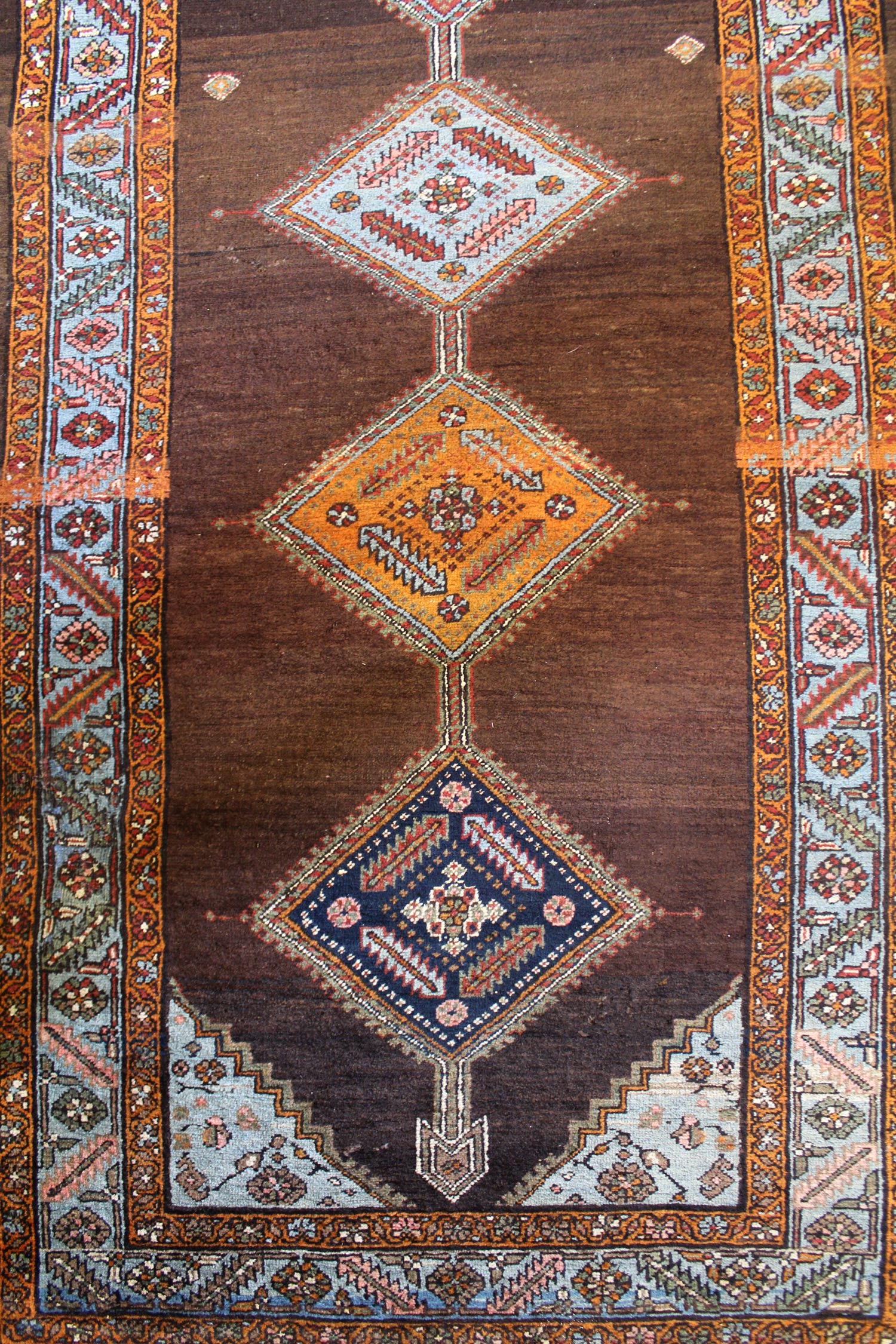 This antique rug originates from the northwestern Iranian town of Bakshaish and is an exemplar of the traditional tribal design characteristic of that region. The Bakshaish design is well-known for its harmonious blend of geometric and floral elements, often reflective of local artistry and cultural exchanges.