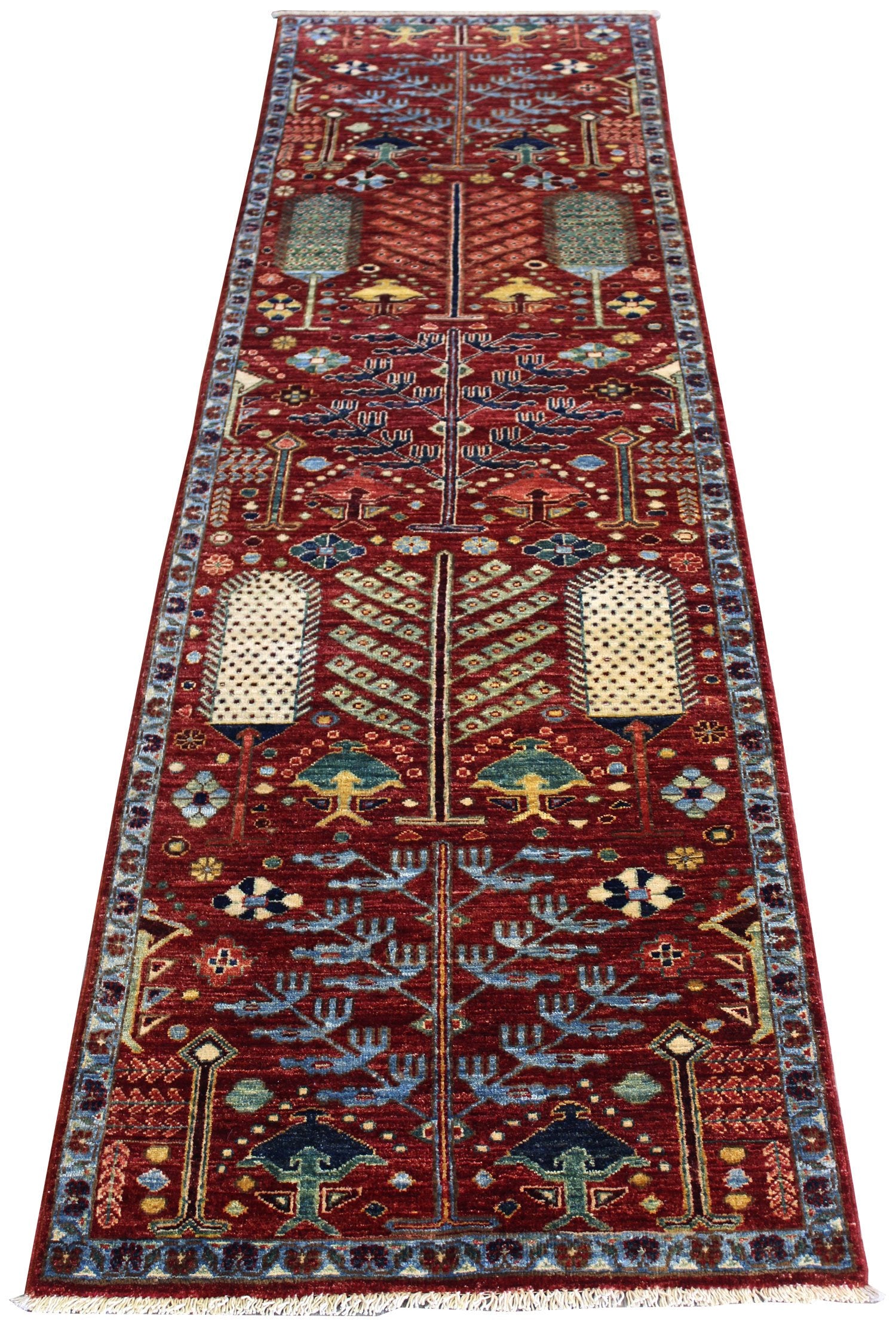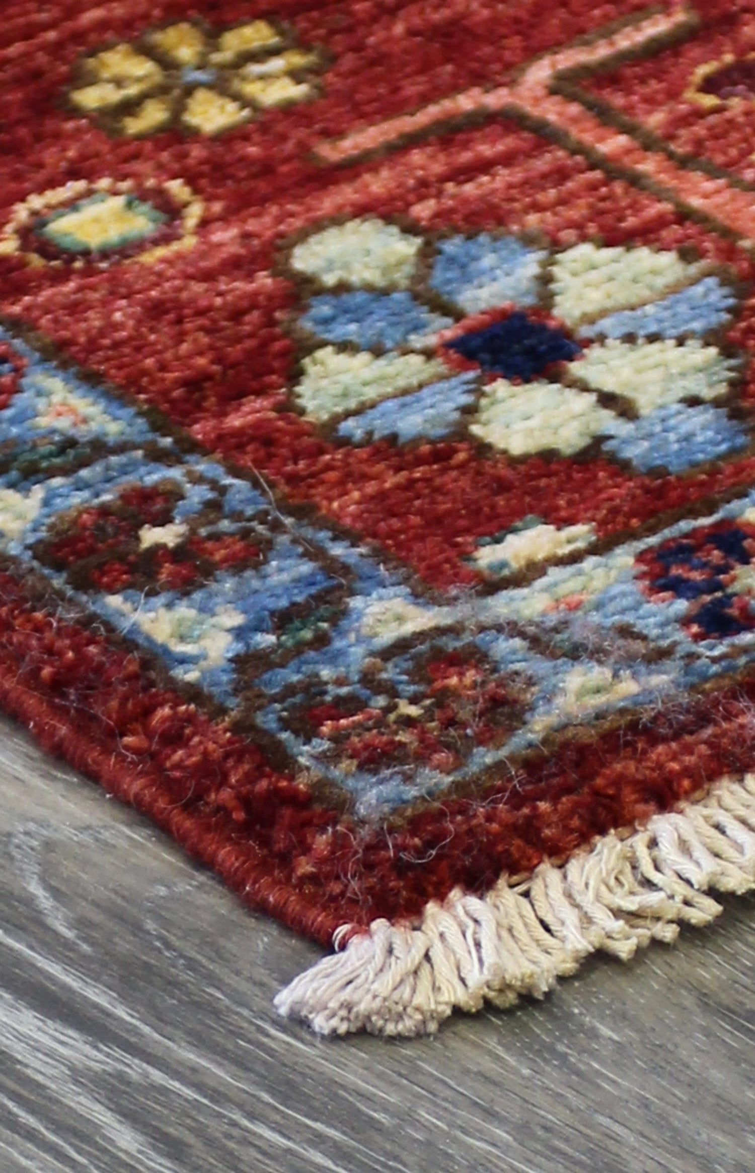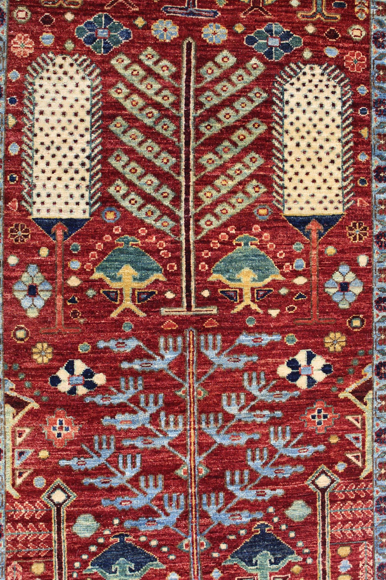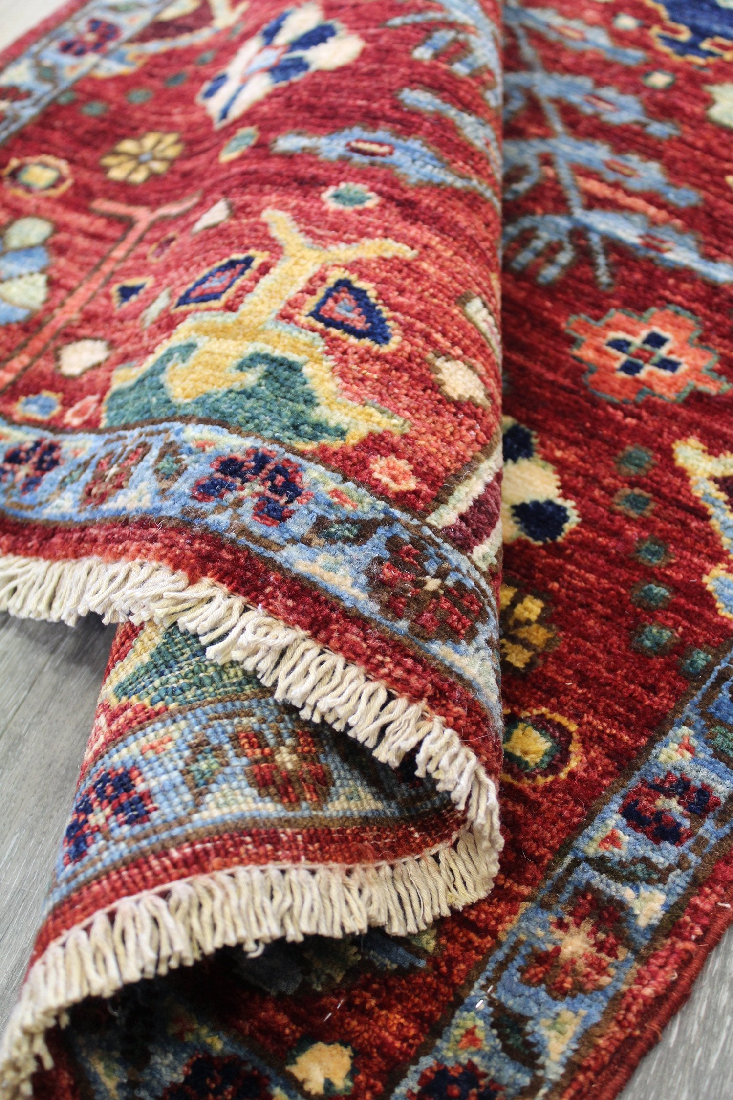 Introducing our exquisite Afghani rug featuring the beautiful Bakshaish Willow design, a true testament to tribal artistry. With a rustic background and a captivating blue border, this rug showcases the rich red main color, creating an eye-catching centerpiece for any space.