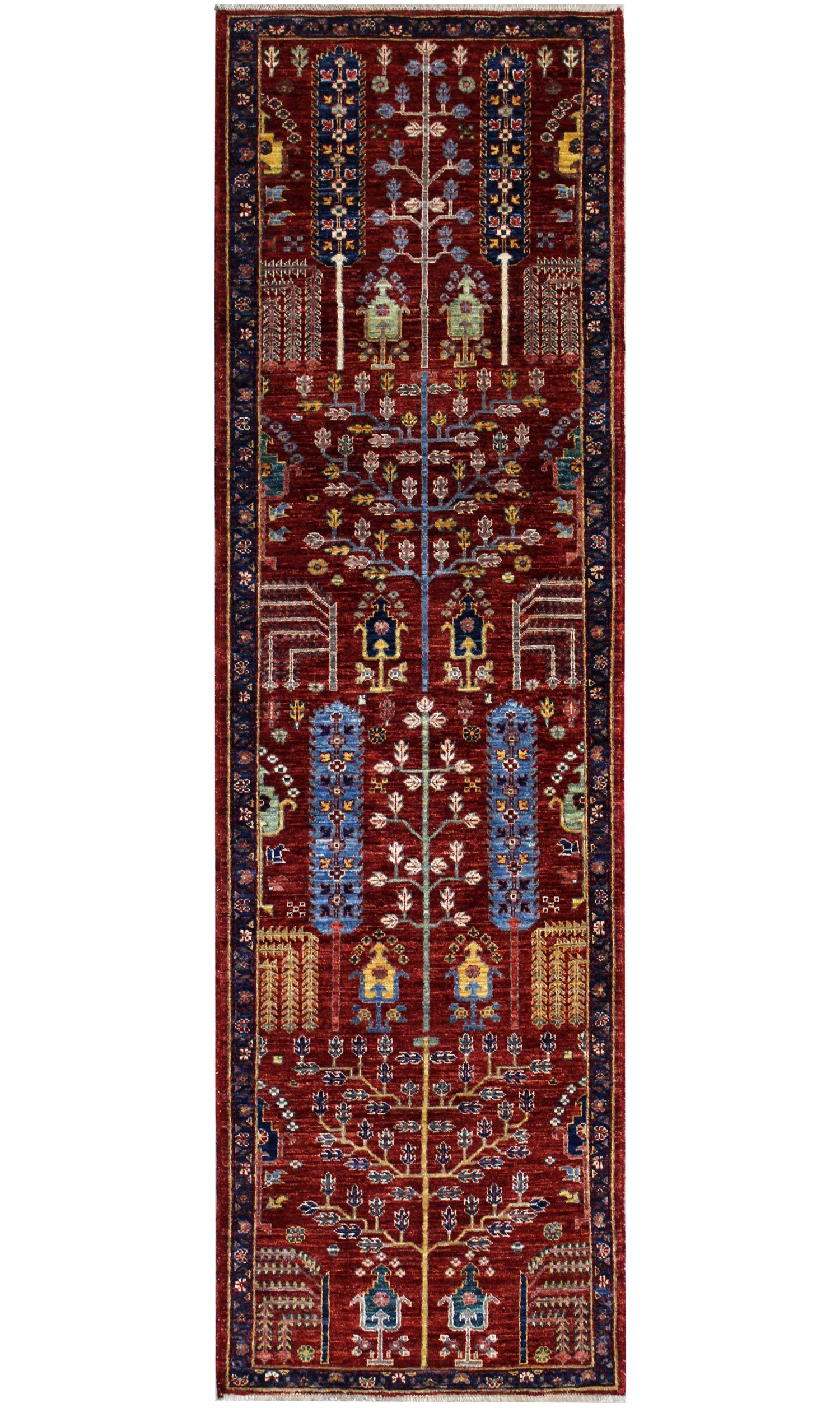 Using traditional floor looms within their own homes, the weavers create this magnificent rug in the timeless tribal style. Employing an asymmetrical "Persian" knot type, the rug features a cotton warp and weft, with a woolen pile. The double wefted and heavily packed depressed warp weaving technique ensures the utmost durability, ensuring this rug will withstand the test of time.