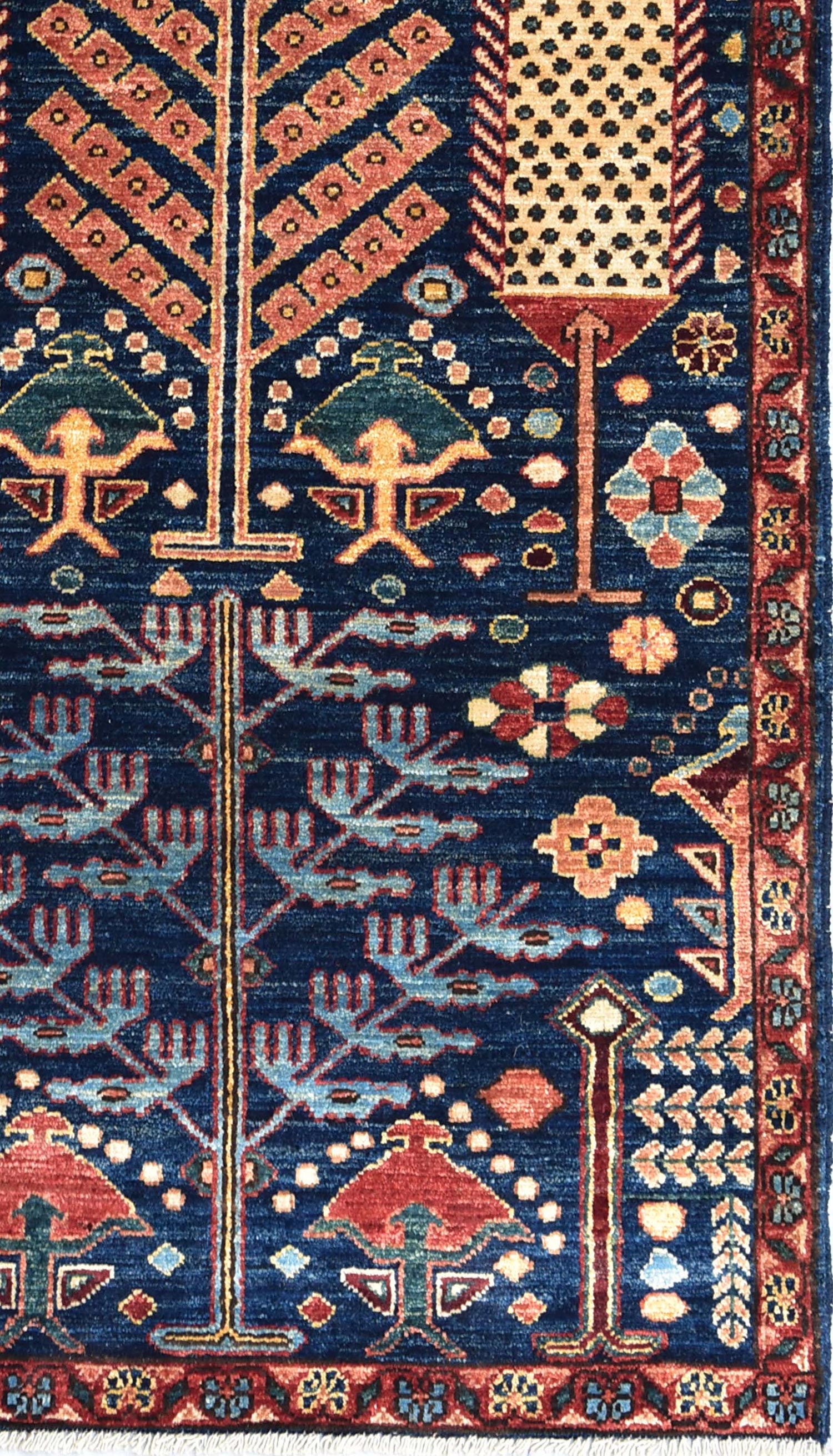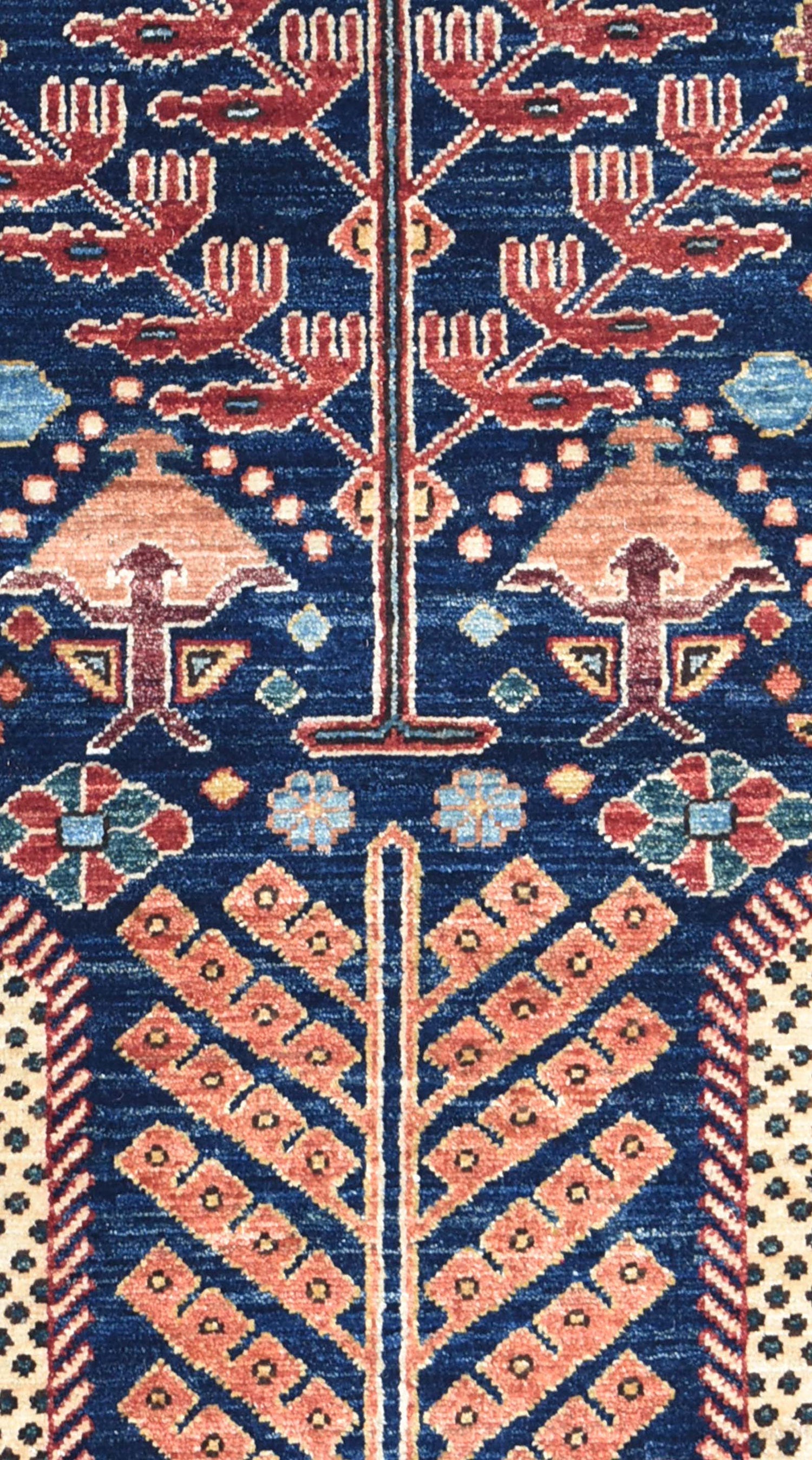 Introducing our exquisite Afghan rug, featuring a Bakshaish Willow design in a tribal style. This rug originates from Afghanistan, specifically the Ghazni Province in the southeast, known for its mountainous terrain and the production of high-quality wool. The wool used in this rug comes from sheep in the region, ensuring a longer staple and a superior texture for carpet weaving.