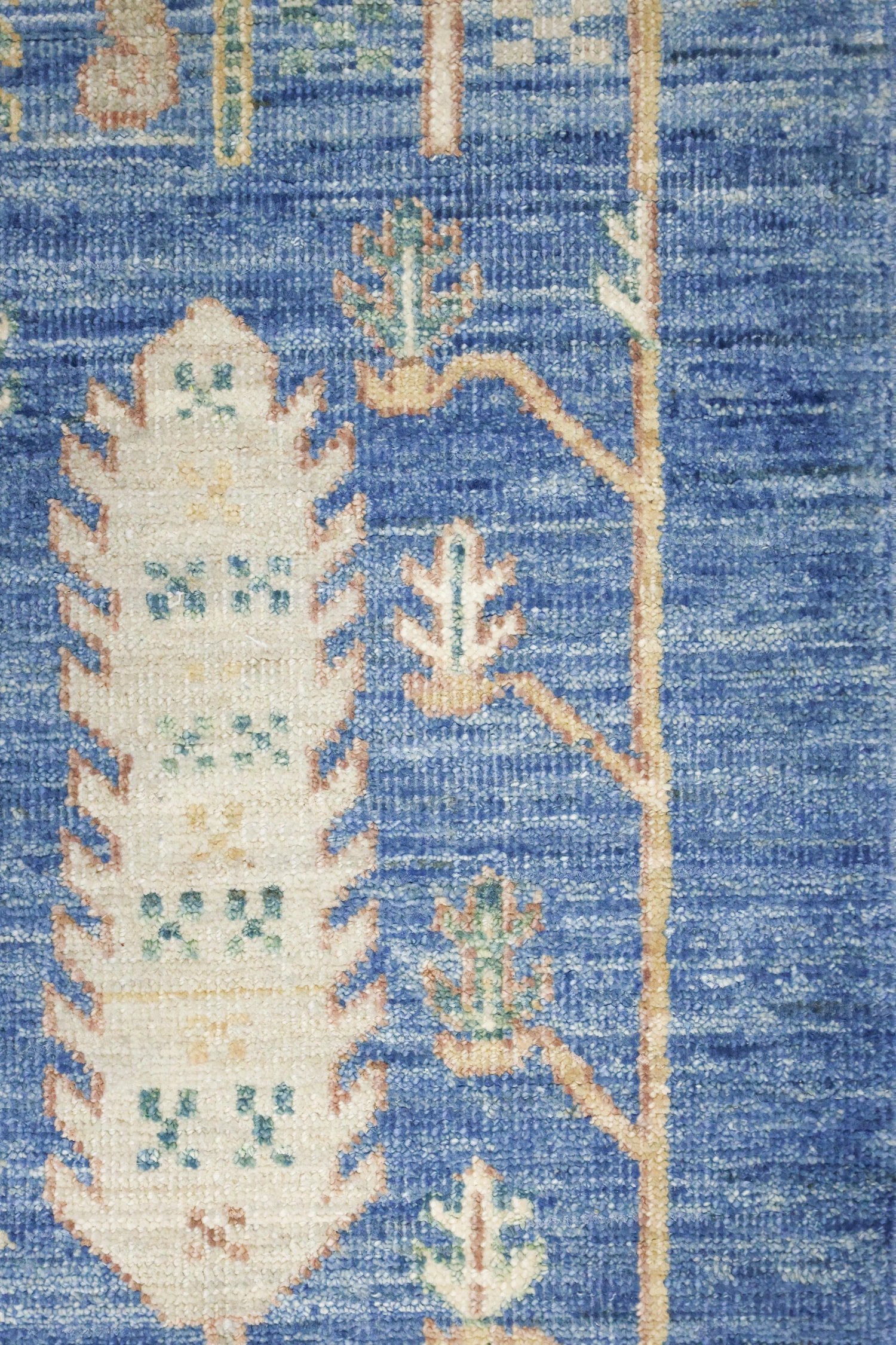 The rich blue color of this rug is achieved through all-natural dye stuffs, specifically natural indigo. Derived from the leaves of the indigo plant (indigofera tinctoria), this dye has been used for thousands of years across different cultures worldwide to create vibrant blue hues.