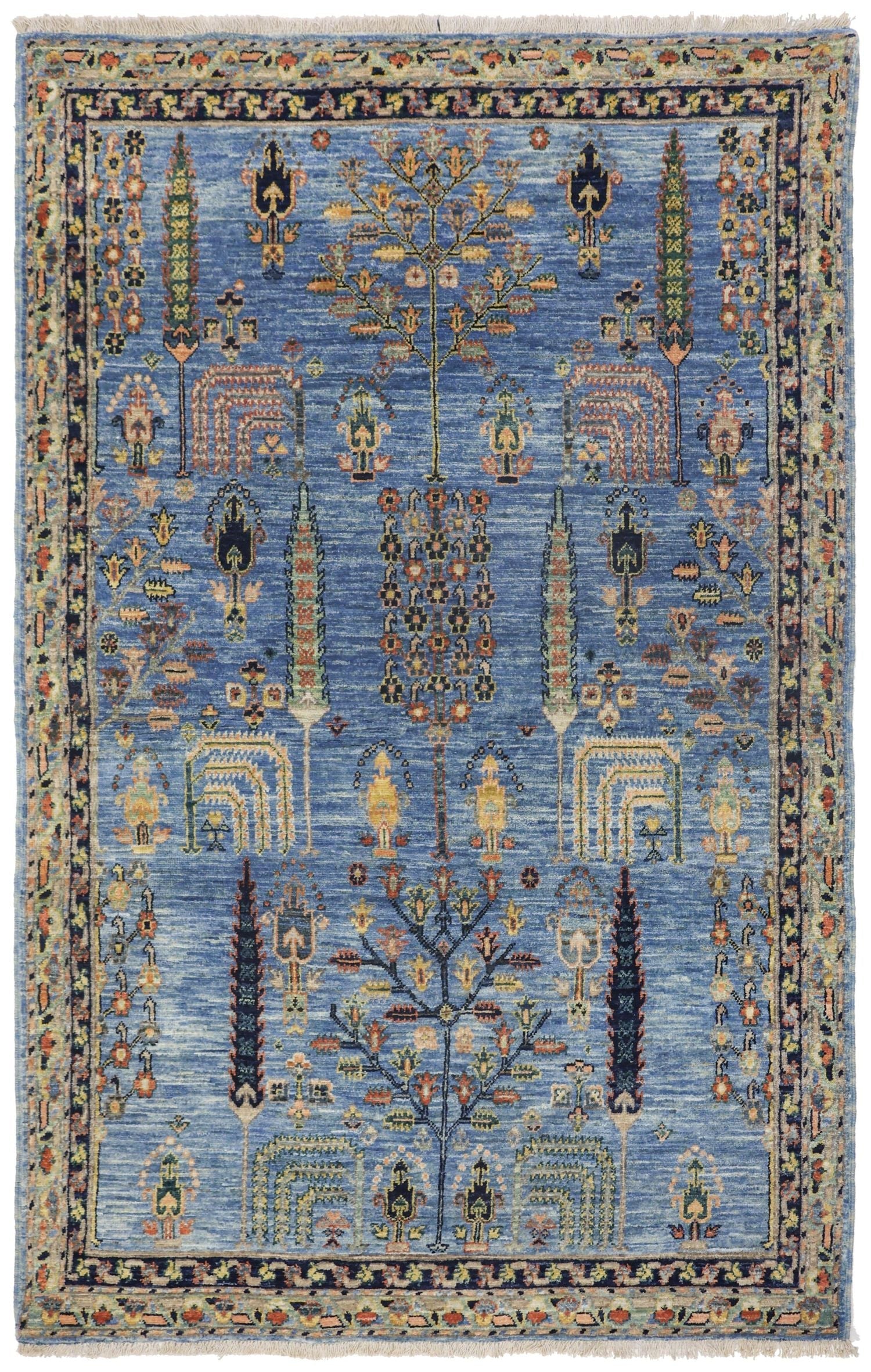 New Nomadic Persian & Turkish Tribal Afghani Bakshaish Willow 3' 2" X 4' 10" Blue Rug