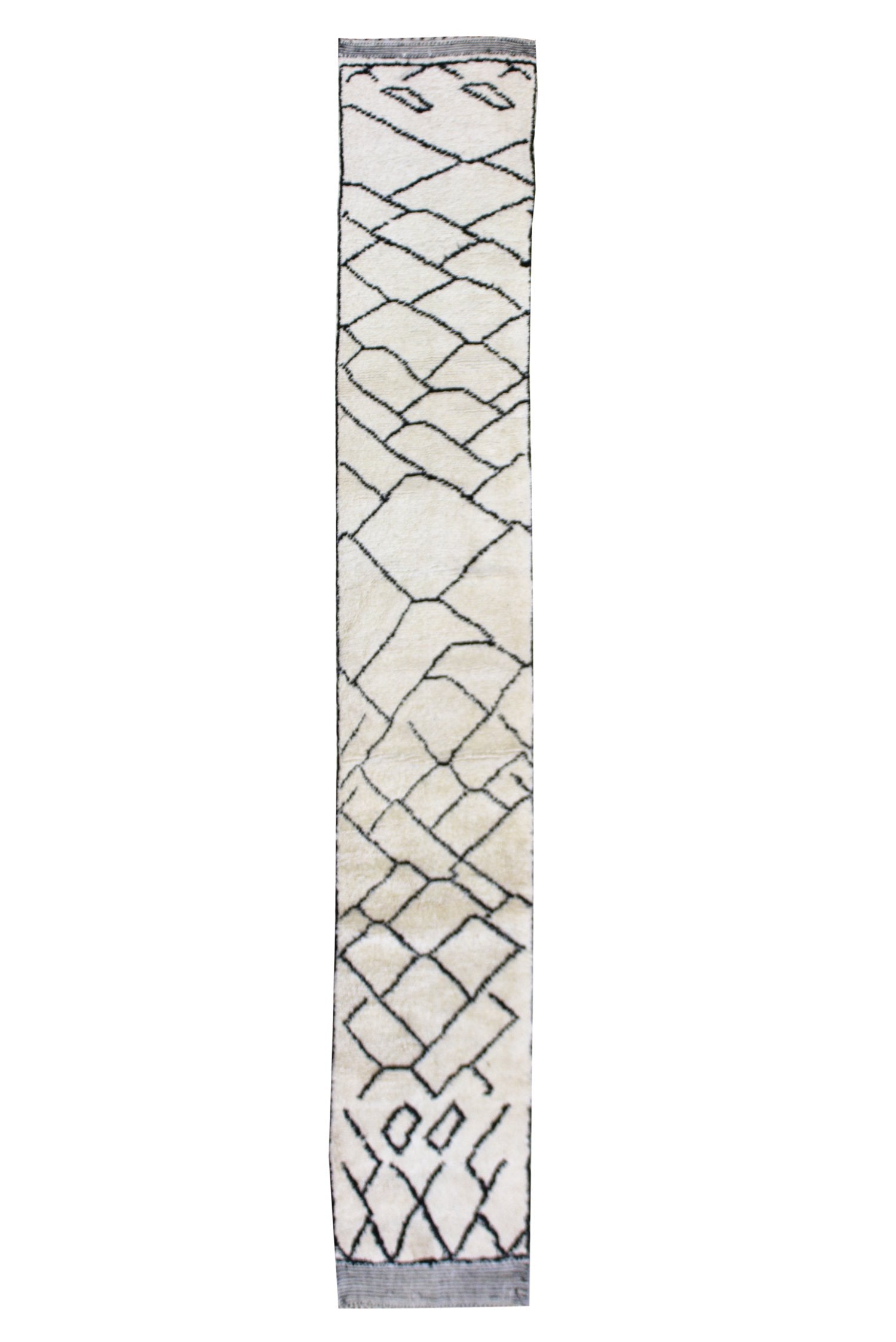 Looking to take your home’s interior design up a notch (or several)? Nothing does it better than a striking statement piece — such as our luxurious Beni Ouraine Handwoven Tribal Rug (J62431). This 2' 5" X 13' 4" tribal Moroccan & African rug has a Beni Ouraine design in ivory and black. Constructed of wool pile on a wool foundation, you know that this rug not only looks great but feels nice and will stand the tests of time and traffic. Quality and style are hallmarks of new handwoven Moroccan rugs — so you’ll be admiring this one for years to come! All you have to do is claim your Beni Ouraine Handwoven Tribal Rug today.