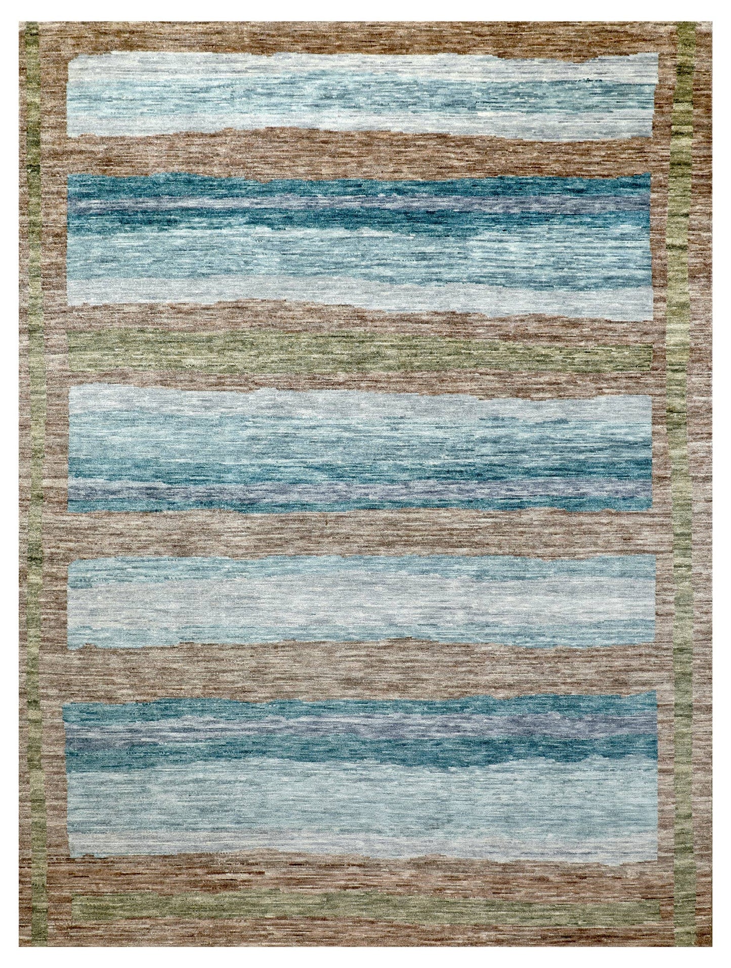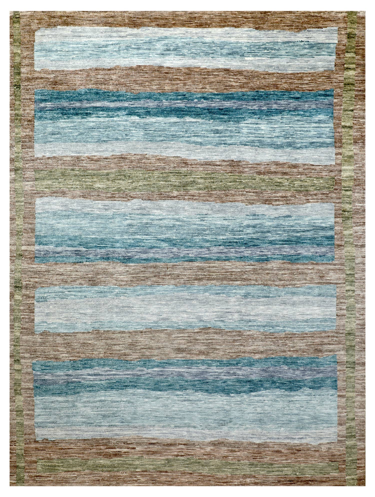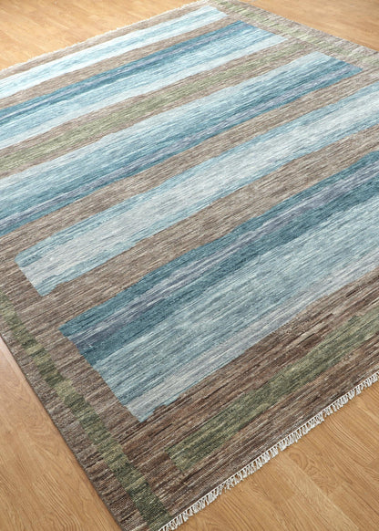 Make your house truly feel like home with our Benson Handwoven Contemporary Rug (J69078). It's new and contemporary. It’s brown on mocha with blue accent colors. It’s a Bold Geometry style rug with a Benson motif. All things you gravitate towards when it comes to aesthetics and design in your space. Being a 8' 11" X 11' 9" rug of wool pile on a cotton foundation, you can rest assured that this piece will do more than just make the visual impact and create the vibe you want. It comes from the fine Indian tradition of handwoven rugmaking, meaning this rug will serve you well and look terrific for years. Add that extra special personal touch today with your own Benson Handwoven Contemporary Rug.
