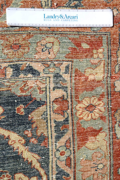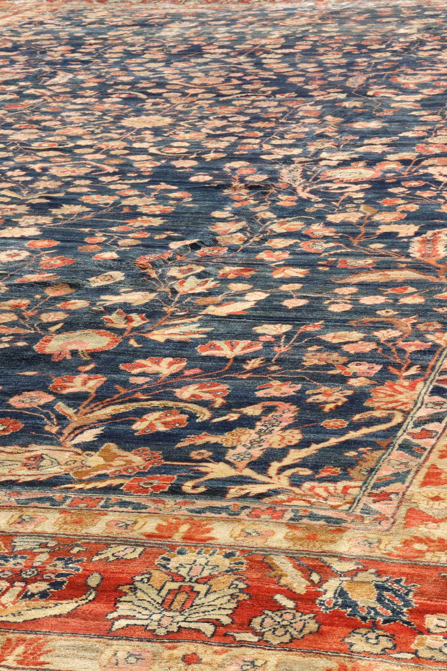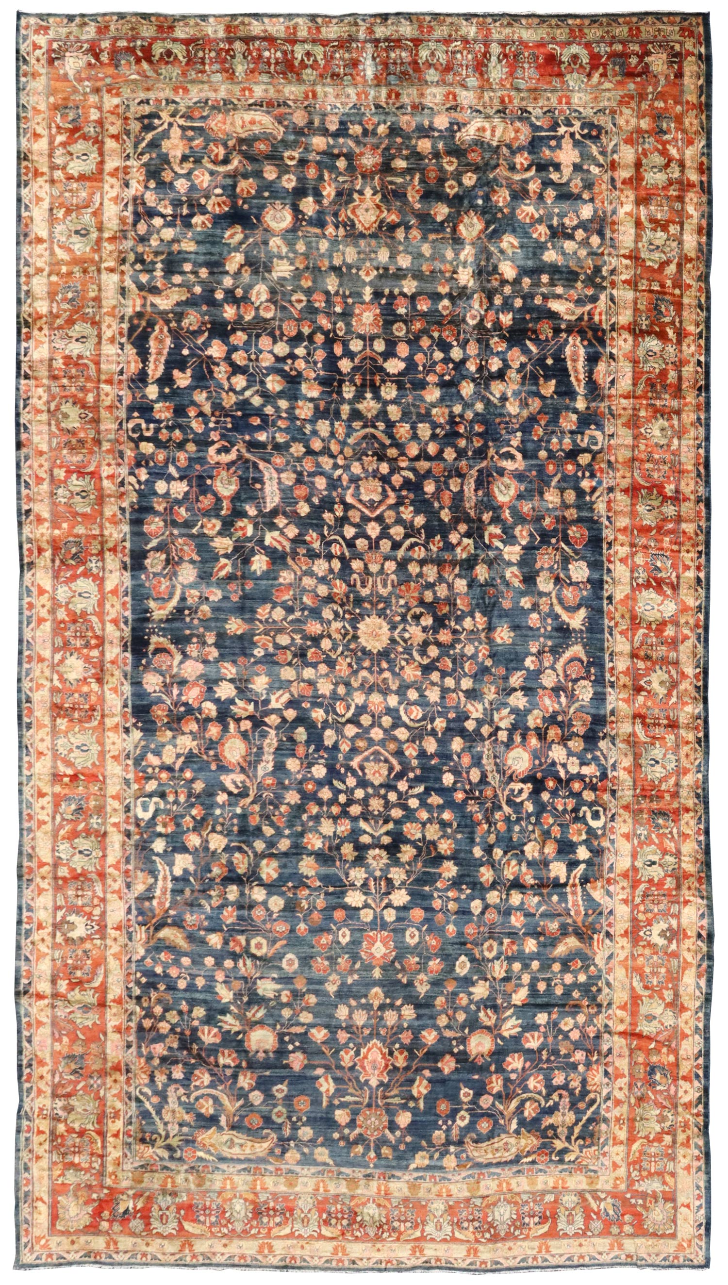 Antique 1910 Large Scale Floral Traditional Persian Bibikabad 14' 0" X 23' 0" Blue Rug