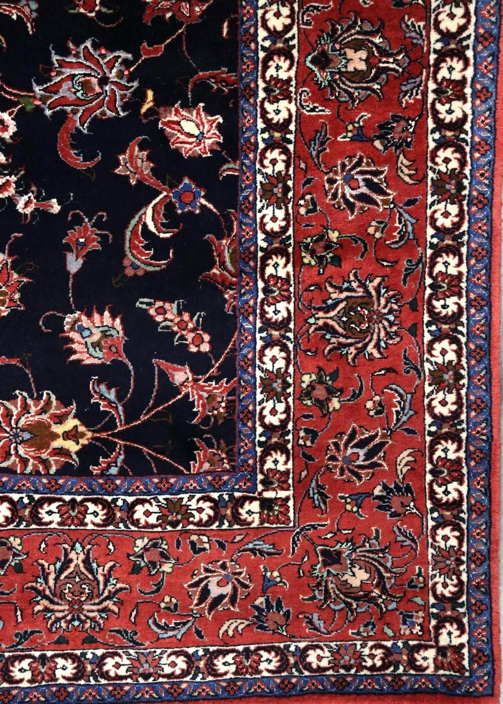 Make your house truly feel like home with our Bijar Handwoven Traditional Rug (J68071). It's new and traditional. It’s blue on navy with red accent colors. It’s a Formal Classic Persian style rug with a Bijar motif. All things you gravitate towards when it comes to aesthetics and design in your space. Being a 6' 8" X 10' 7" rug of wool & silk pile on a cotton foundation, you can rest assured that this piece will do more than just make the visual impact and create the vibe you want. It comes from the fine Persian tradition of handwoven rugmaking, meaning this rug will serve you well and look terrific for years. Add that extra special personal touch today with your own Bijar Handwoven Traditional Rug.