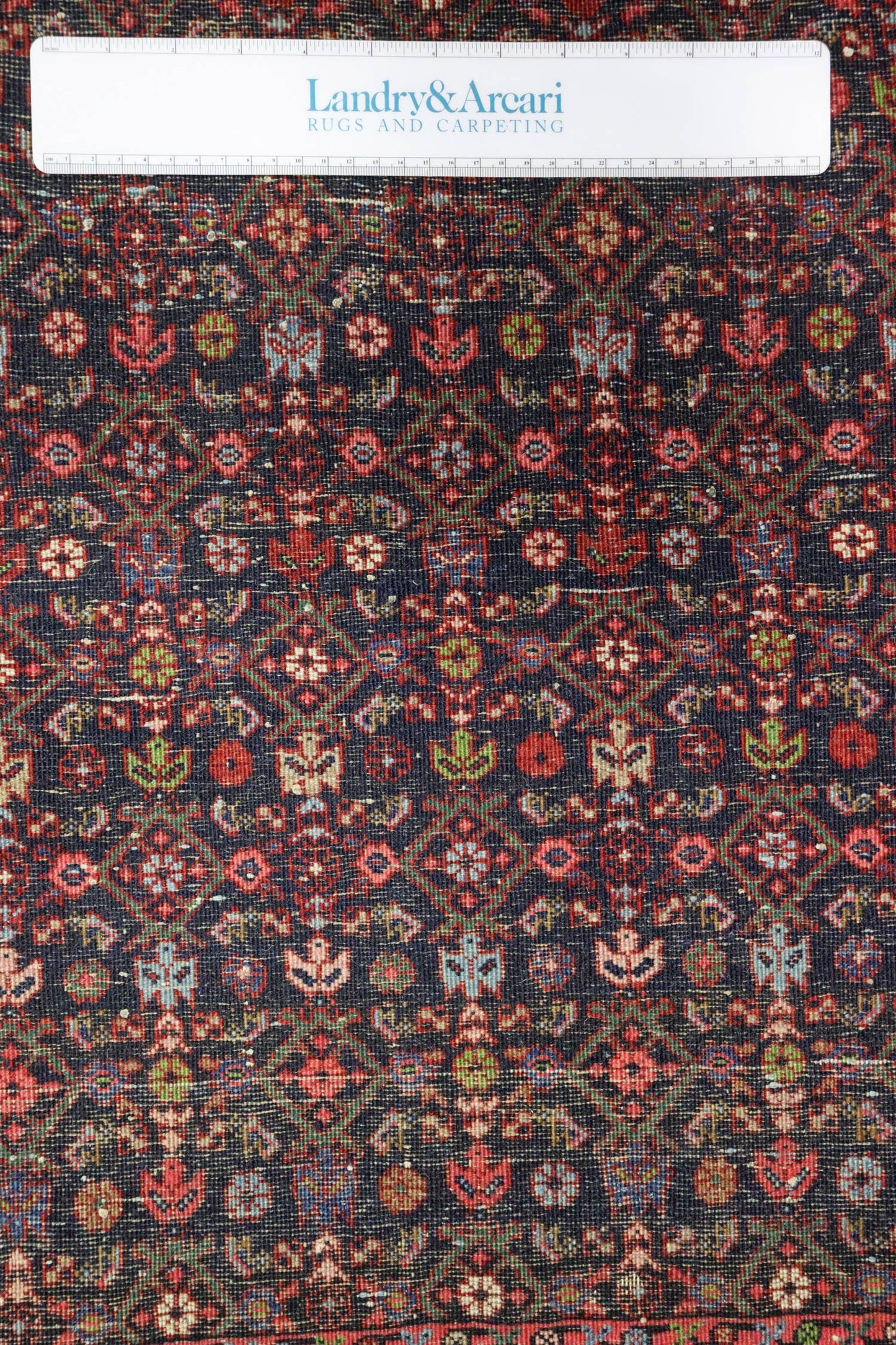 Bijar rugs, often referred to as the "iron rugs of Persia," are celebrated for their robust construction and longevity. The double-wefted technique employed in Bijar weaving enhances durability, making these carpets much sought after. The designs of Bijar rugs are heavily influenced by traditional Kurdish geometric styles. This particular rug displays an all-over pattern without a central medallion, typical of Bijar designs, featuring a dense and intricate interplay of floral and geometric motifs.