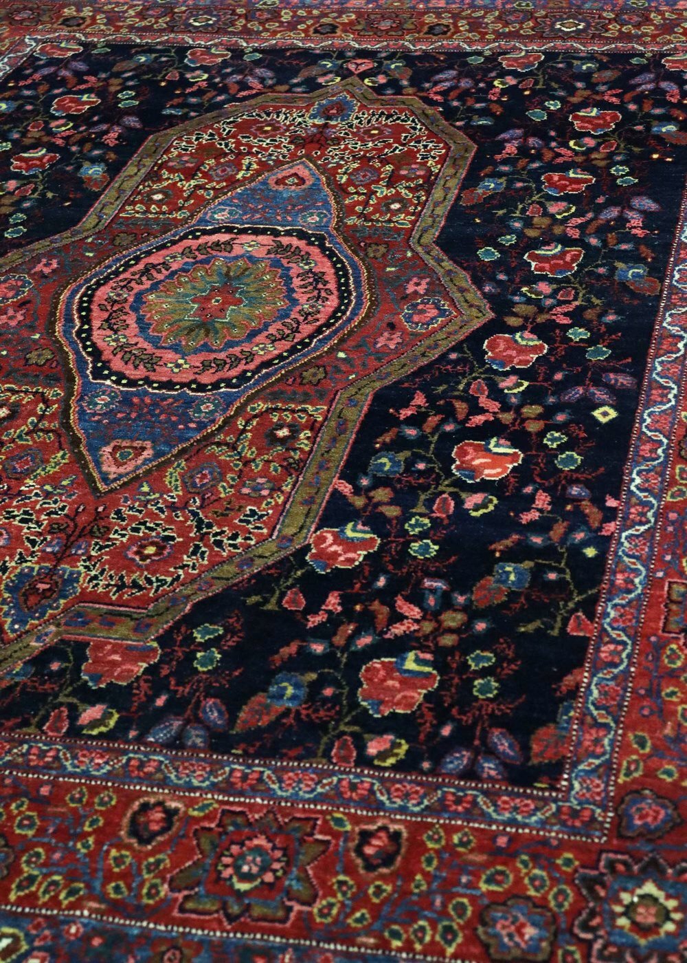 This antique Bijar rug is a testament to the enduring legacy of Kurdish weaving traditions, combining structural integrity with intricate, symmetrical design executed in a vibrant, balanced color palette.