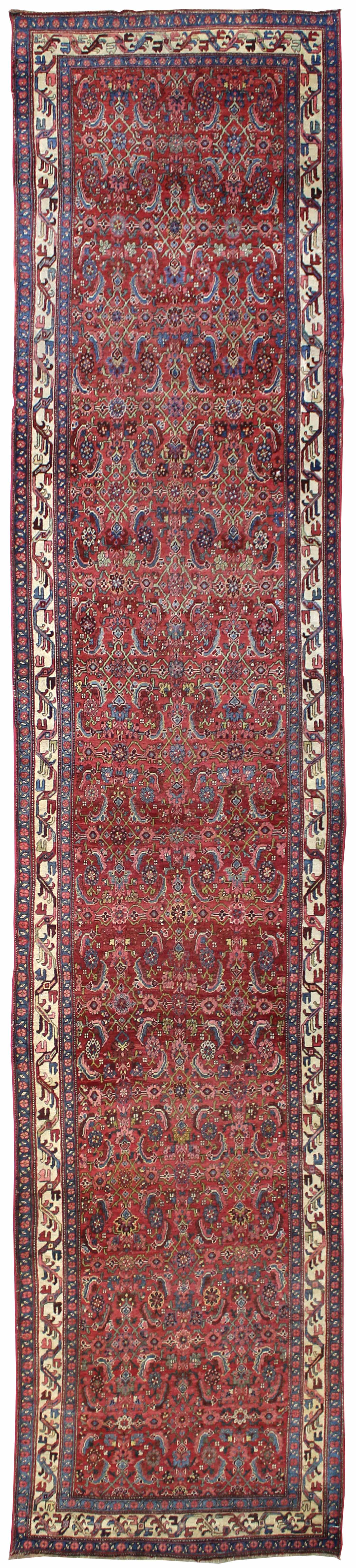 Elevate your room’s style with our Antique Bijar Handwoven Tribal Rug (JF8473). The tribal Nomadic Persian & Turkish style, with its Bijar motif, is definitely a stunner that you’ll be proud to show off in your home. Its distinctive red and ivory palette will add charm, elegance, and that little bit of that ever-elusive je ne sais quoi. Plus, the wool pile on a cotton foundation used in this 3' 6" X 18' 6" rug accentuates its allure. But, this rug isn’t just worthy of gracing the pages of a design magazine. With its masterful Persian handwoven construction, this antique rug from around 1910 will be a prized possession for decades to come. Get your own show-stopping Antique Bijar Handwoven Tribal Rug today!