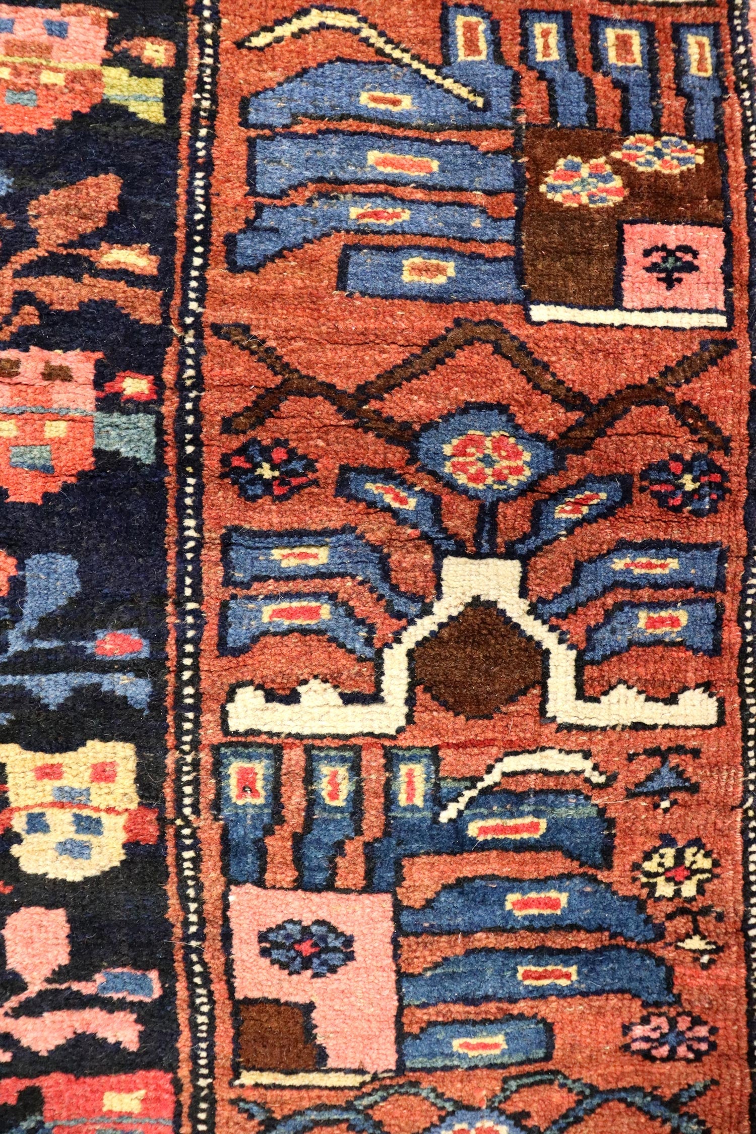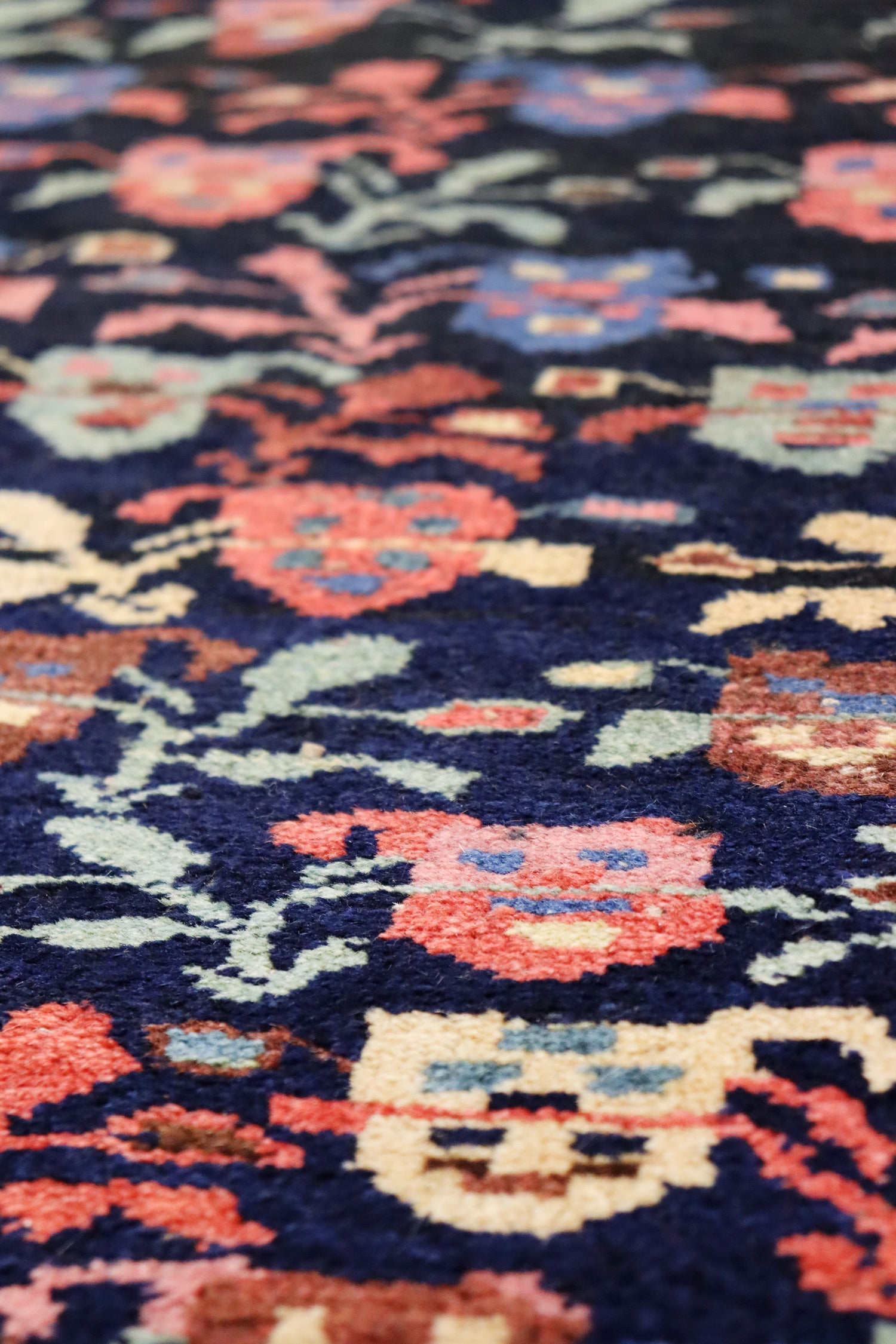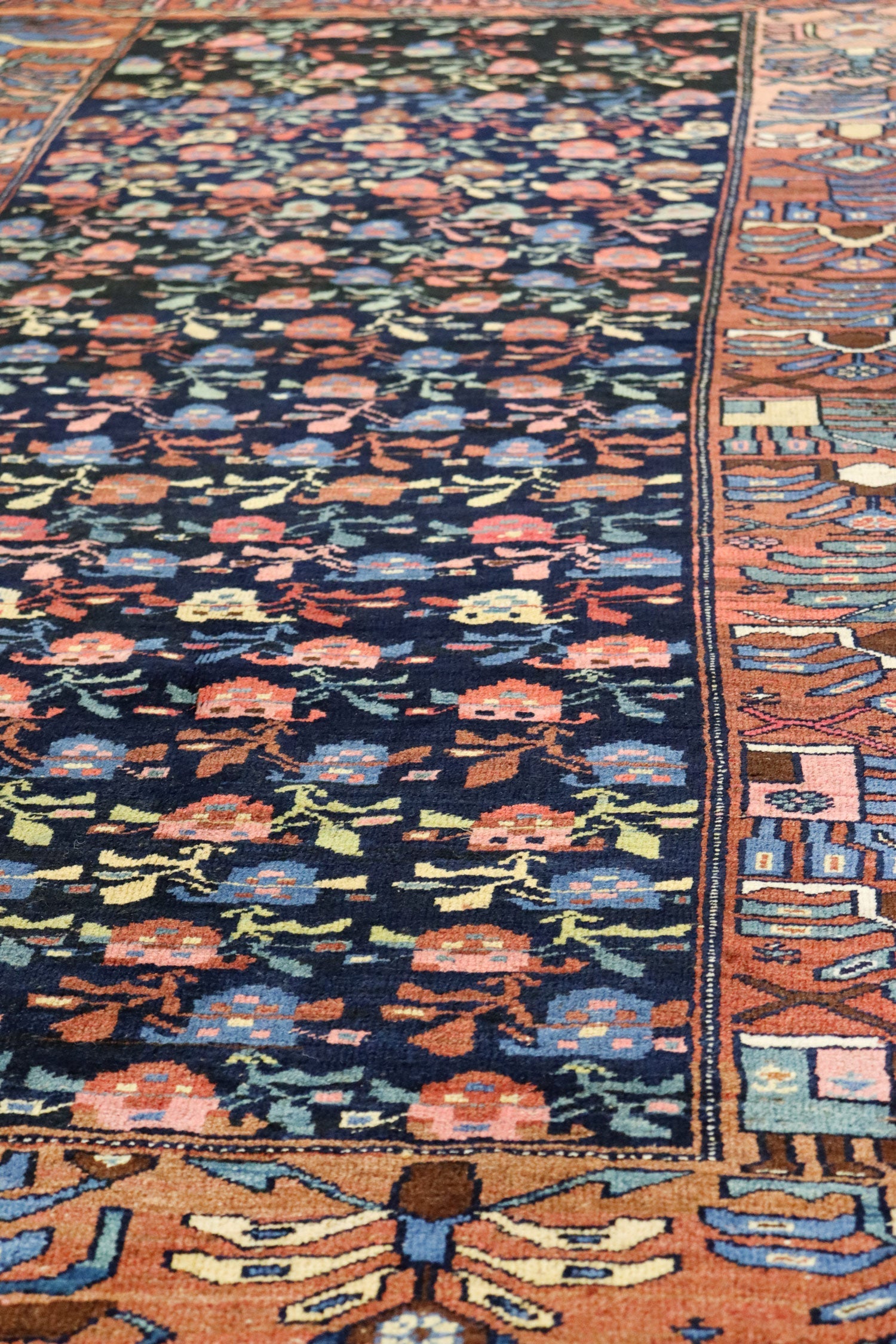 Elevate your room’s style with our Antique Bijar Handwoven Tribal Rug (JF8526). The tribal Nomadic Persian & Turkish style, with its Bijar motif, is definitely a stunner that you’ll be proud to show off in your home. Its distinctive blue, navy and brick palette will add charm, elegance, and that little bit of that ever-elusive je ne sais quoi. Plus, the wool pile on a cotton foundation used in this 4' 2" X 9' 5" rug accentuates its allure. But, this rug isn’t just worthy of gracing the pages of a design magazine. With its masterful Persian handwoven construction, this antique rug from around 1920 will be a prized possession for decades to come. Get your own show-stopping Antique Bijar Handwoven Tribal Rug today!