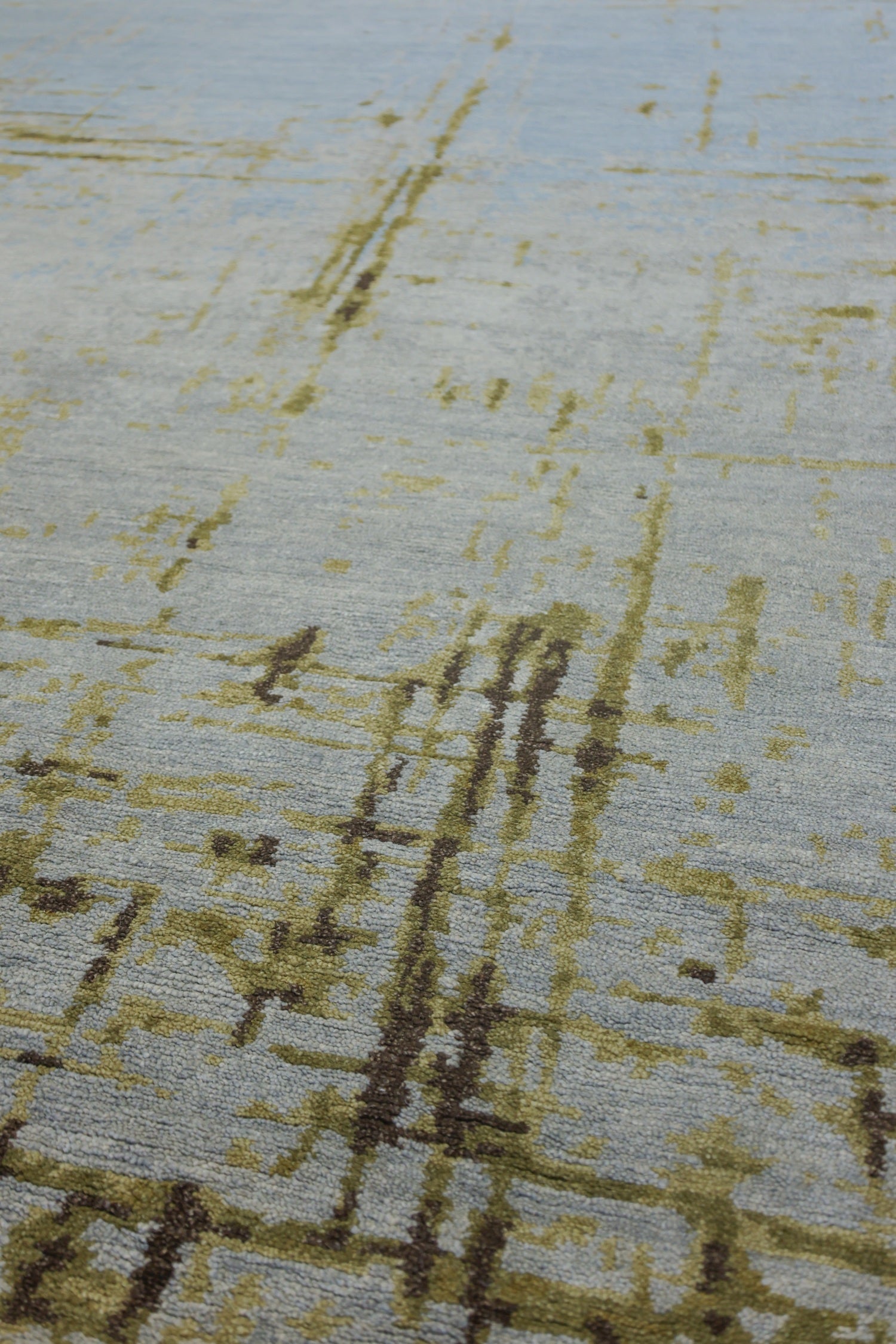 New Modern Abstract Contemporary Nepalese Blurred Lines 8' 0" X 10' 0" Blue Rug