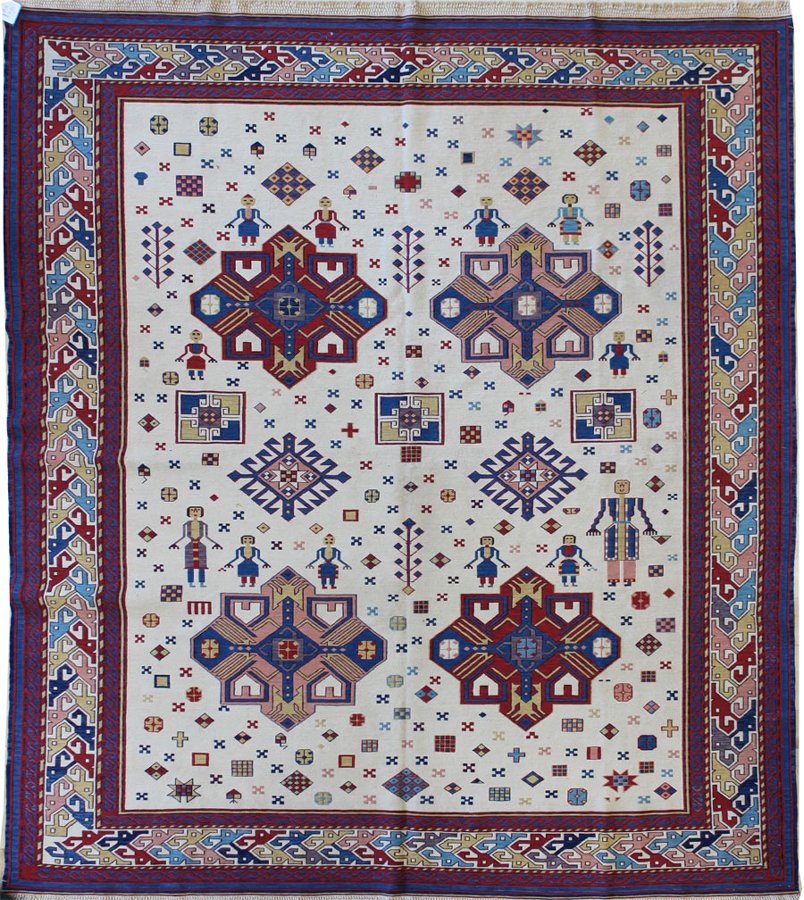 Get ready to fall in love with our Borchalu Handwoven Tribal Closeout Rug (J22855)! This tribal Caucasian piece is ivory with multi-colored accents. The Borchalu design and 8' 3" X 9' 3" size make this new handwoven Turkish rug a gorgeous addition to any space. Its wool flatweave surface on a wool foundation means this rug is incredibly durable — you’ll be able to cherish it for years to come. Get your Borchalu Handwoven Tribal Closeout Rug today!