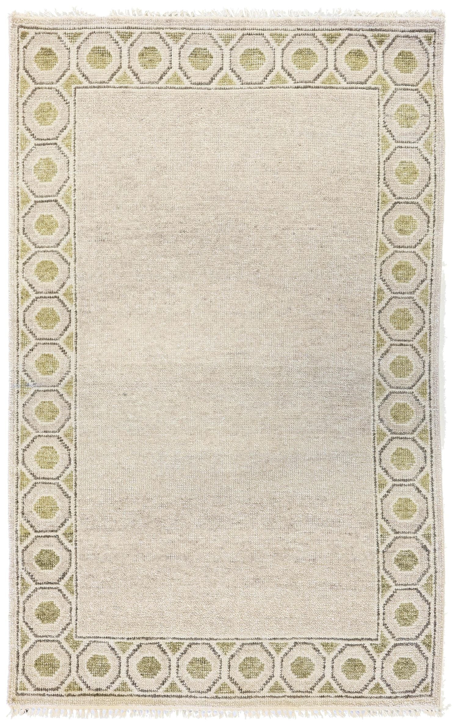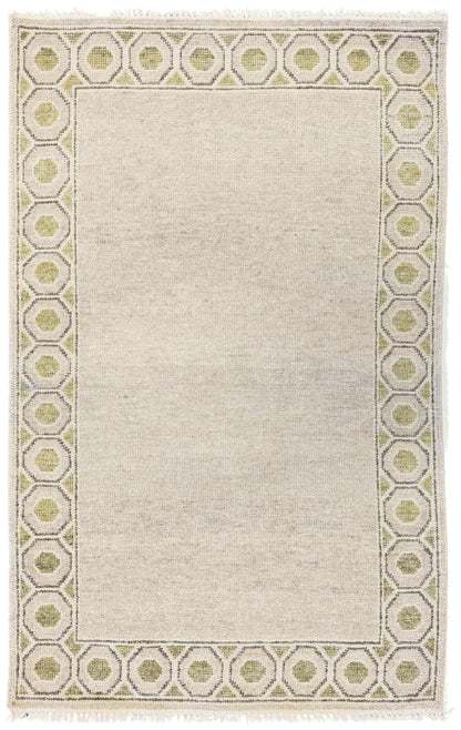New Overdyed & Distressed Transitional Indian Bordered 3' 2" X 5' 0" Beige Rug