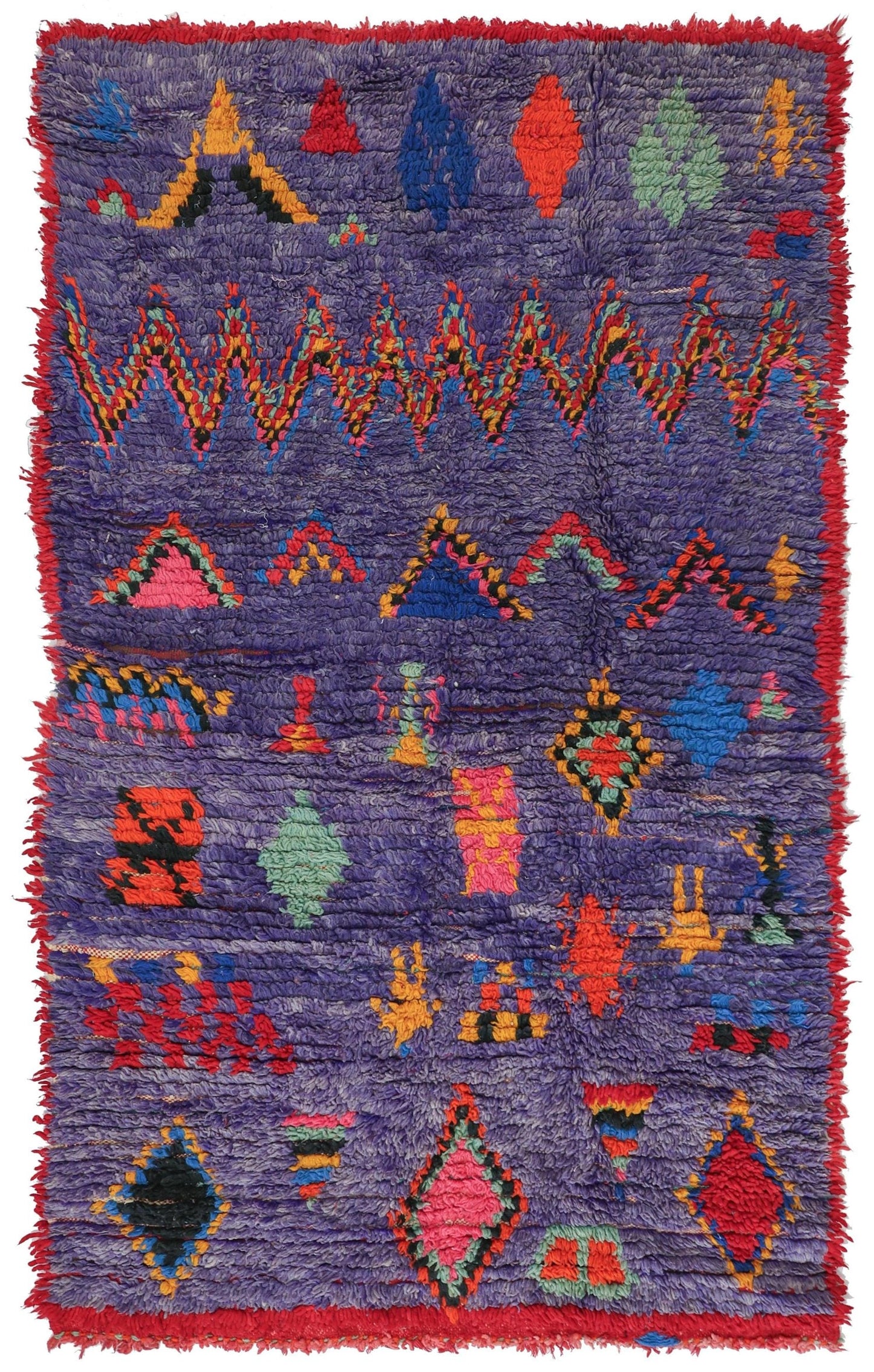 Vintage 1960 Moroccan & African Tribal Moroccan Boucherouite 3' 11" X 6' 5" Purple Rug