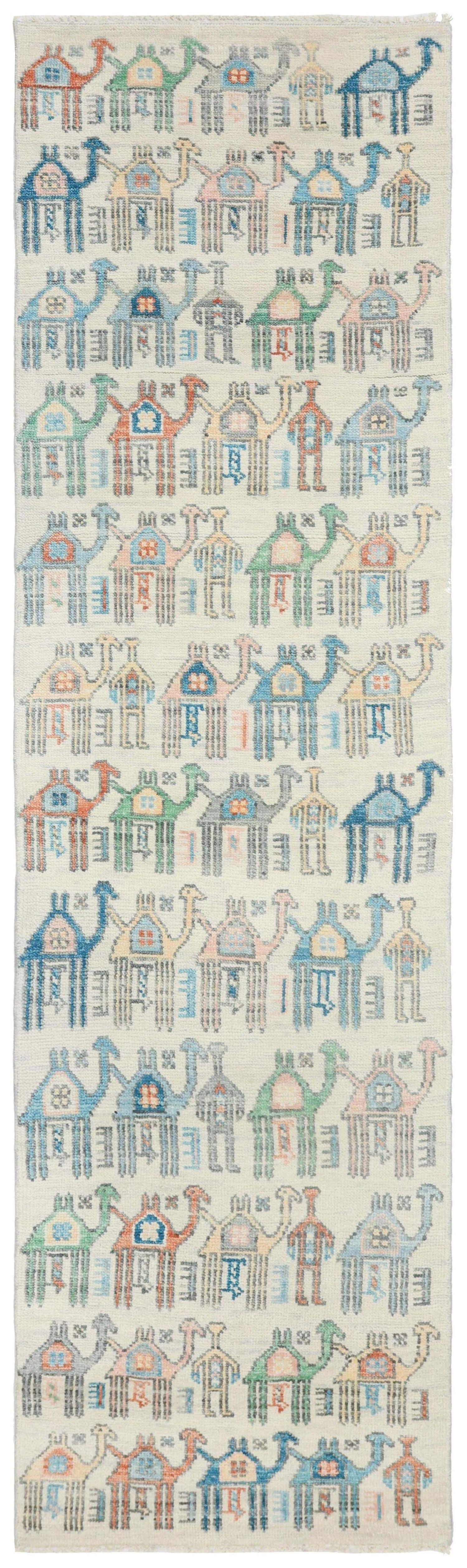 New Pictorial Contemporary Indian Camels 3' 0" X 10' 5" Ivory Rug