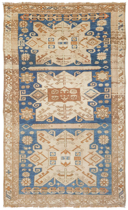 Vintage 1925 Nomadic Persian & Turkish Tribal Russian Dagastan 3' 8" X 6' 0" Blue Rug