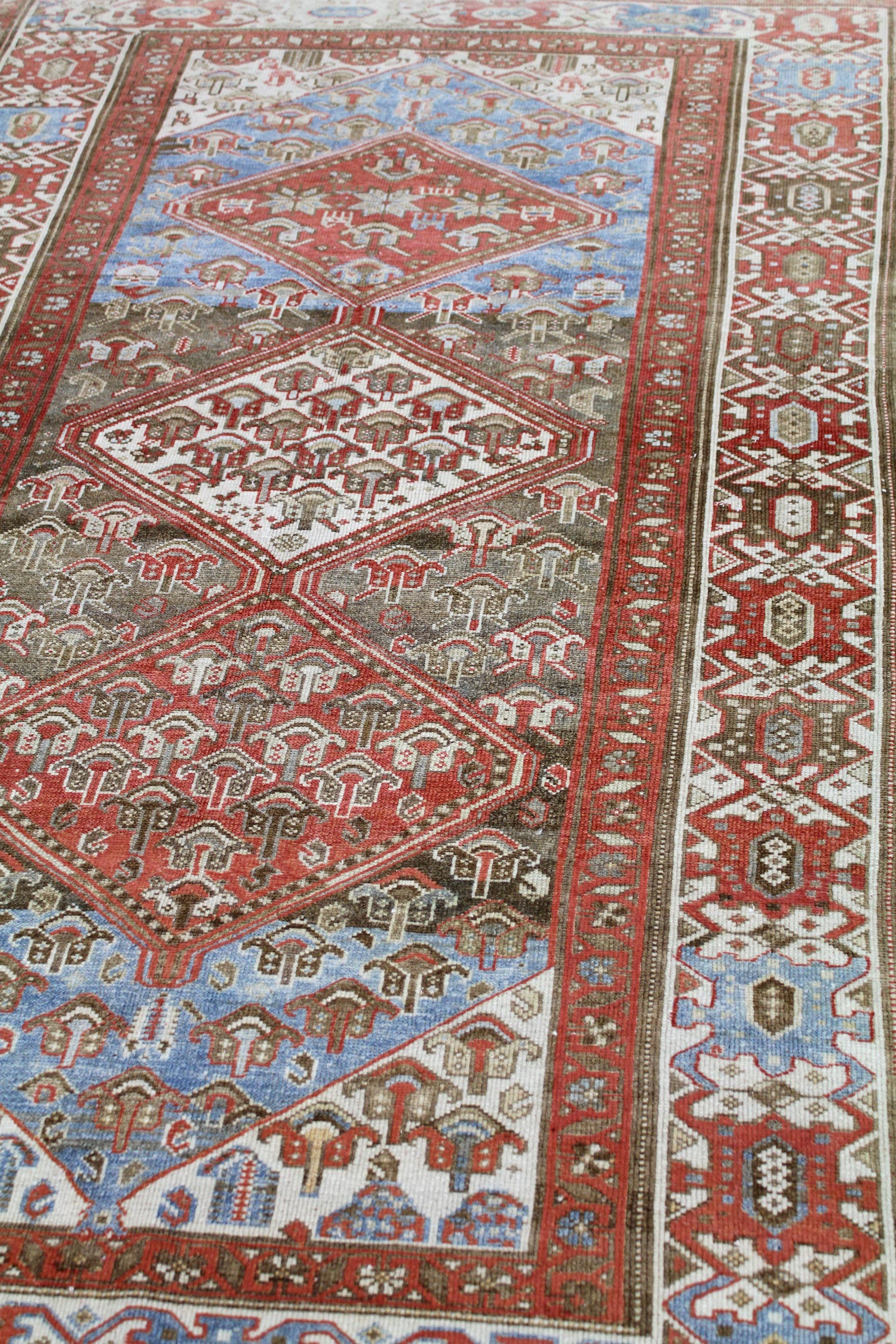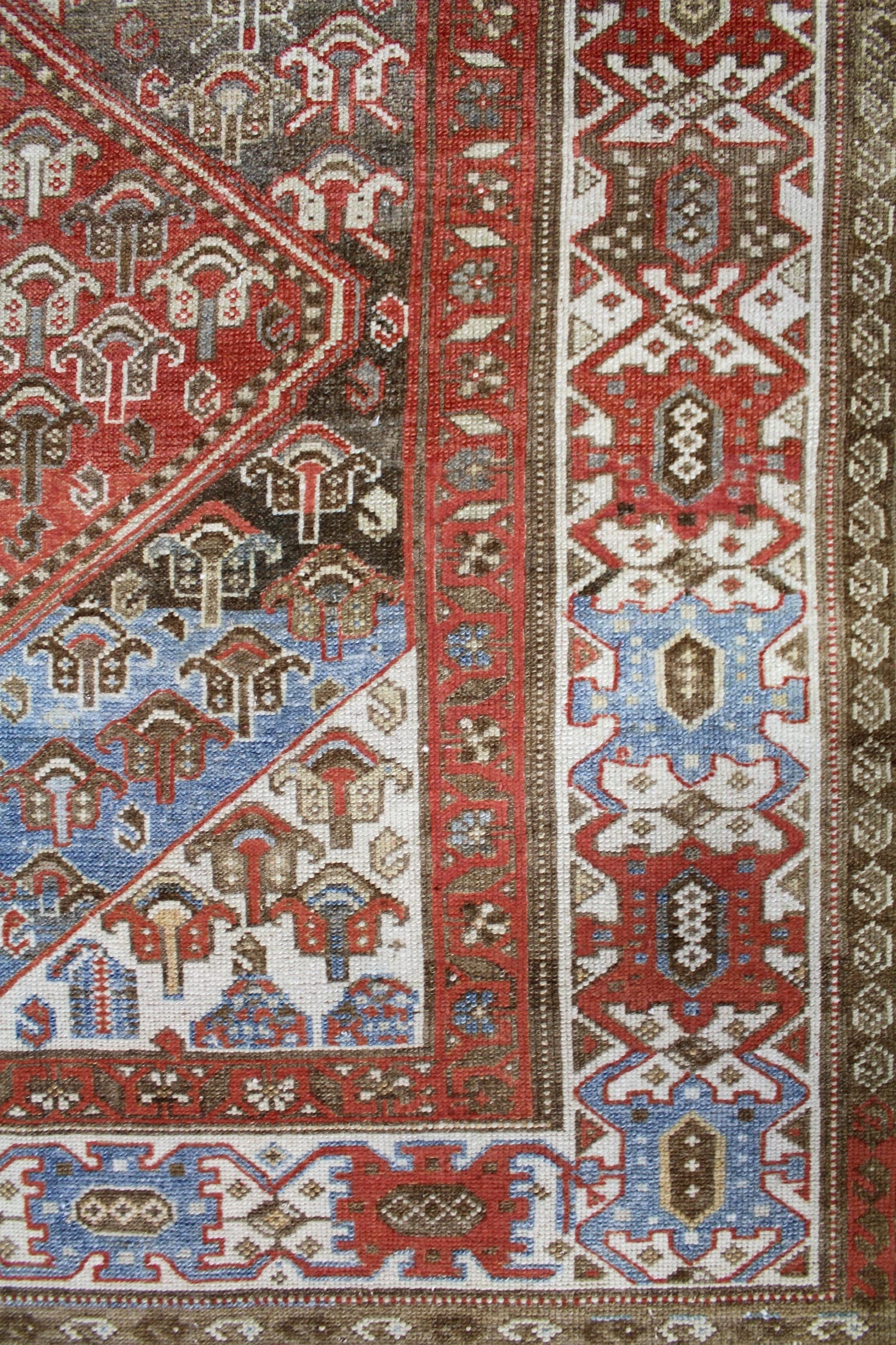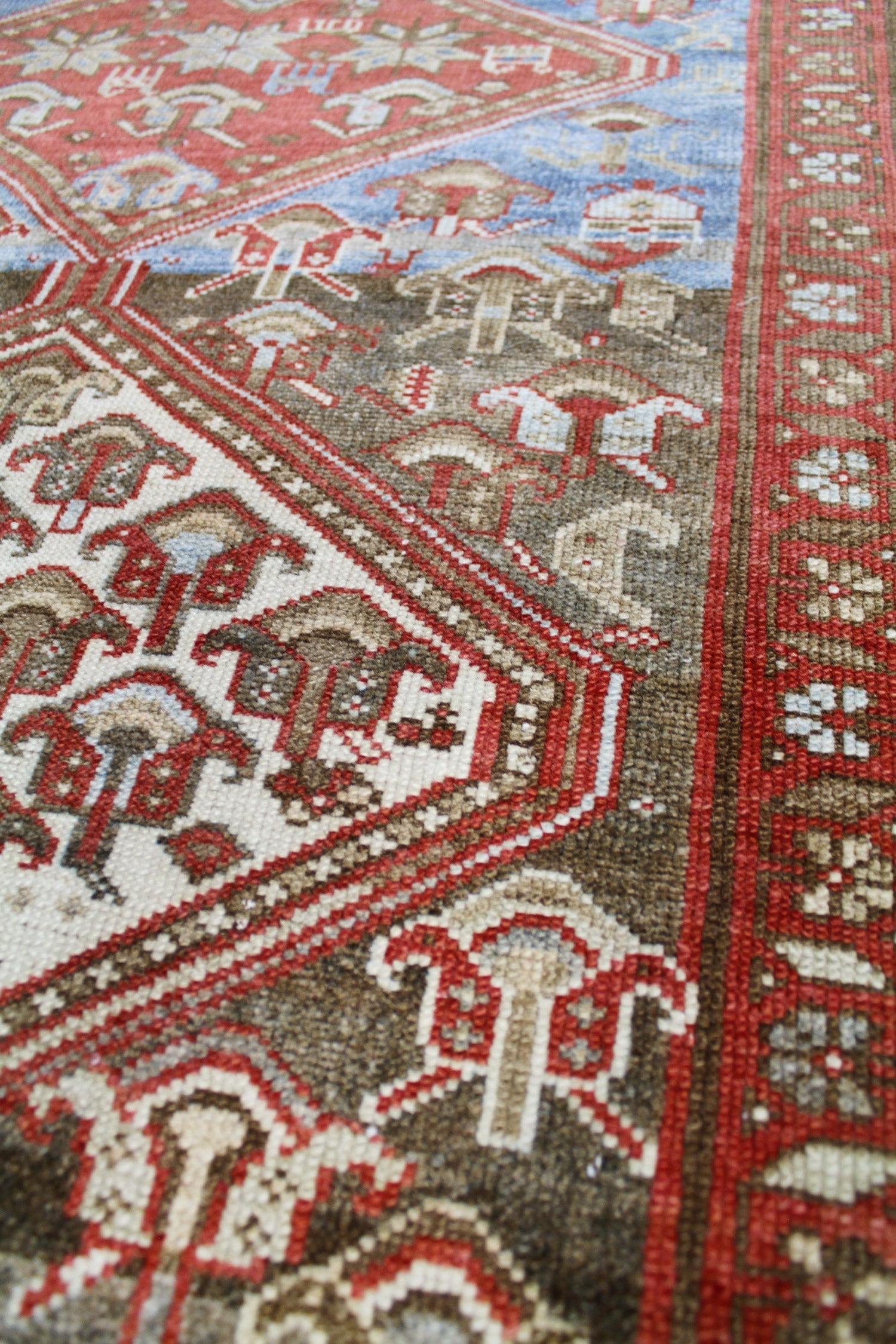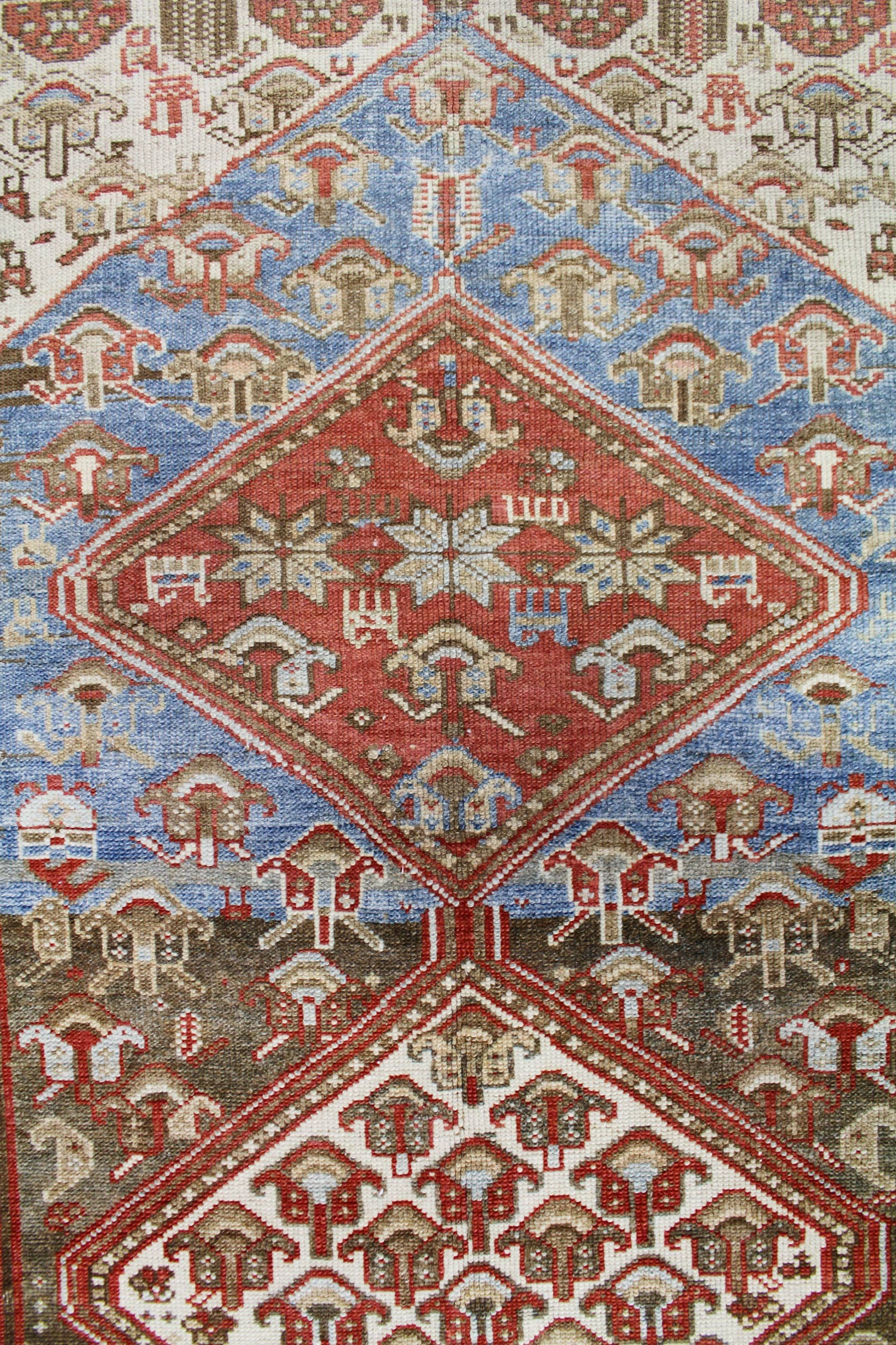 Looking to take your home’s interior design up a notch (or several)? Nothing does it better than a striking statement piece — such as our luxurious Vintage Derband Handwoven Tribal Rug (J63367). This 4' 3" X 7' 1" tribal Caucasian rug has a Derband design in blue, light blue and persimmon. Constructed of wool pile on a wool foundation, you know that this rug not only looks great but feels nice and will stand the tests of time and traffic. Quality and style are hallmarks of vintage (circa 1915) handwoven Caucasian rugs — so you’ll be admiring this one for years to come! All you have to do is claim your Vintage Derband Handwoven Tribal Rug today.