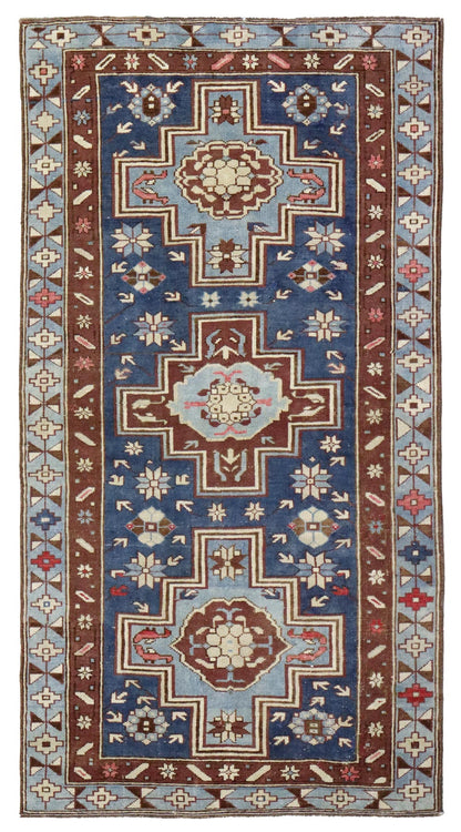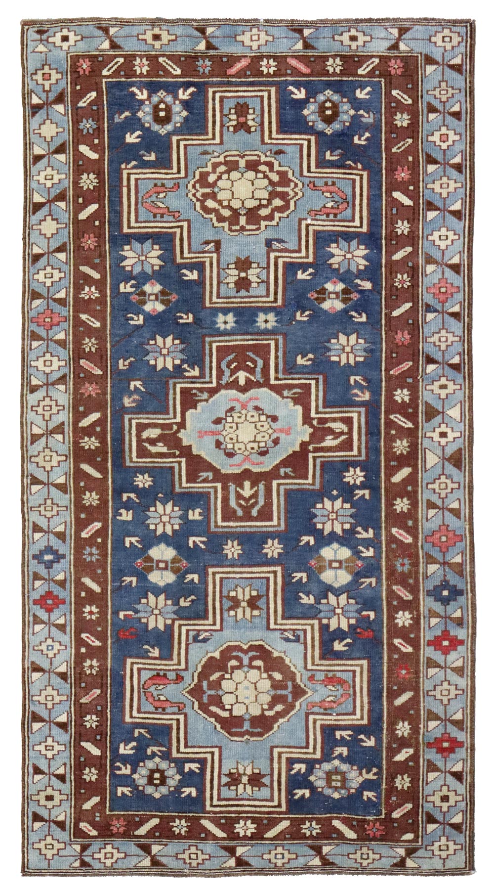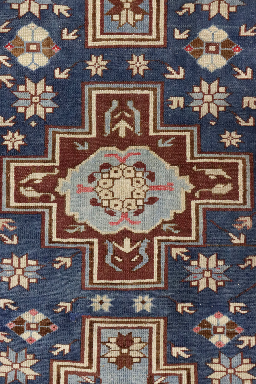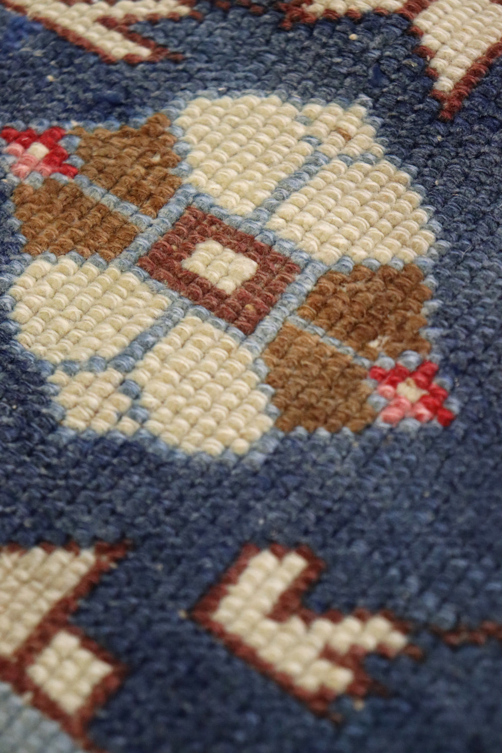 Change things up — transform your space with our amazing Vintage Derband Handwoven Tribal Rug (J66933). This vintage 3' 3" X 5' 10" rug is in the tribal Vintage Turkish Village style and features a stunning Derband design that you’ll absolutely love. This rug is primarily blue on denim with brown accents. You’ll also appreciate the wool pile on a wool foundation, which feels great underfoot! As with other handwoven Caucasian rugs dating to around 1920, this one’s made to last. You’ll be enjoying the elements of interest and sophistication it adds to your home for years. Don’t delay — refresh your room today with your own Vintage Derband Handwoven Tribal Rug.
