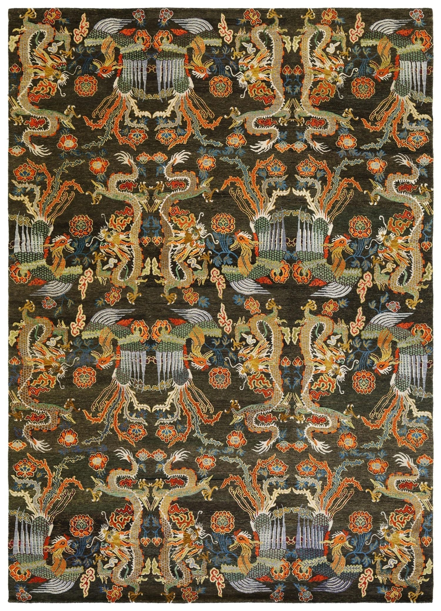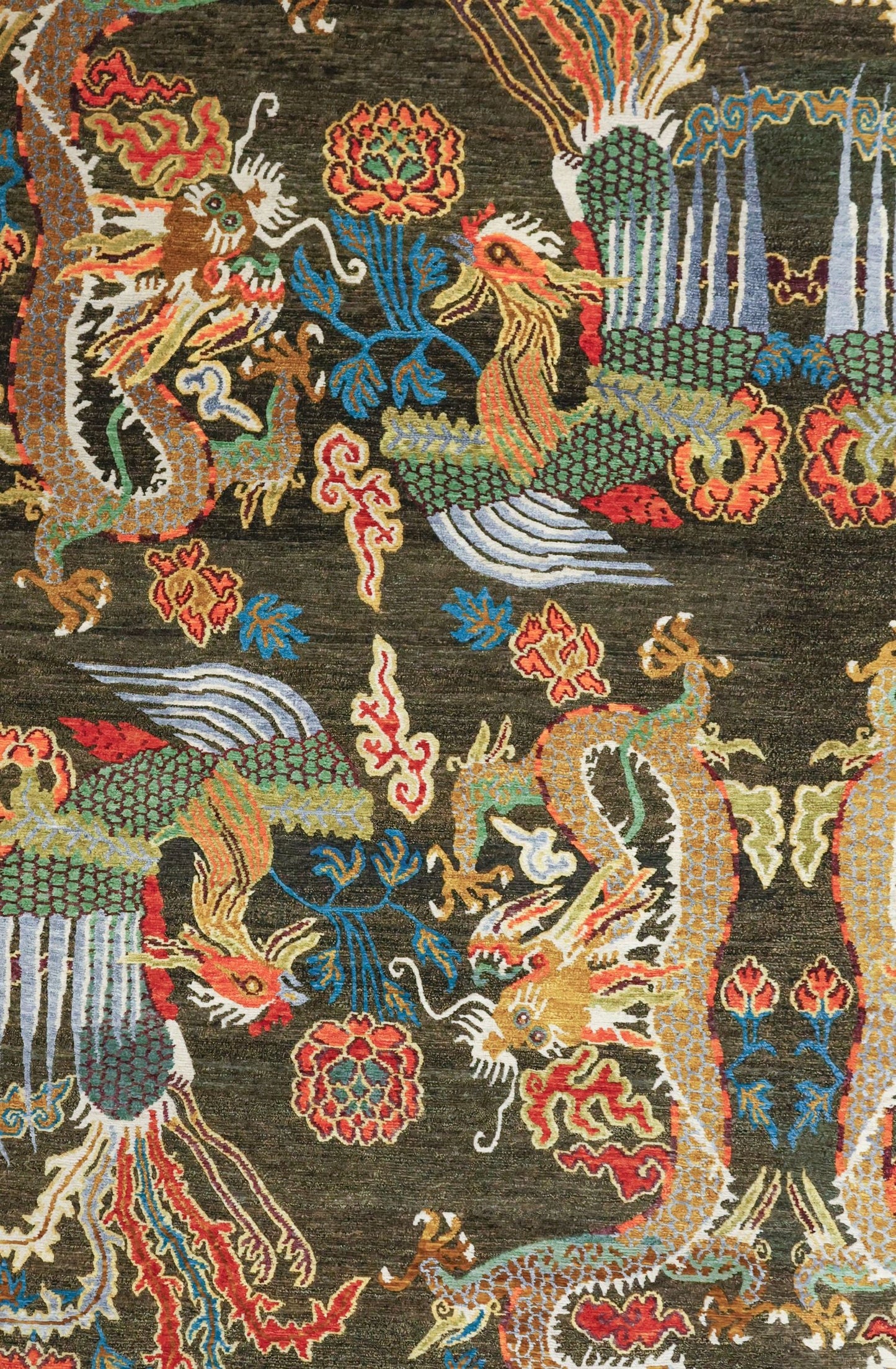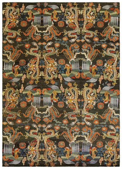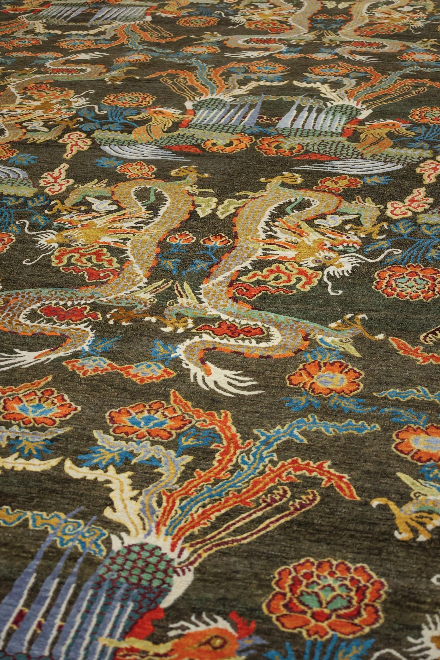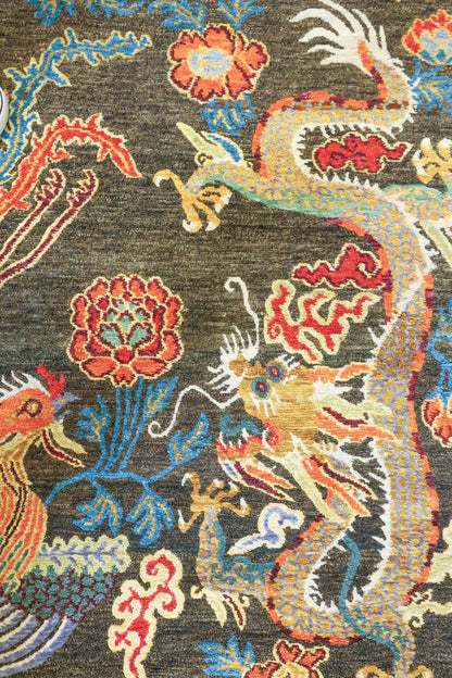 New Pictorial Contemporary Nepalese Dragon King 9' 2" X 12' 6" Brown Rug