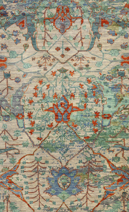 New Nomadic Persian & Turkish Tribal Afghani Erased Arabesque 9' 11" X 13' 10" Green Rug