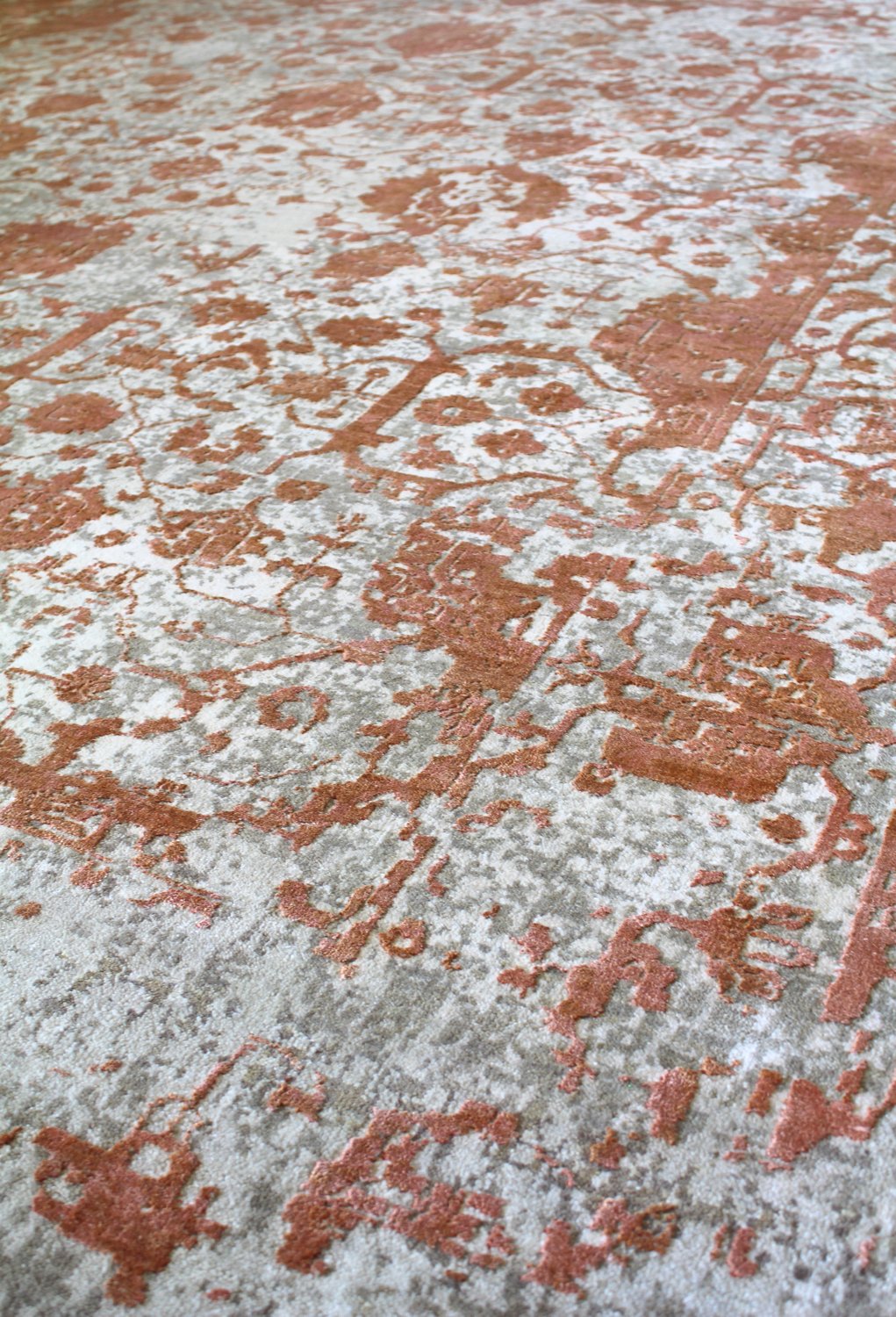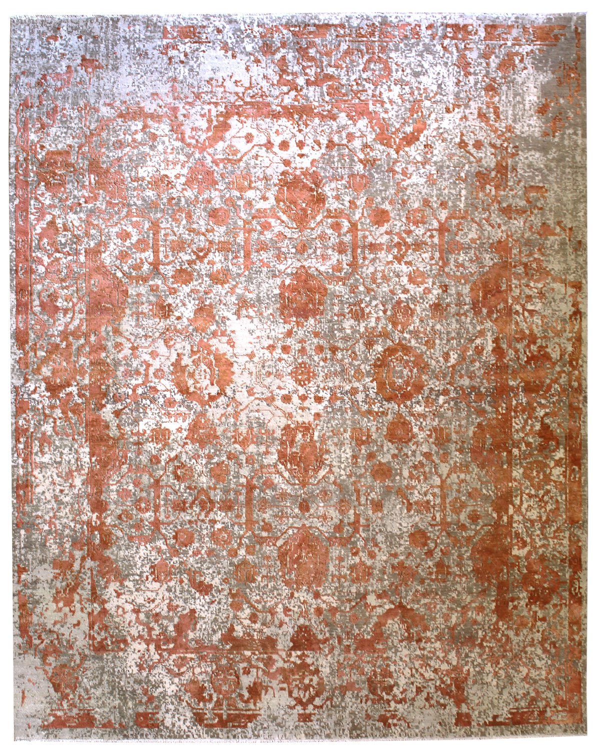 Opt for opulence and establish your signature style with the striking Erased Motif Handwoven Closeout Rug (J57218). As a 9' 1" X 12' 0" rug that's transitional and erased in style, you know that this piece can instantly tie the look of your space together. The rug's erased motif design will effortlessly complement and elevate your home's interior. Better still, the orange, tangerine and beige will flatter any décor. This new handwoven Indian rug is constructed of wool & silk pile and a cottonfoundation, so it’ll not only look outstanding and perfect in your home — it’ll last for generations. Bring home your Erased Motif Handwoven Closeout Rug today!