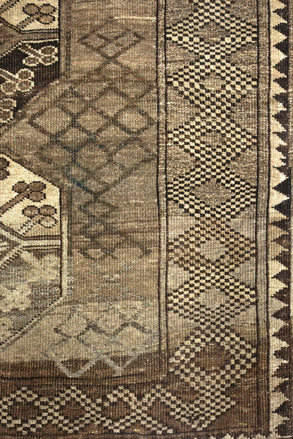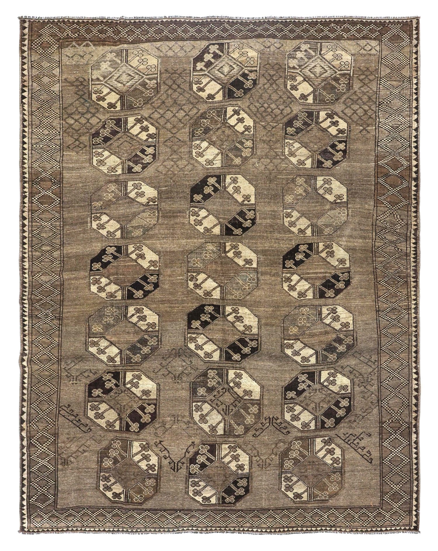 Vintage 1920 Turkmen Tribal Central Asian Ersari 6' 9" X 8' 6" Brown Rug
