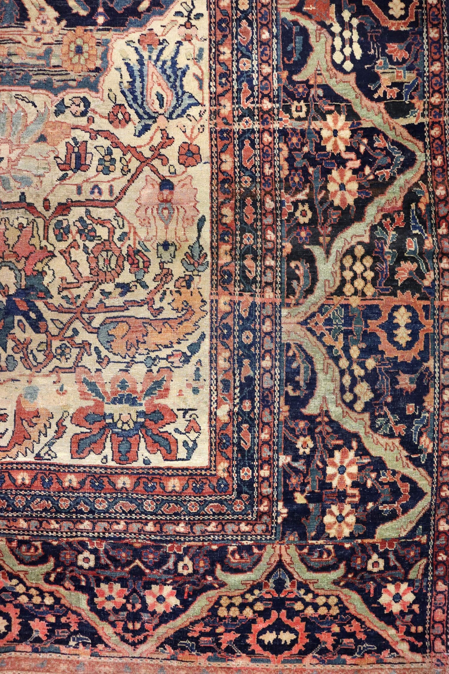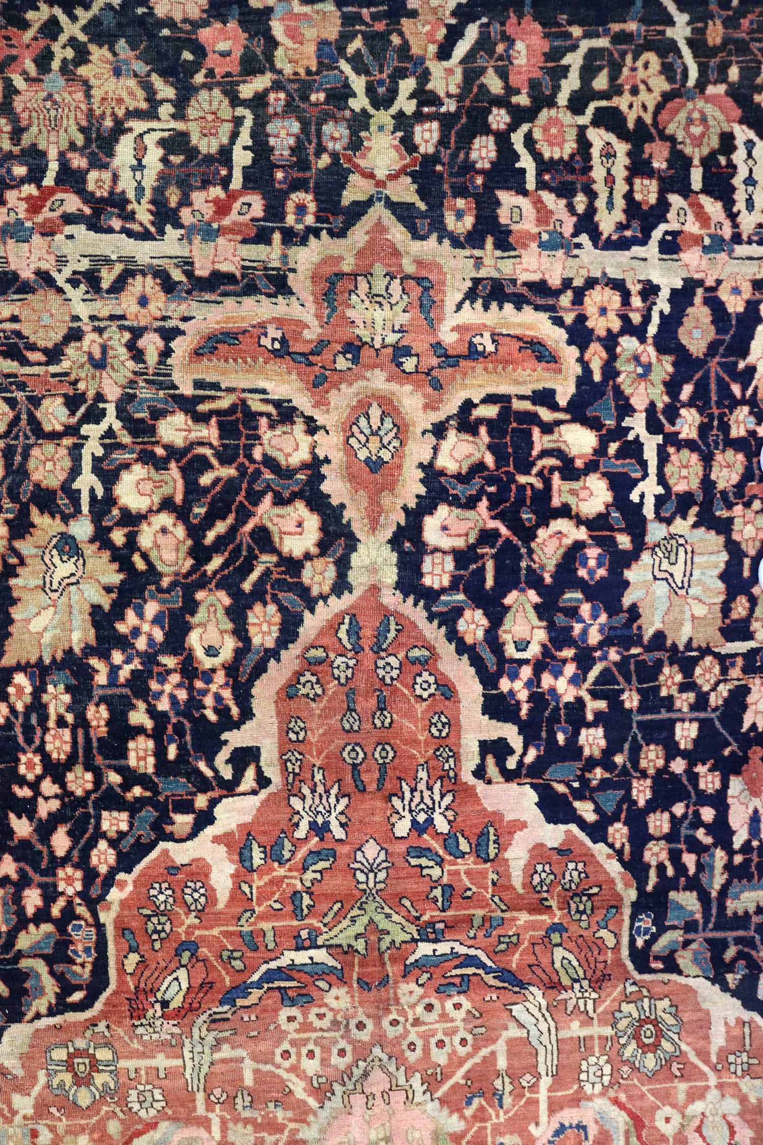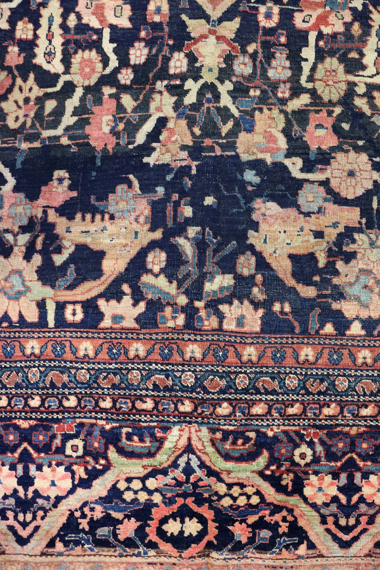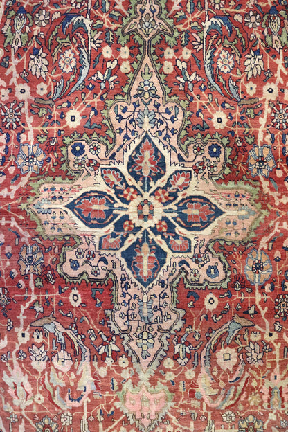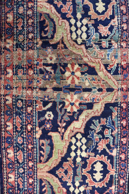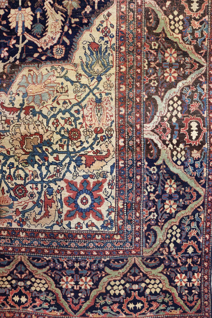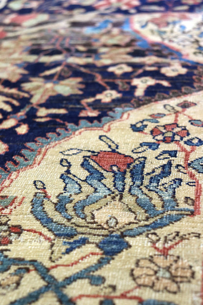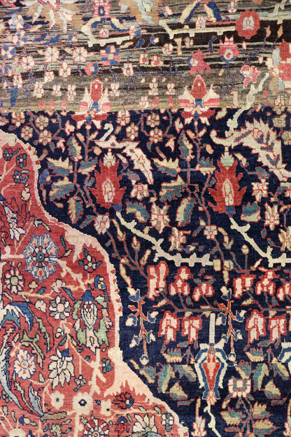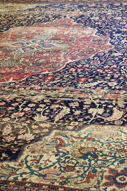 Elevate your room’s style with our Antique Ferahan Sarouk Handwoven Traditional Rug (JF8586). The traditional Formal Classic Persian style, with its Ferahan Sarouk motif, is definitely a stunner that you’ll be proud to show off in your home. Its distinctive blue, navy and rust palette will add charm, elegance, and that little bit of that ever-elusive je ne sais quoi. Plus, the wool pile on a cotton foundation used in this 13' 2" X 19' 10" rug accentuates its allure. But, this rug isn’t just worthy of gracing the pages of a design magazine. With its masterful Persian handwoven construction, this antique rug from around 1880 will be a prized possession for decades to come. Get your own show-stopping Antique Ferahan Sarouk Handwoven Traditional Rug today!