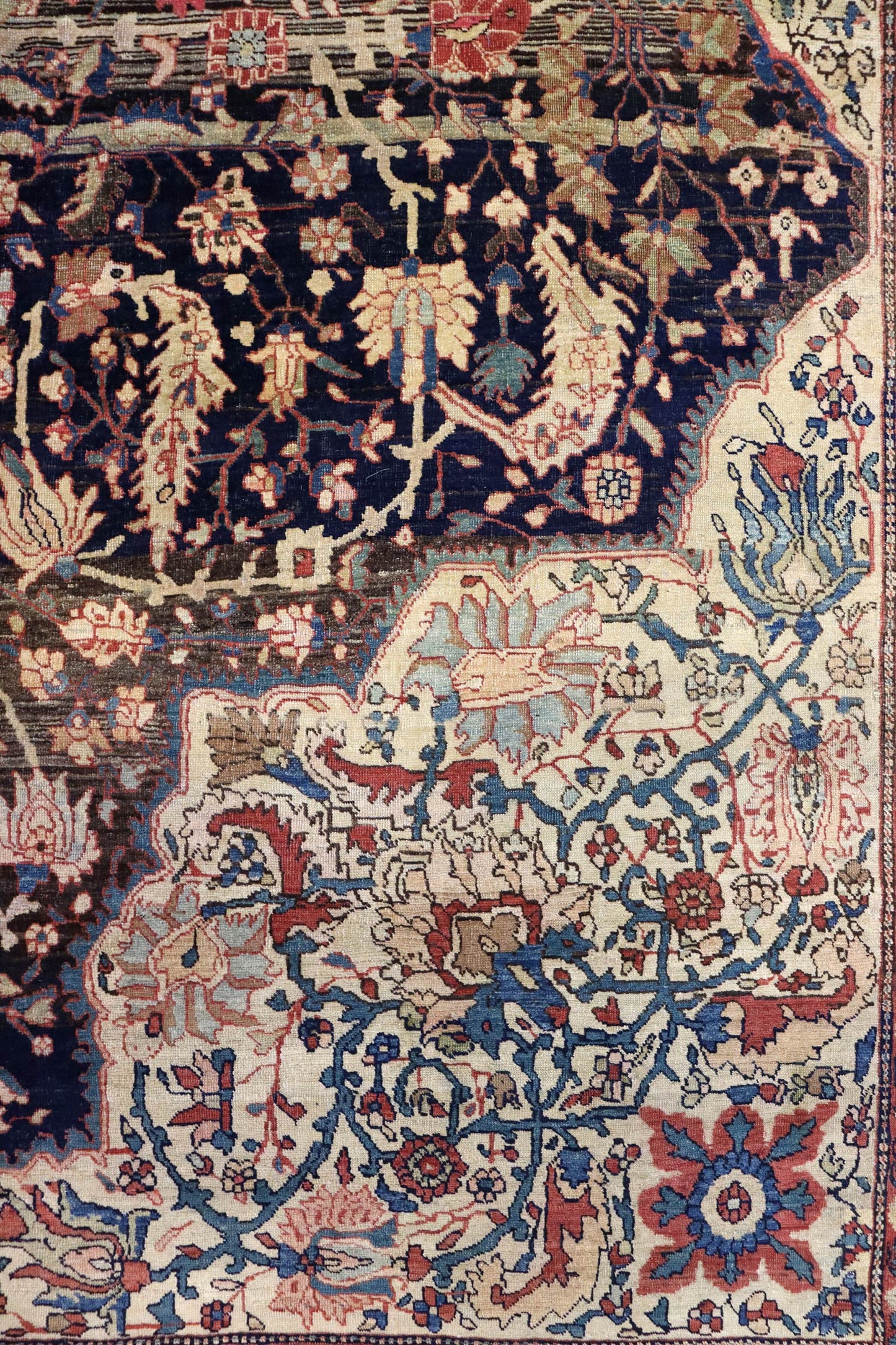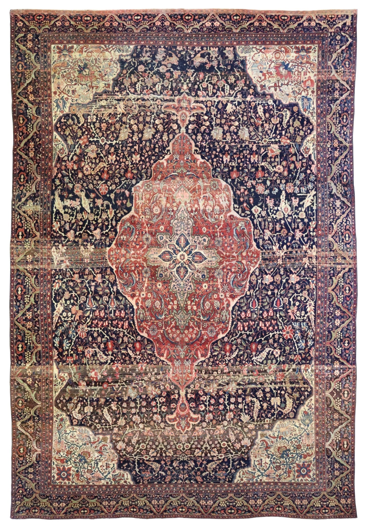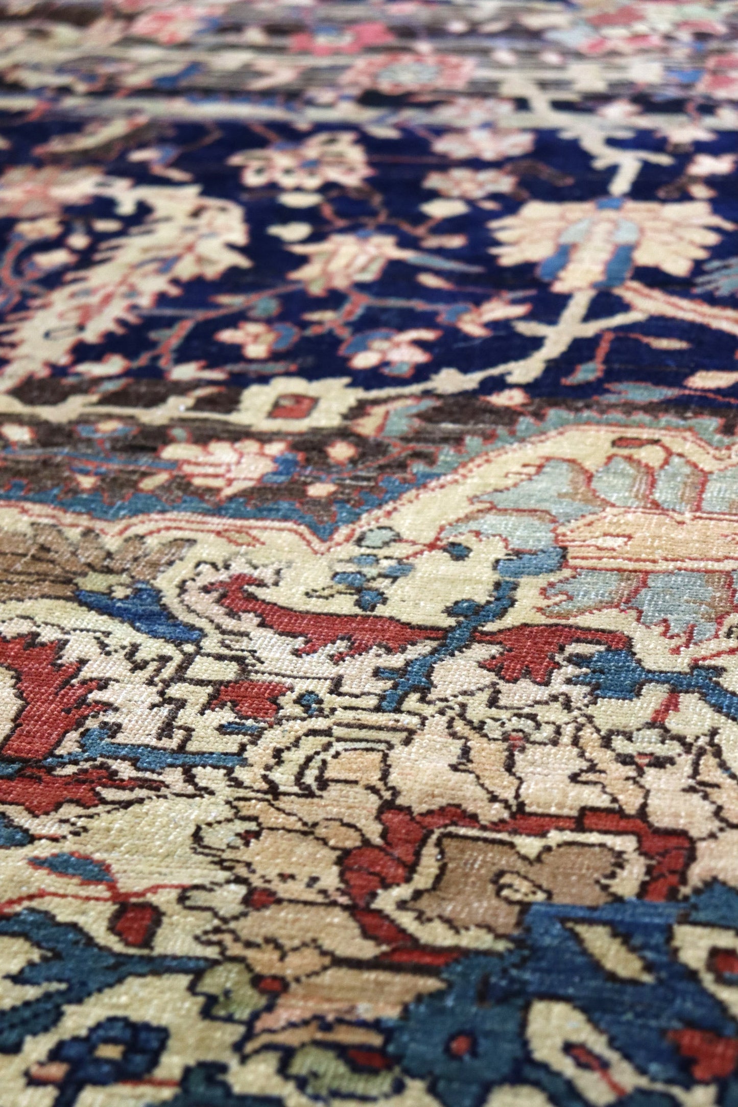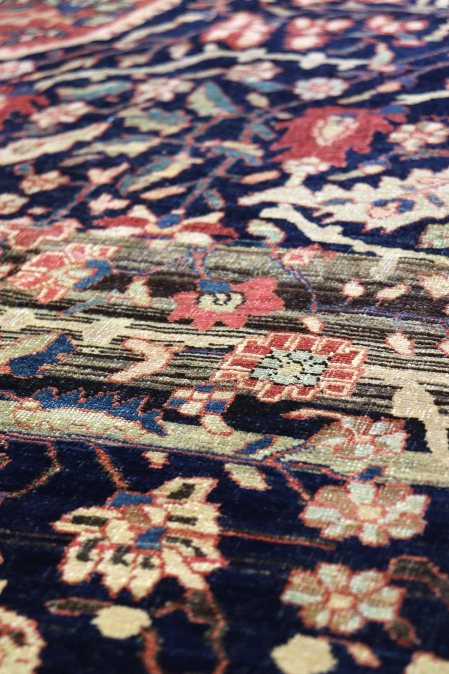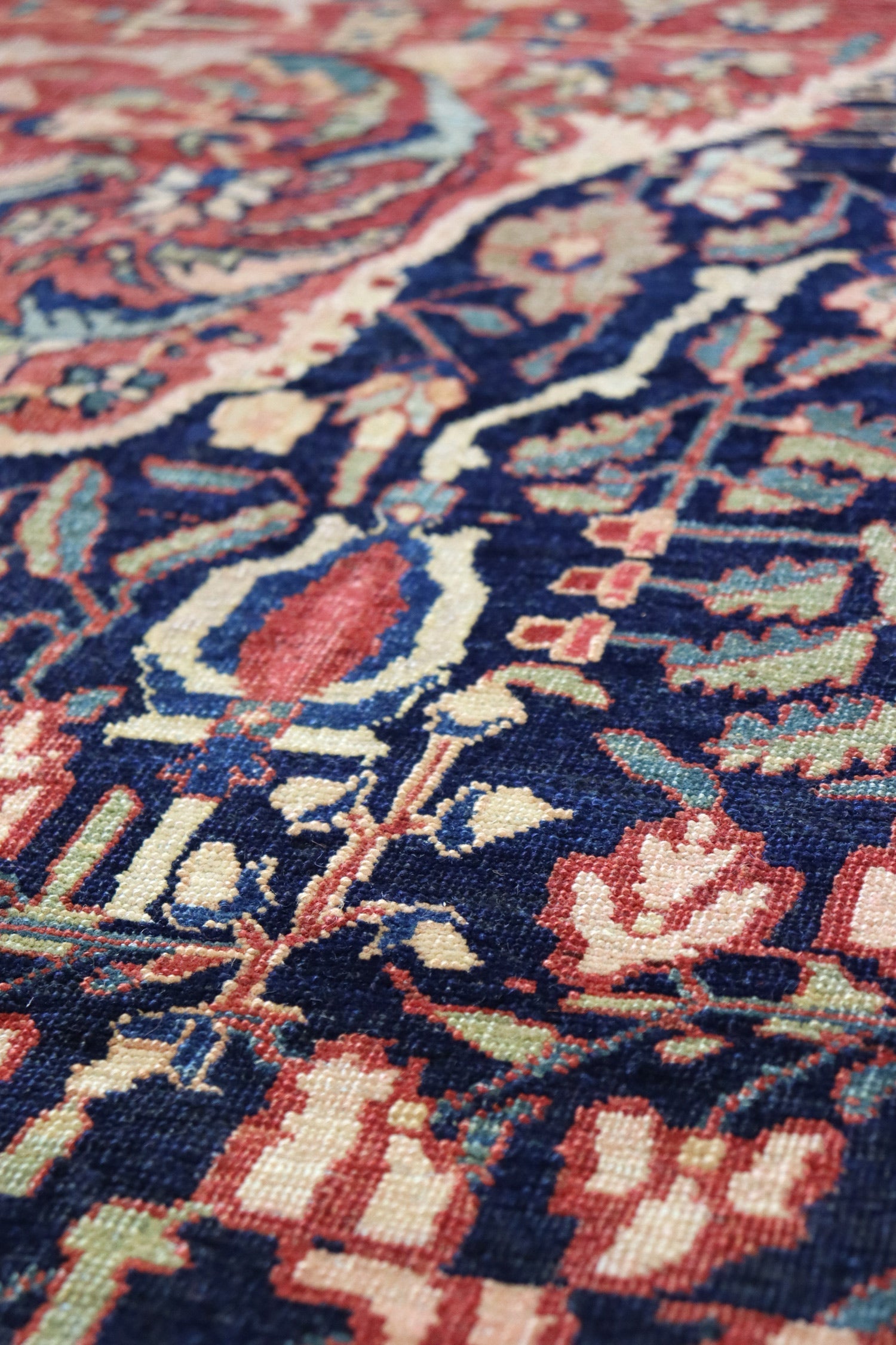 Elevate your room’s style with our Antique Ferahan Sarouk Handwoven Traditional Rug (JF8586). The traditional Formal Classic Persian style, with its Ferahan Sarouk motif, is definitely a stunner that you’ll be proud to show off in your home. Its distinctive blue, navy and rust palette will add charm, elegance, and that little bit of that ever-elusive je ne sais quoi. Plus, the wool pile on a cotton foundation used in this 13' 2" X 19' 10" rug accentuates its allure. But, this rug isn’t just worthy of gracing the pages of a design magazine. With its masterful Persian handwoven construction, this antique rug from around 1880 will be a prized possession for decades to come. Get your own show-stopping Antique Ferahan Sarouk Handwoven Traditional Rug today!