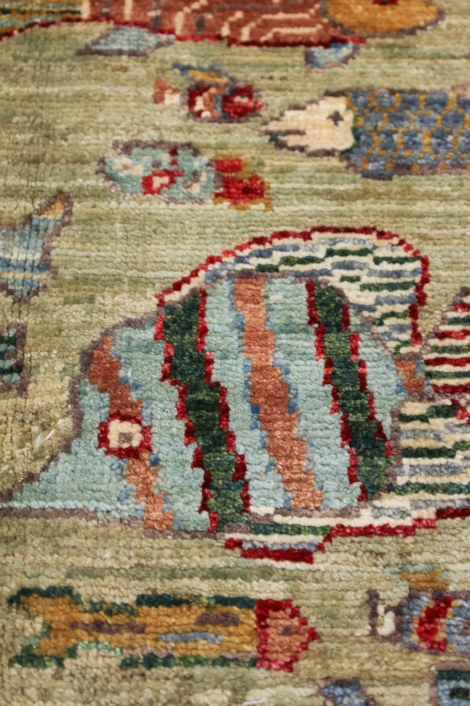 New Pictorial Contemporary Afghani Fish 2' 1" X 3' 0" Green Rug