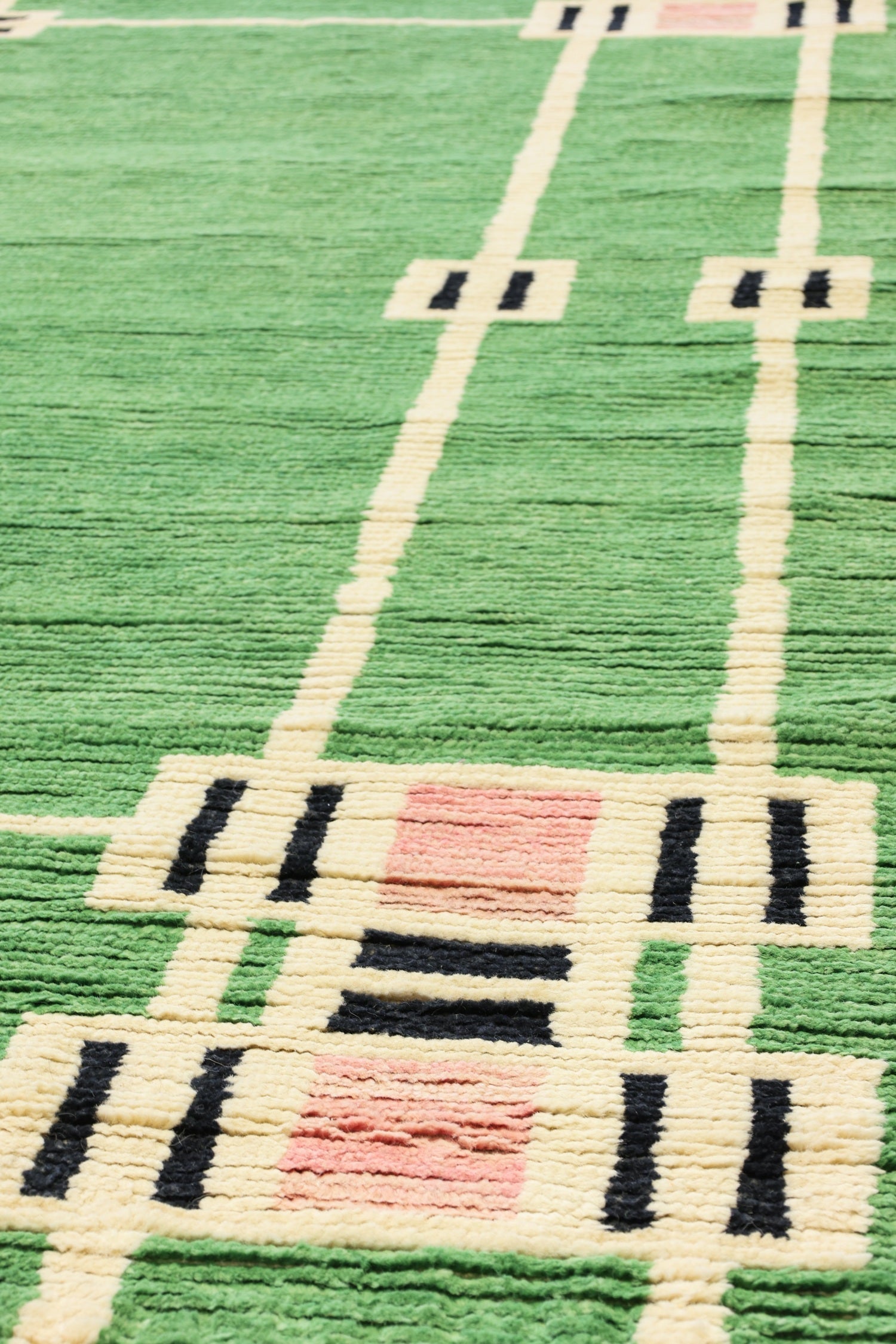 New Bold Geometry Contemporary Afghani Frank Lloyd Wright 8' 1" X 10' 4" Green Rug