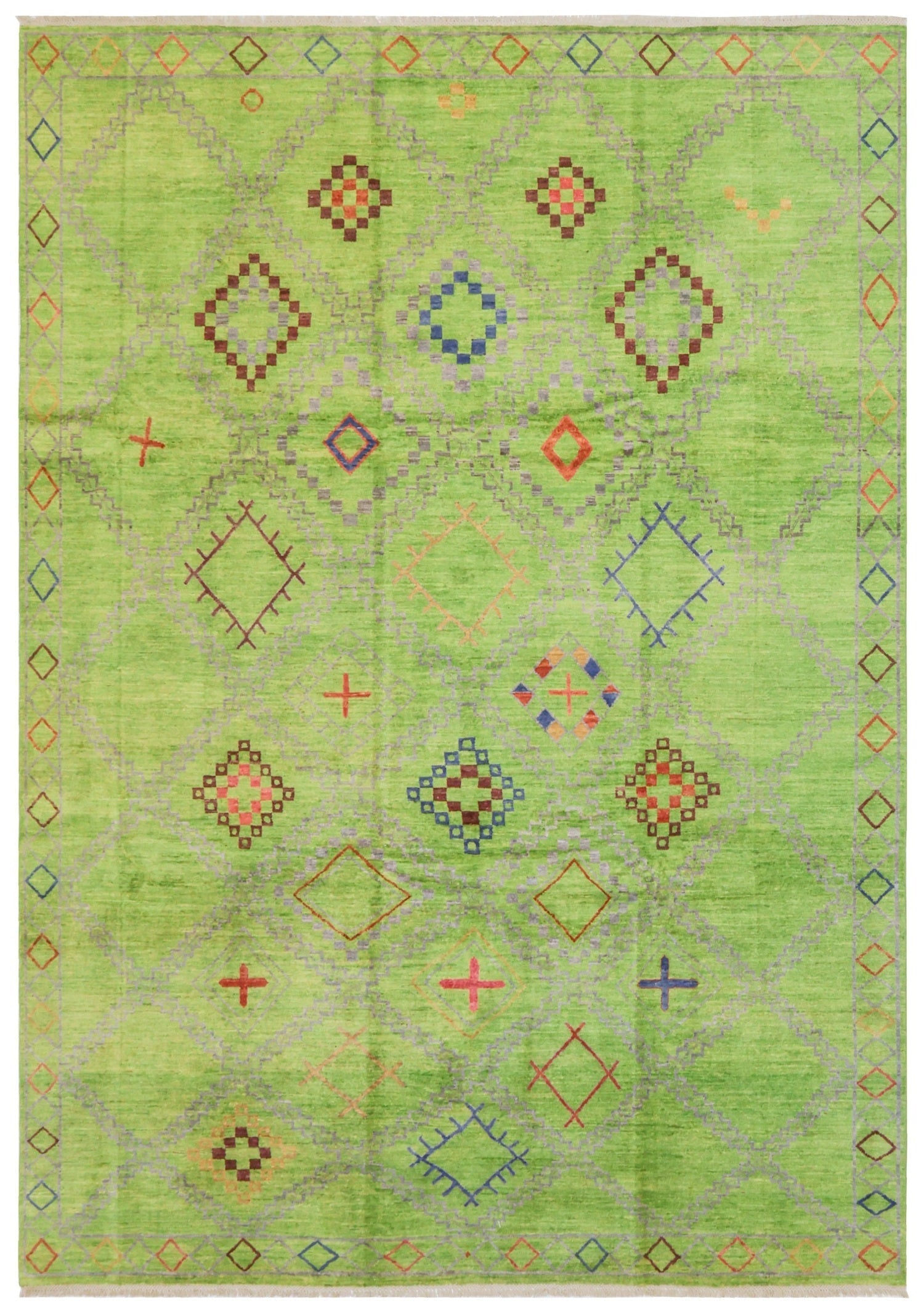 New Gabbeh Tribal Afghani Gabbeh 9' 0" X 12' 5" Green Rug
