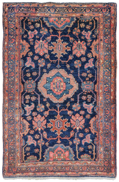 Vintage 1960 Formal Classic Persian Traditional Persian Hamadan 3' 5" X 5' 0" Blue Rug