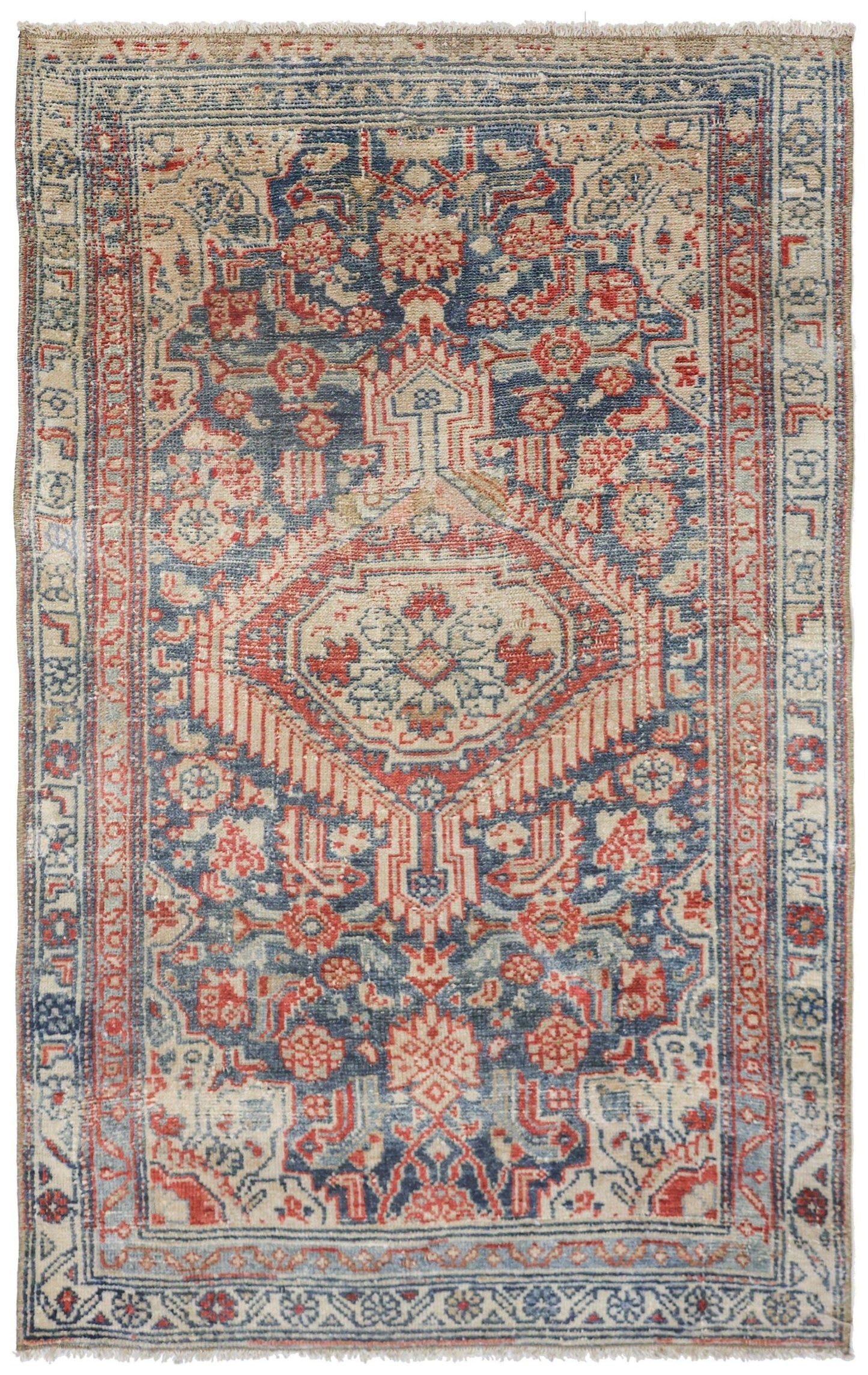 Vintage 1930 Overdyed & Distressed Transitional Persian Hamadan 2' 5" X 3' 10" Blue Rug