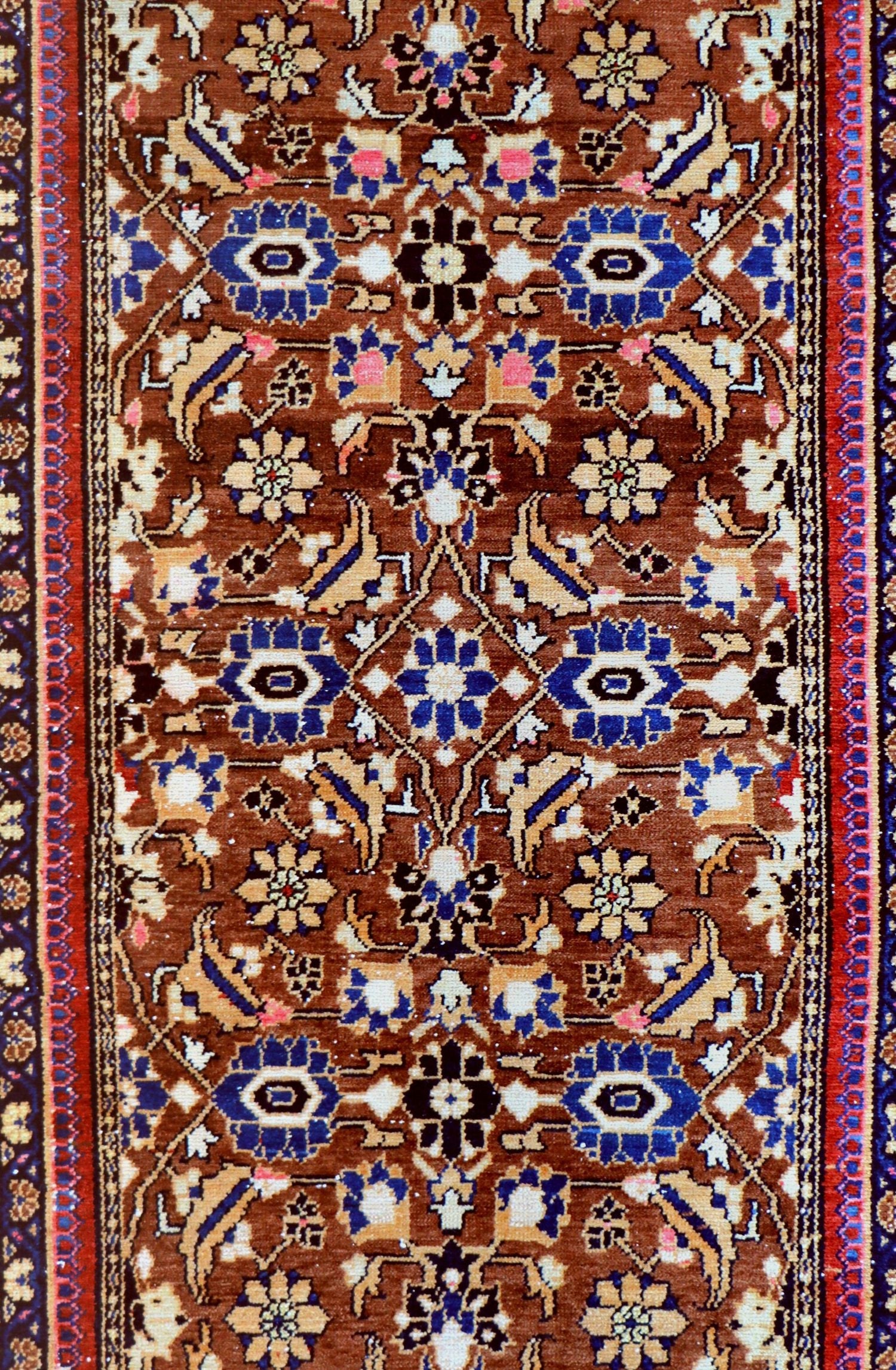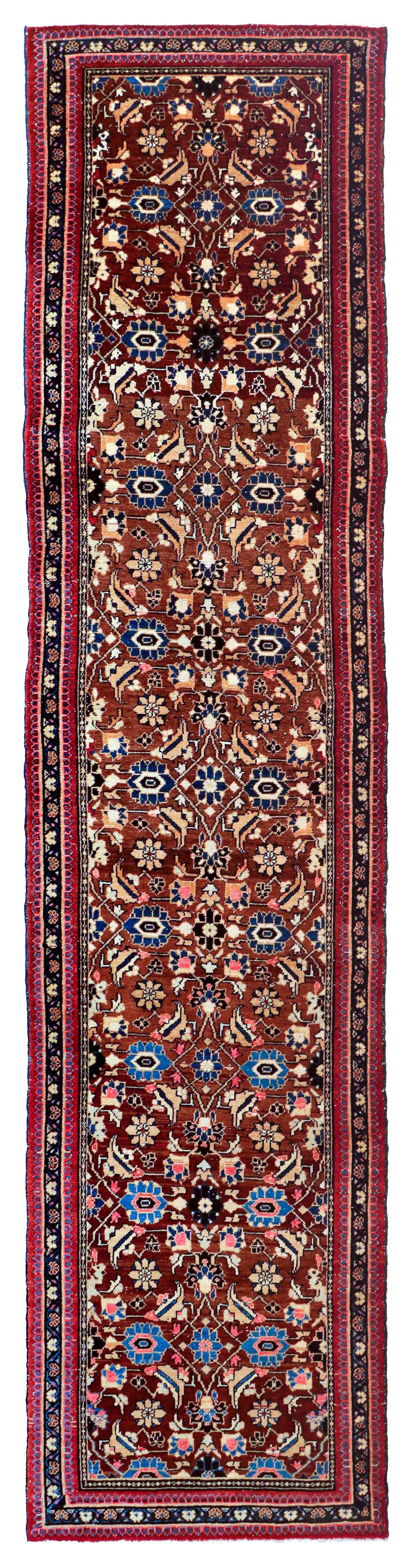 Vintage 1930 Nomadic Persian & Turkish Tribal Persian Hamadan 3' 2" X 12' 8" Brown Rug